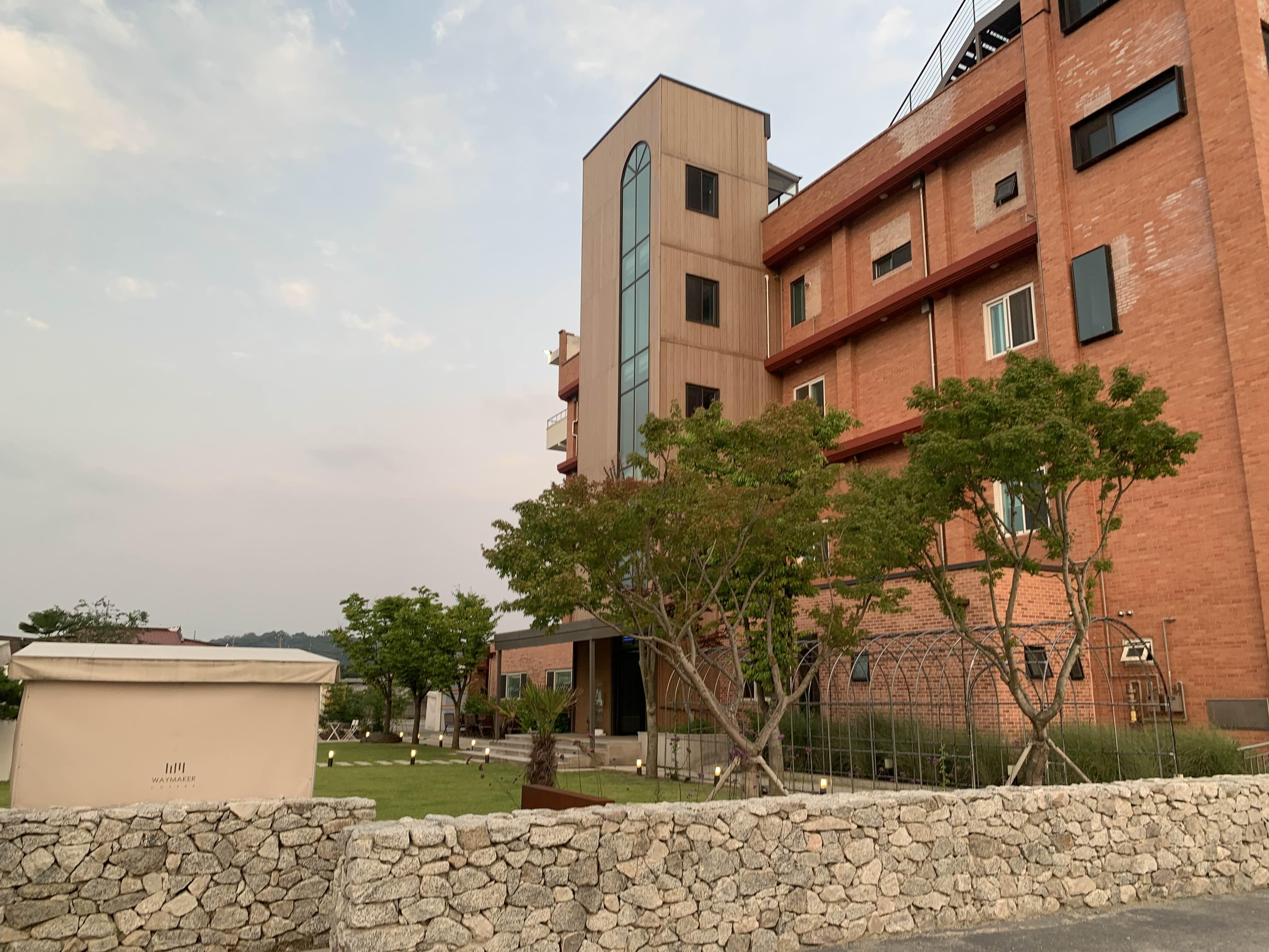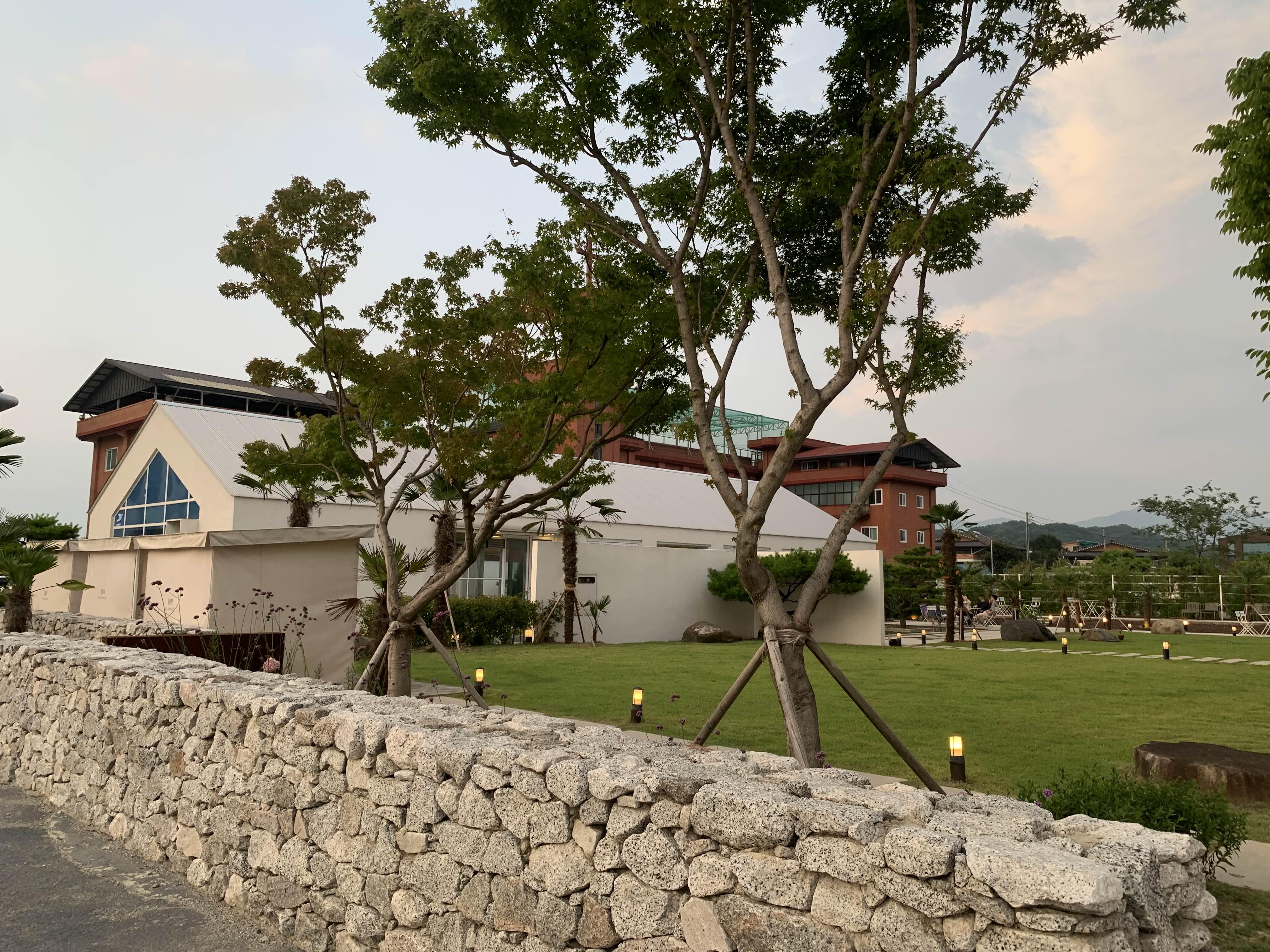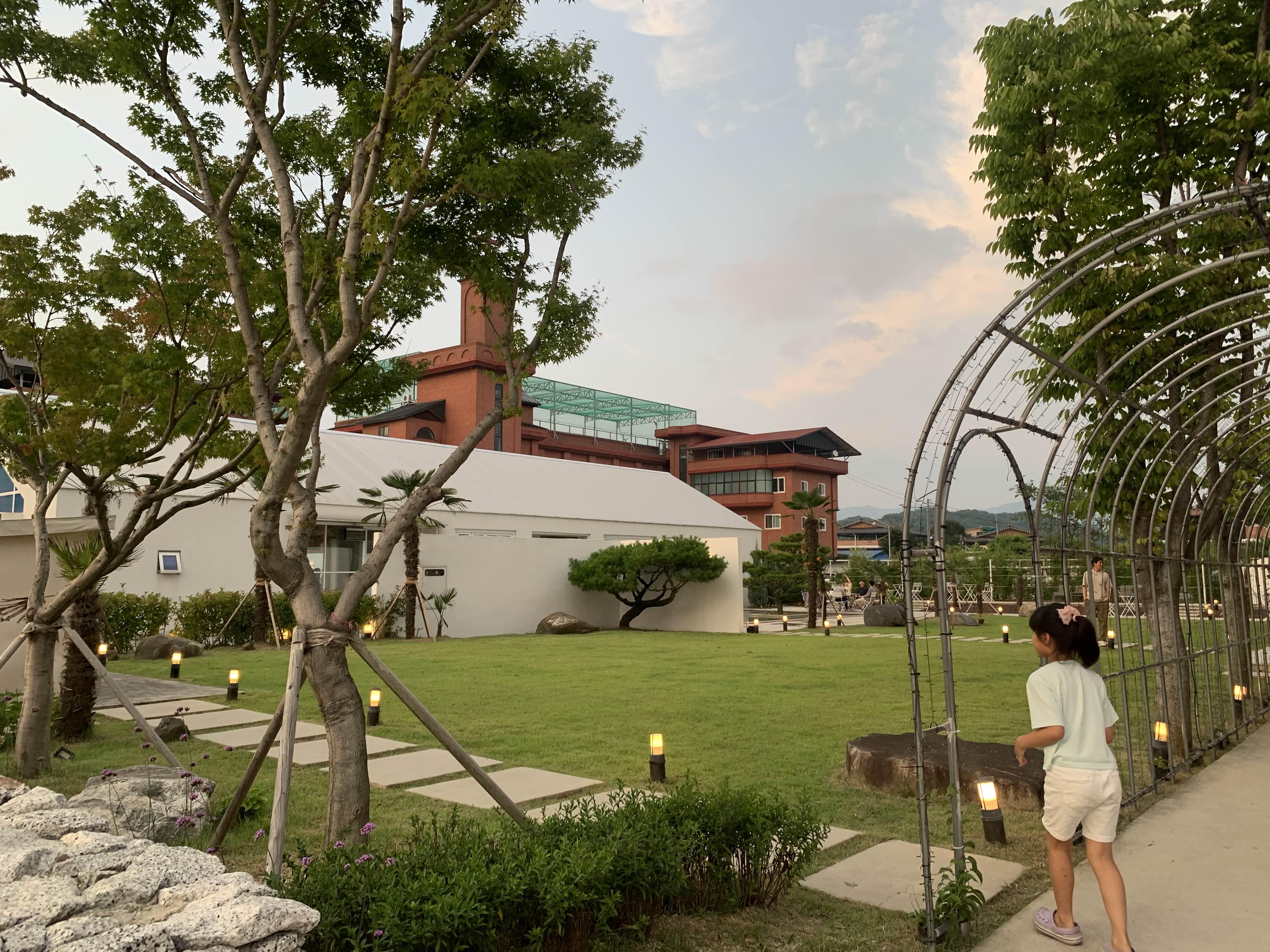 카페로 들어가는 공간에는 수공간, 그리고 넓은 잔디마당이 깔끔하게 조성되어 있더군요.