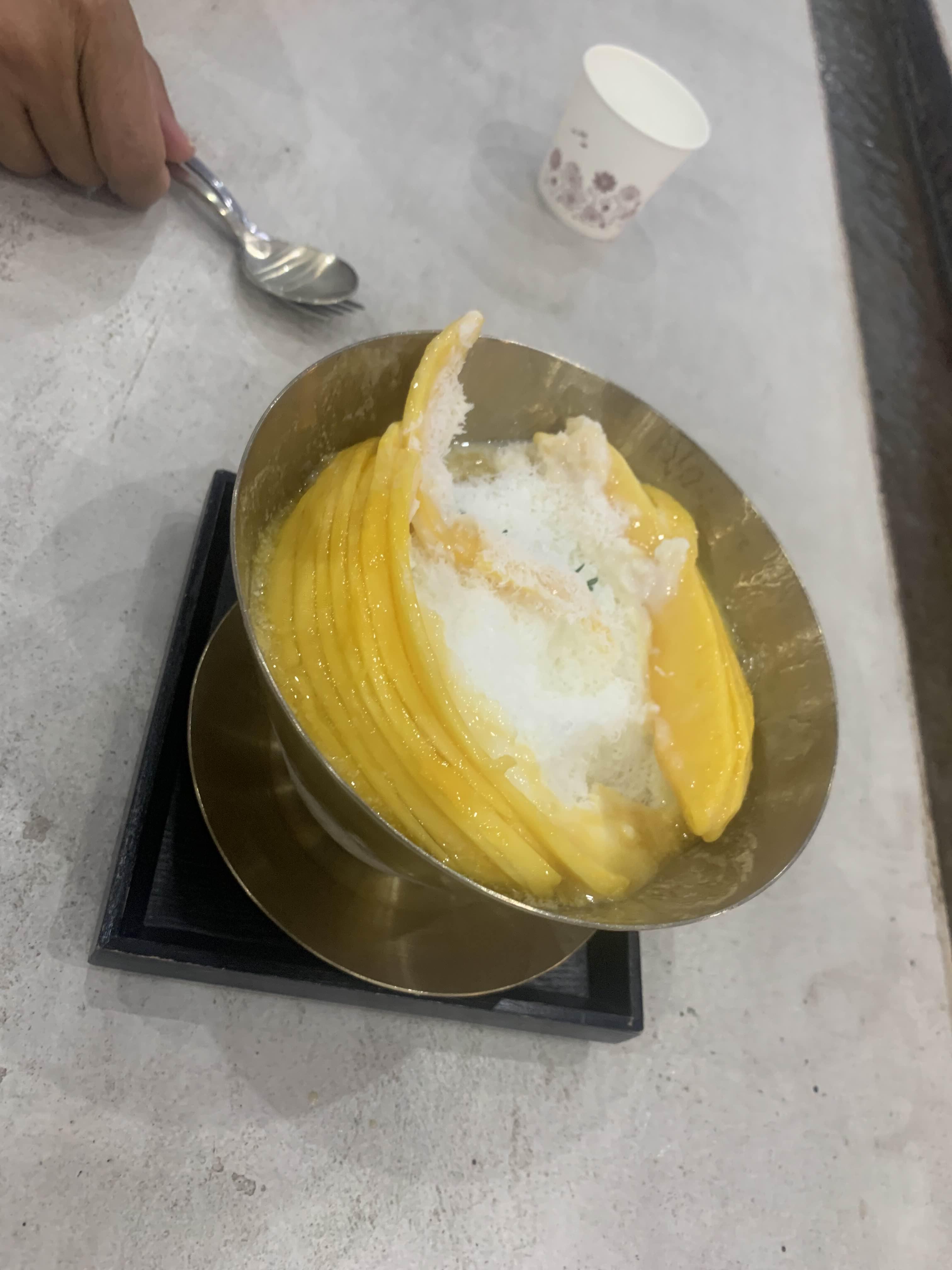 시원한 망고밍수 하나씩 주문해 보았습니다.