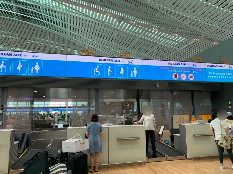 프랑스 직행편을 운행하는 대한항공 F36, 37 카운터에서 한 가족 전용 카운터를 운행하고 있으며 해당 카운터에서 비동반 소아 서비스 업무를 하고 있습니다. 비동반 소아 서비스는 사전에 신청하였고(약 2주 전?) 프랑스에 있는 지인에게 전화연결 후 확인되면 서비스가 확정됩니다. 인천공항 여객터미널 2 F36 카운터에 아이와 함께 도착하니... 비동반 소아 서비스 신청하여냐고 물어보고, 아이 이름을 물어보더군요. 이름을 말하니, 준비하셨던 서류를 주시고 한국 주소/연락처와 프랑스 주소/연락처를 작성합니다. 그리고, 여권과 항공 예약권을 제출하고 아이 짐을 먼저 붙여줍니다. 그리고, 비동반 소아 서비스 이용요금 10만원을 납부하고 해당 카운터에 도착하면 항공권과 "비동반 소아 서비스" 목걸이?를 아이 목에 걸어주시네요. 비행 출발 50분이(비행기 이륙 50분 전, 탑승시간 20분 전) F36 카운터에서 만나기로 약속하고 서비스 신청 끝!!! 마지막으로 비동반소바서비스 신청 대장에 내 이름과 연락처를 적는데... 우리 아이보다 먼저 신청한 아이가 한 명 더 있었네요^^