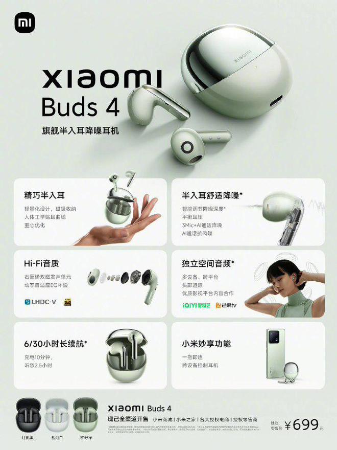 IT Home에 연결됨: Xiaomi Buds 4는 활성 소음 감소의 실시간 조정을 지원하고 LHDC 5.0 전송 프로토콜을 출시하며 Hi-Res Audio Wireless 인증을 받았으며 가격은 699위안입니다.