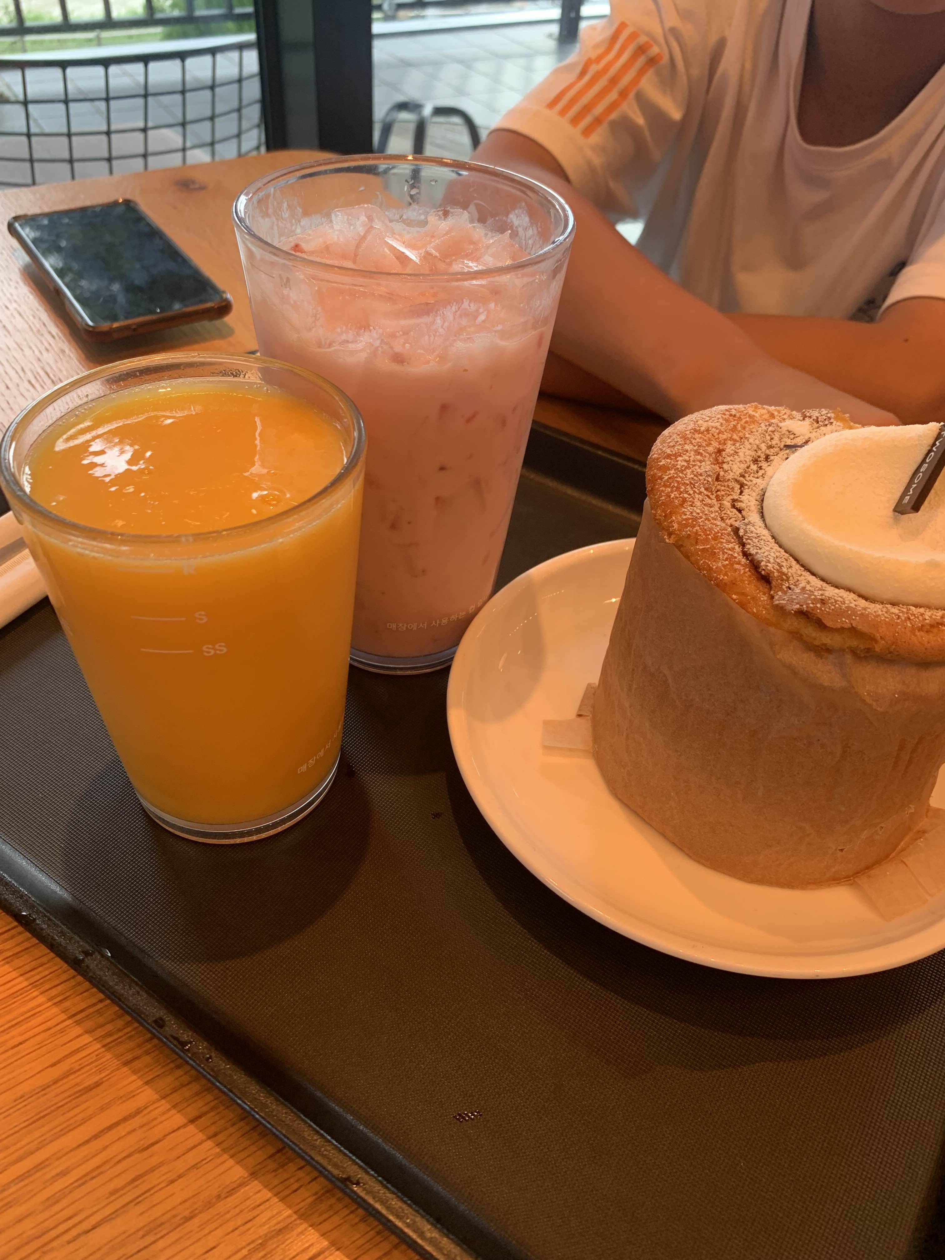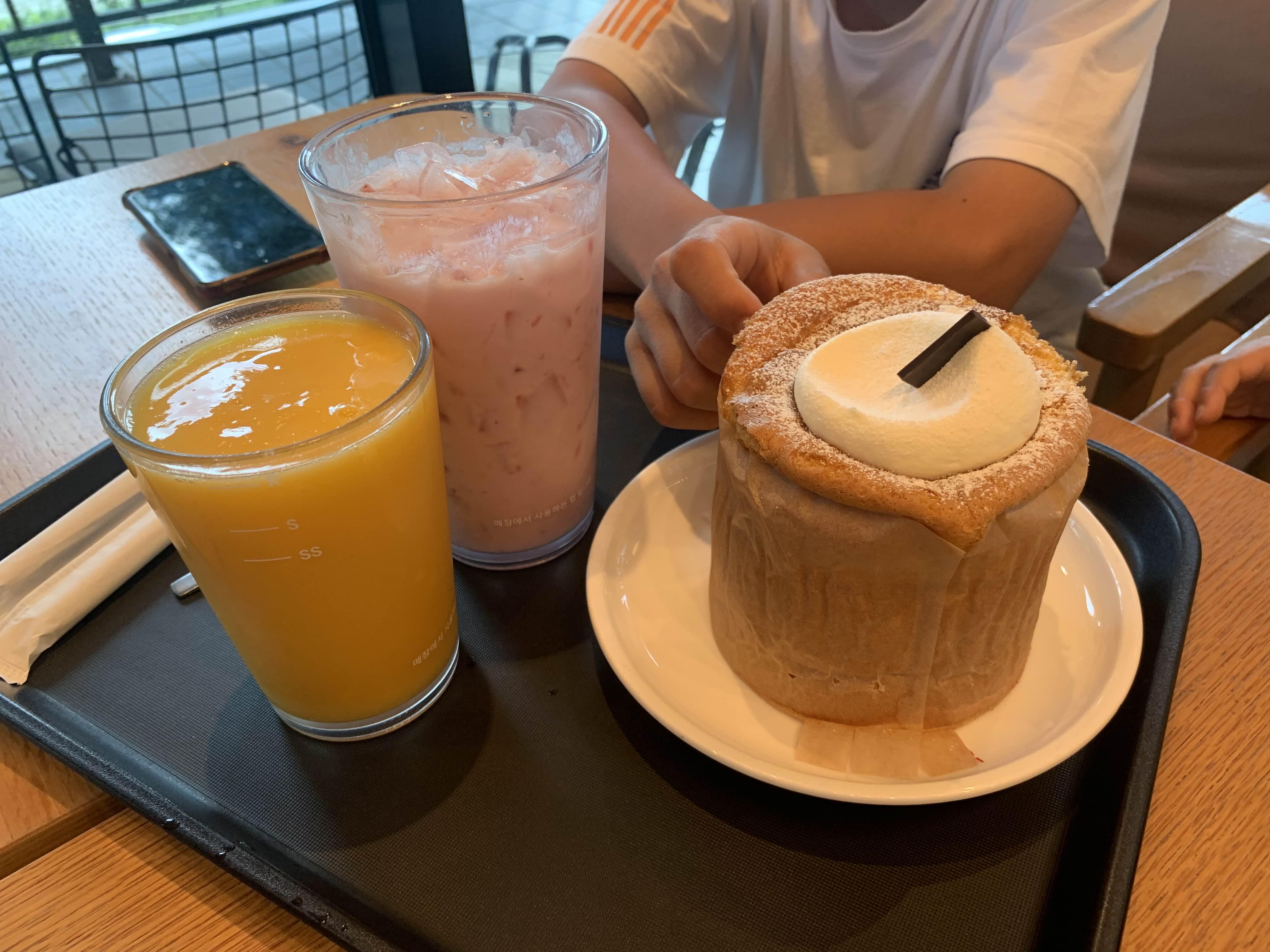 추가비용을 투입하여... 음료와 빵 하나 주문!