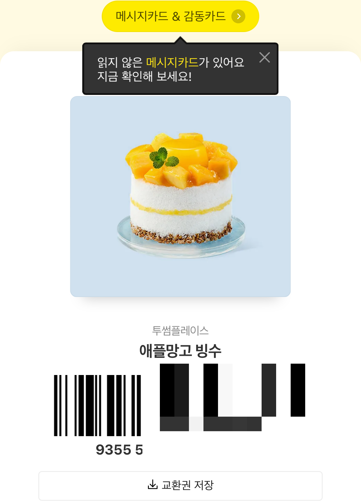 투썸의 망고빙수? 선물 받아....