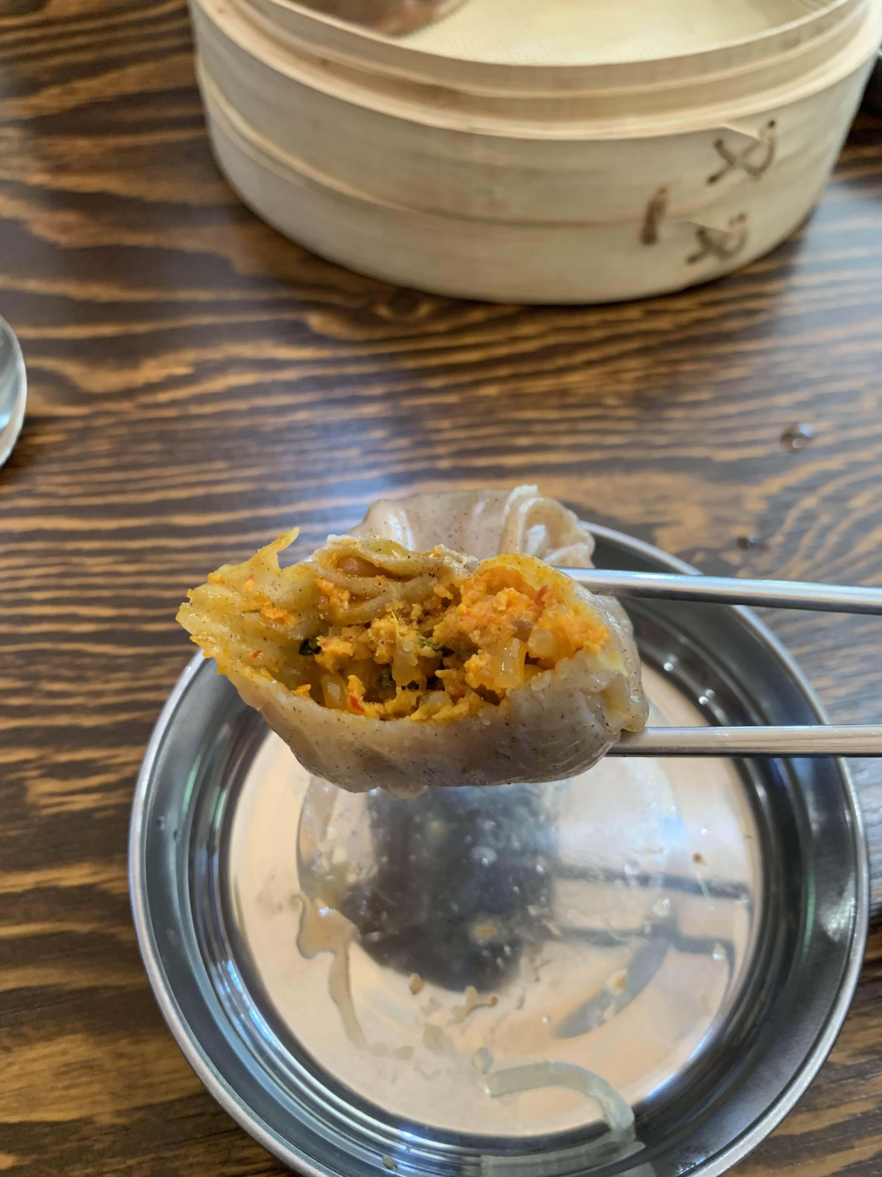 막국수와 면발과 명태식해의 식감이 잘 어울린다.