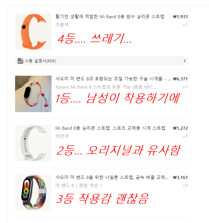 미밴드 8&9은 스크랩이 호환되어서... 최근에 마모된 미밴드 8 스트랩 교체용으로 몇 개 주문해 보았다.