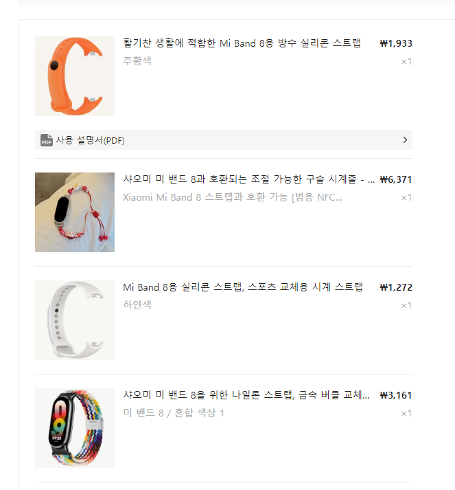 미밴드 8&9은 스크랩이 호환되어서... 최근에 마모된 미밴드 8 스트랩 교체용으로 몇 개 주문해 보았다.