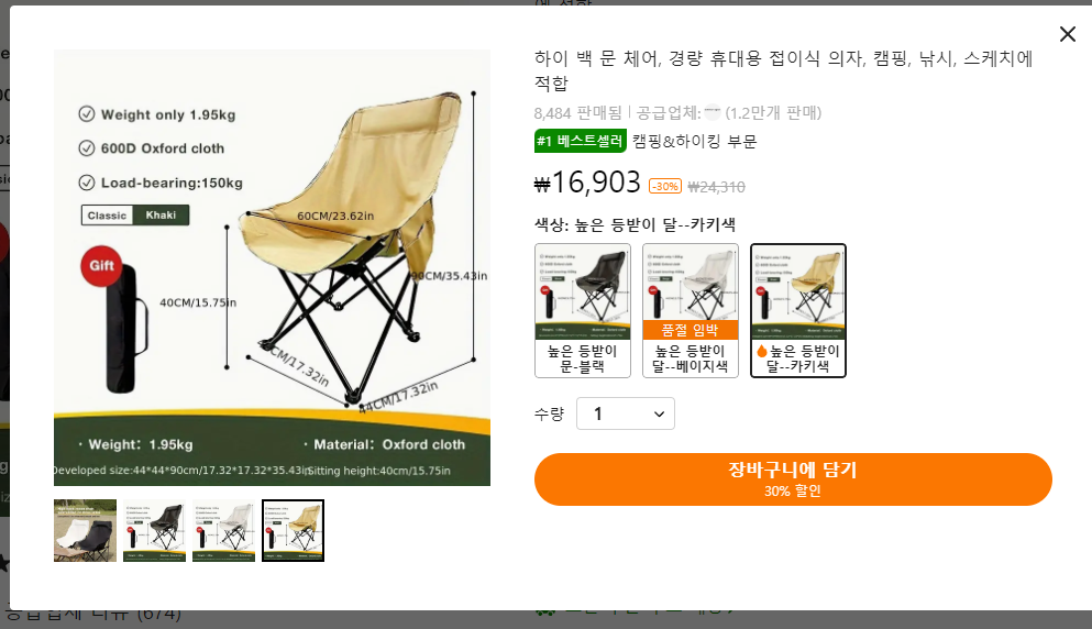 집에서 사용한 캠핑의자 하나구입해 보았다.