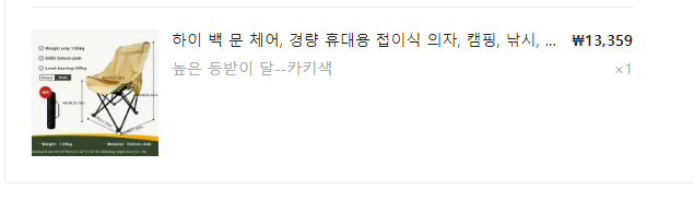 아참... 그리고, 기존에 구입했던 캠핑의자가 어깨를 조금 조이는 느낌이 있었는데...