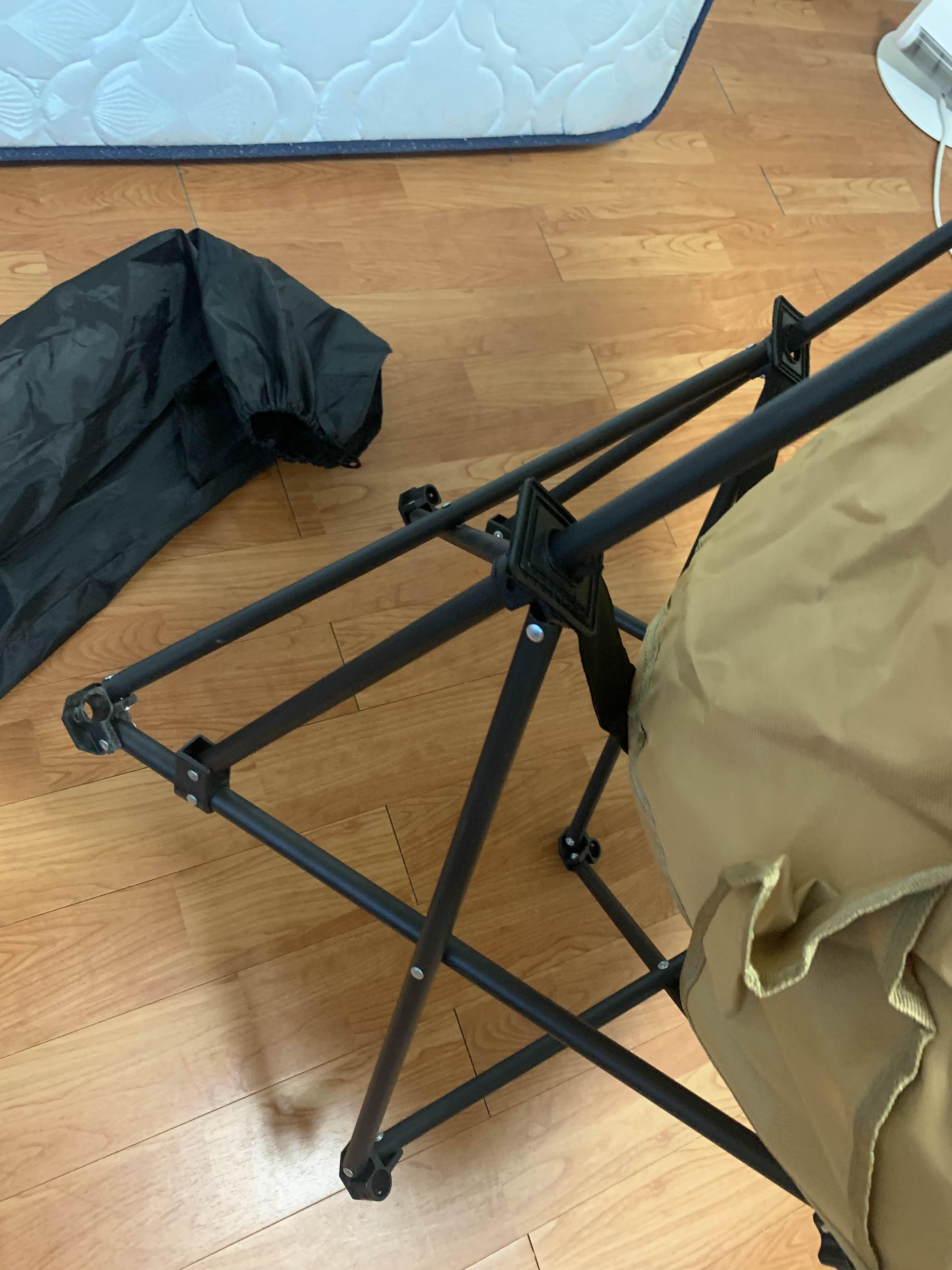 이 캠핑의자는 어깨 부분을 조여주는 게 없다.