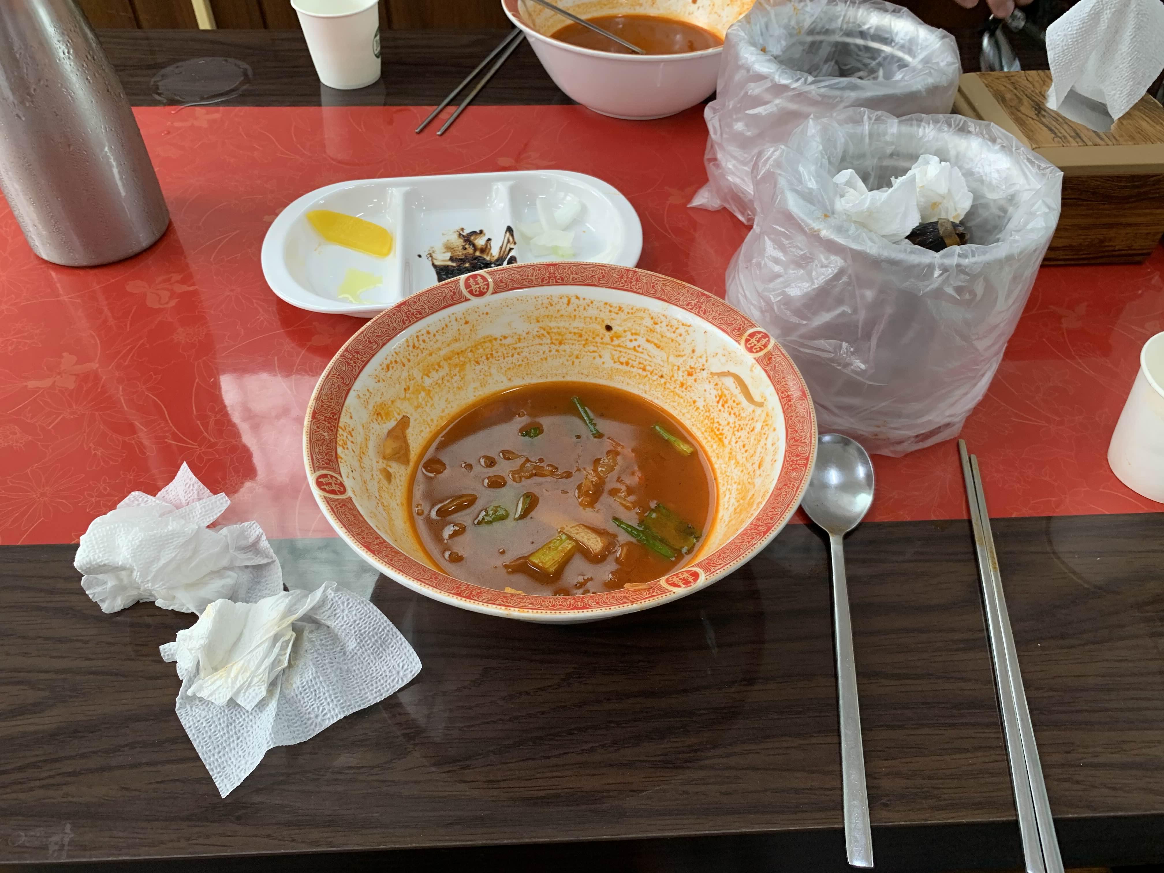 일단 국물은 뜨겁지는 않았는데.... 불향이 많이 나는 국물!
