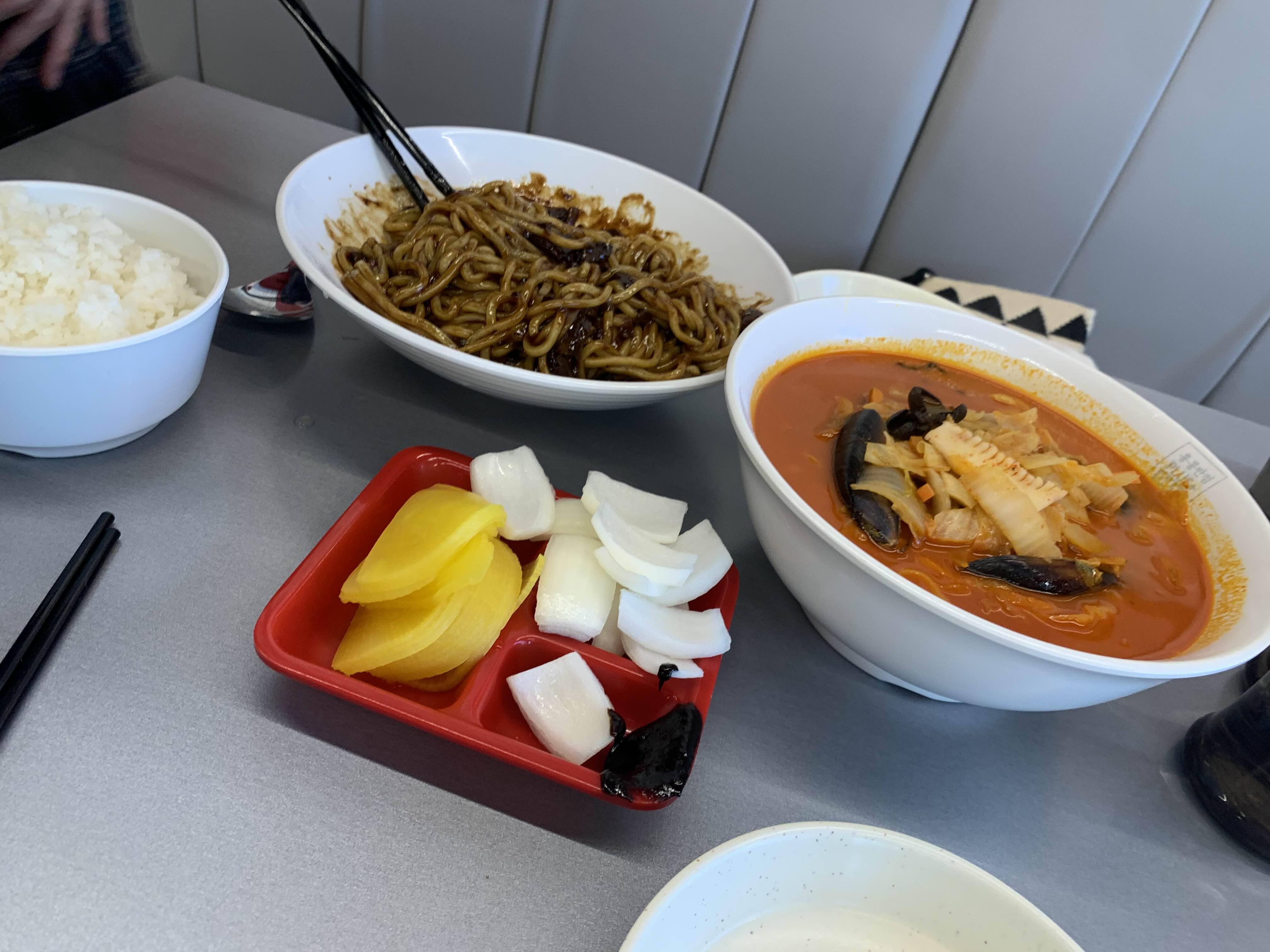 키오스크로 짜장 짬뽕 그리고 공깃밥 하나씩 주문했습니다.