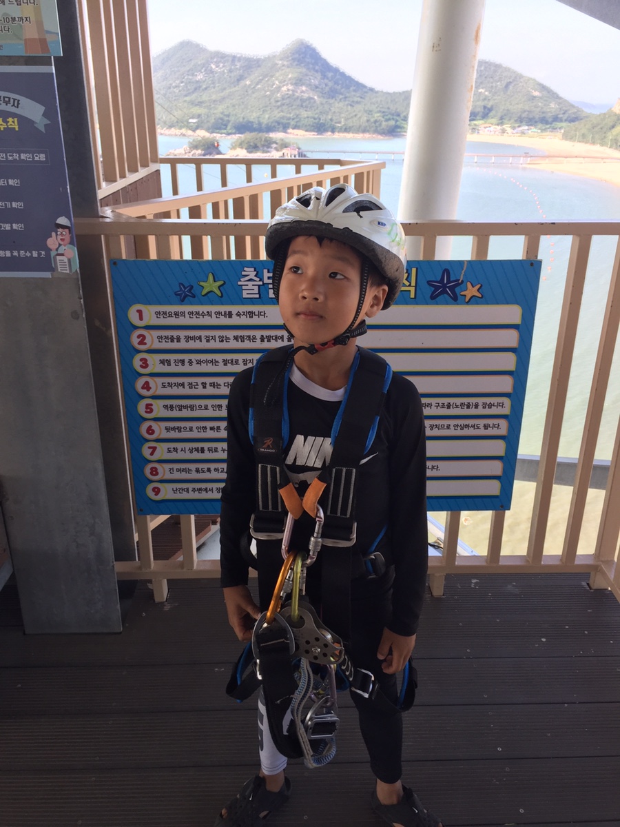 아이와 선유도해수욕장 여행 중 짚라인(선유 스카이 SUN 라인)을 타고 싶다 해서 체험하게 되었네요. 이용요금이 꽤? 비싸서 좀 말성였지만, 절대 무서워서 망설이지 않았음;;; 아이와 함께 이용하는데 36,000원, 짚라인 체험 사진 6,000원 한번 1분 정도 이용하는데 42,000원 아이와 추억을 만들고? 싶어서 짚라인 체험장으로 이동했습니다.