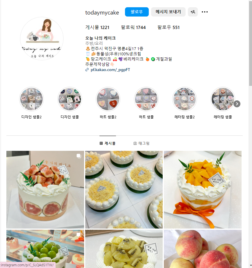 주문은 먼저 인스타그램을 통해서... 마음에 드는 이미지를 골라서, 별도 이미지를 요청해도 가능하다고 하는데.... 인스타에 이쁜 케이크들이 많아서;;; 그걸로 선택!!