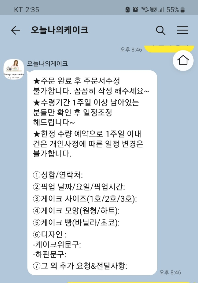 케이크를 고르고서... 카톡으로 주문!