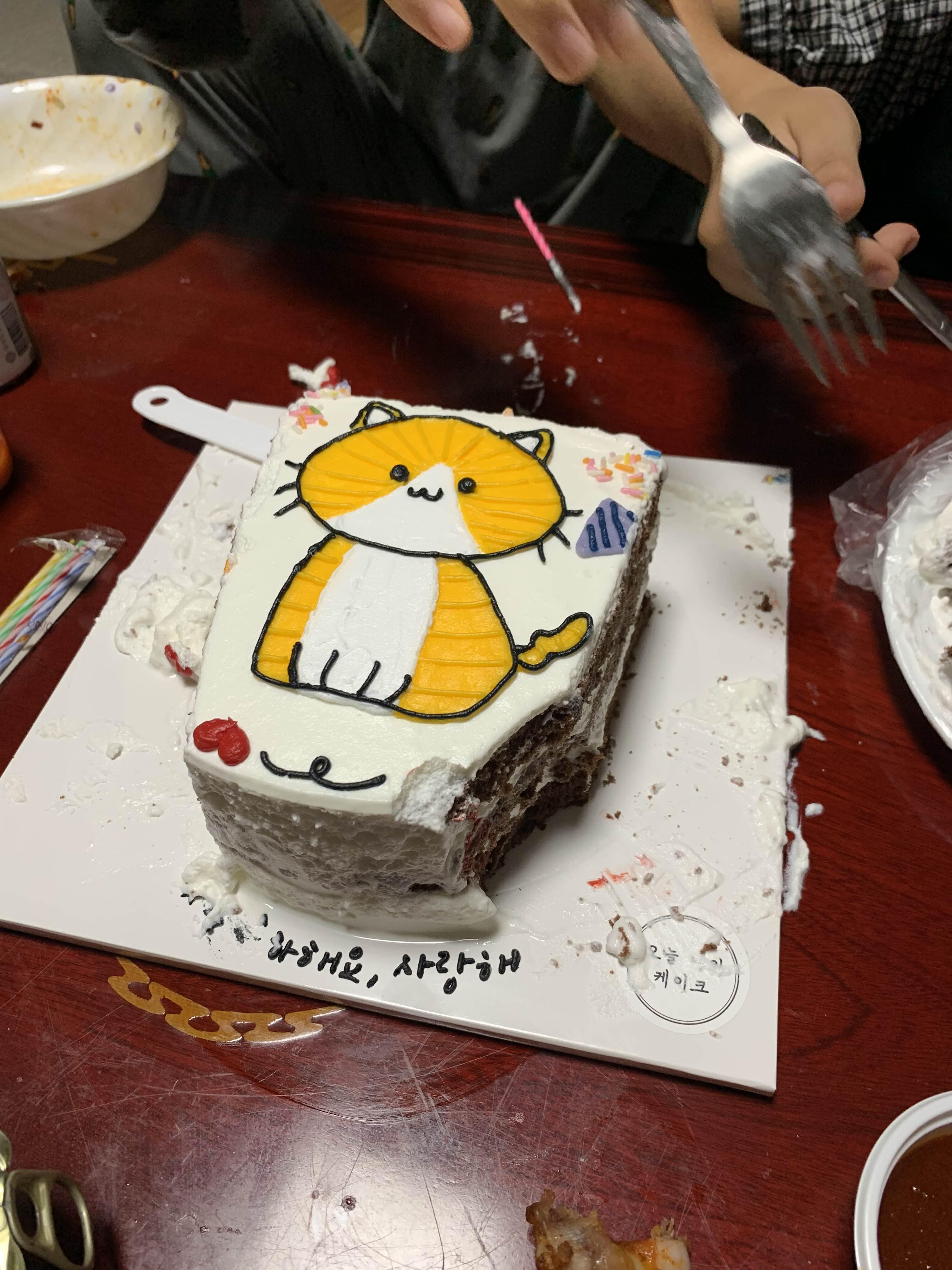 케이크케이크 개봉하는데.... 혹시라도 케이크에 손상이라도 갈까 봐... 조심조심 오픈한다.
