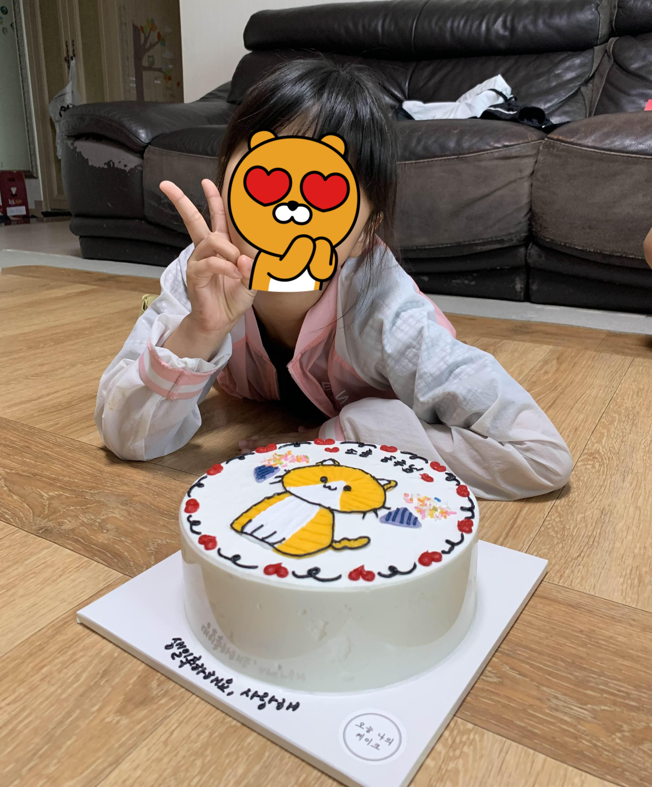 케이크를 보자마자 너무 좋아한다.
