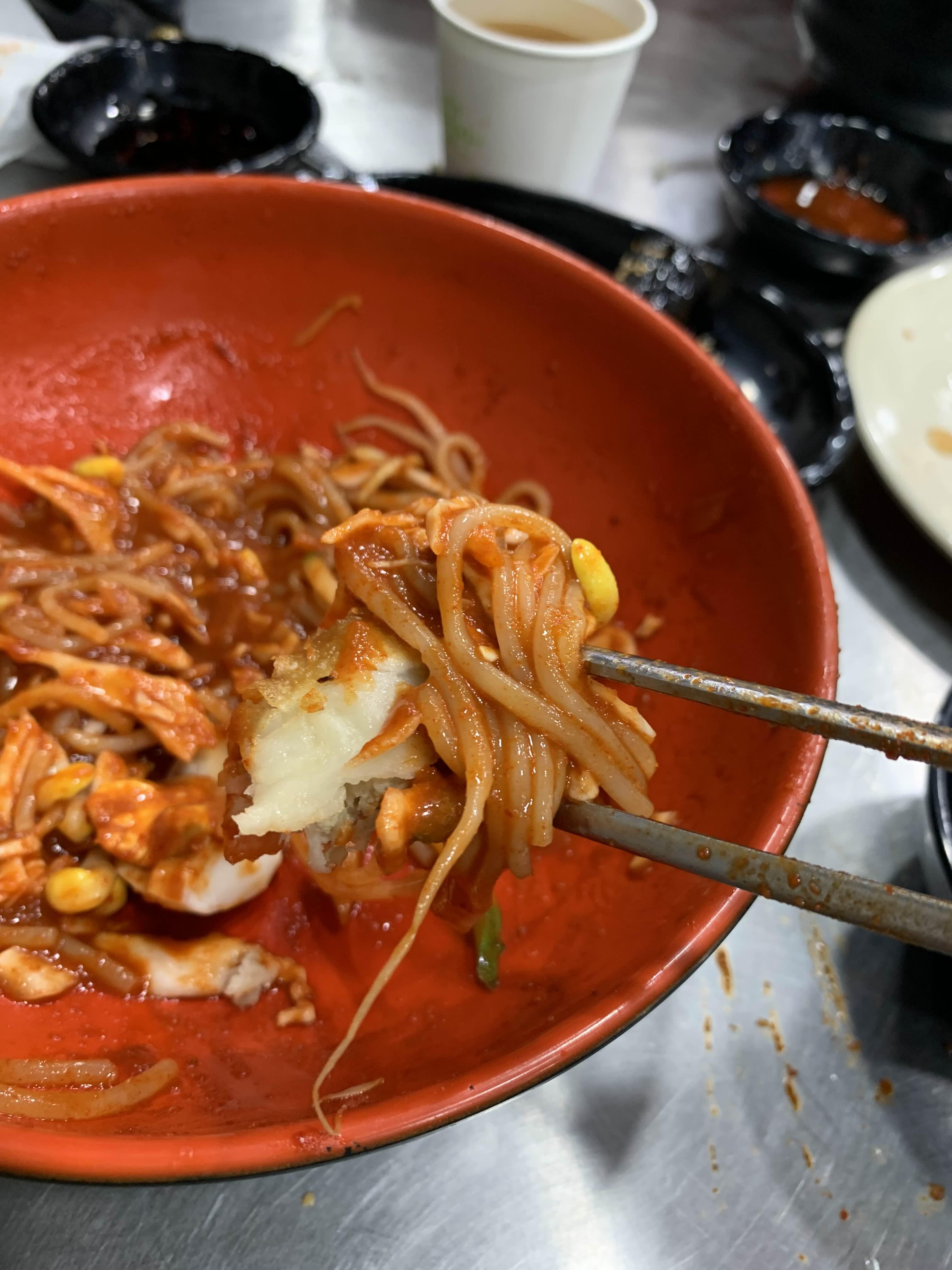 쫄면은 상큼함이 약간 부족한 쫄면!! 양념장이 상당히 많이 들어가 있다.