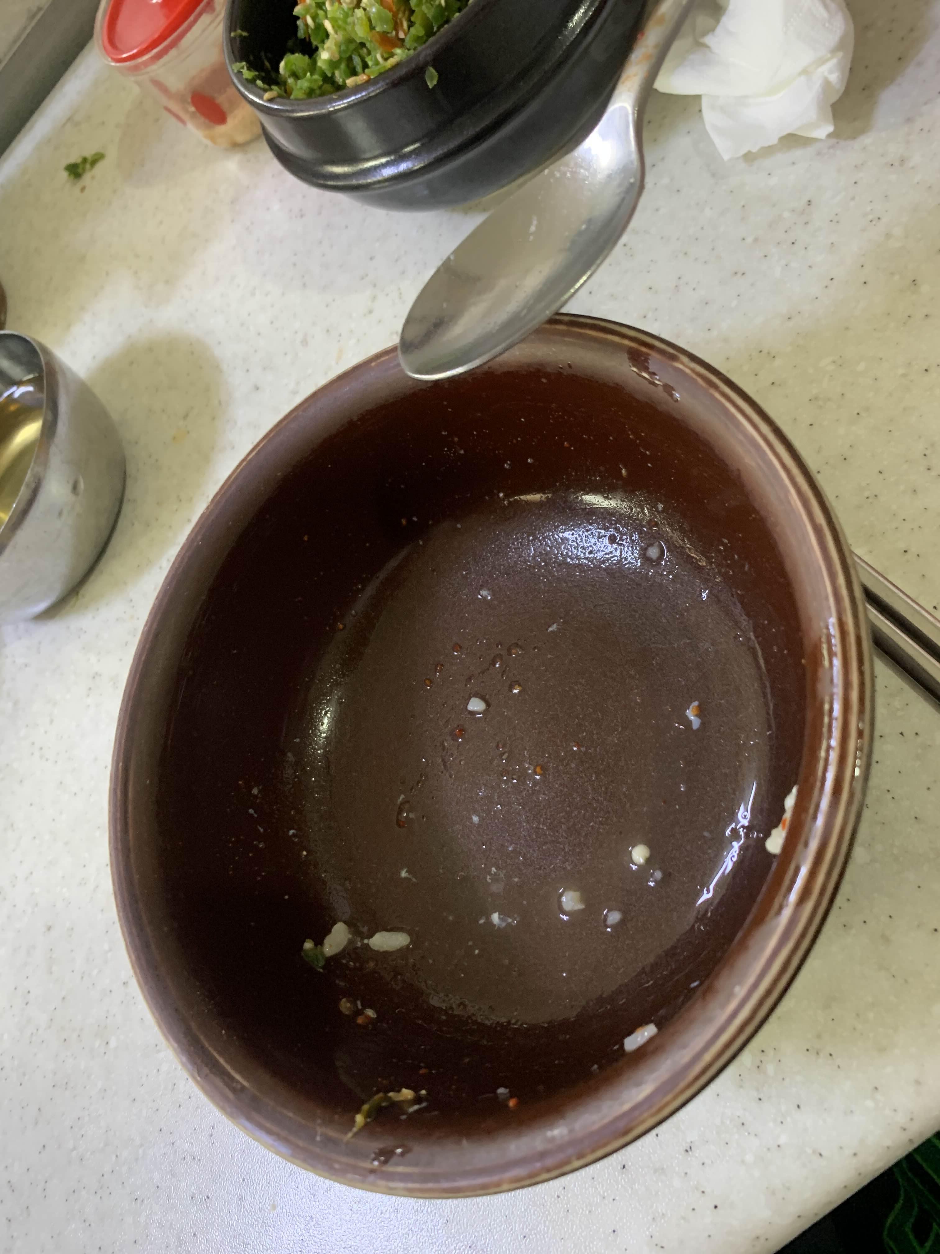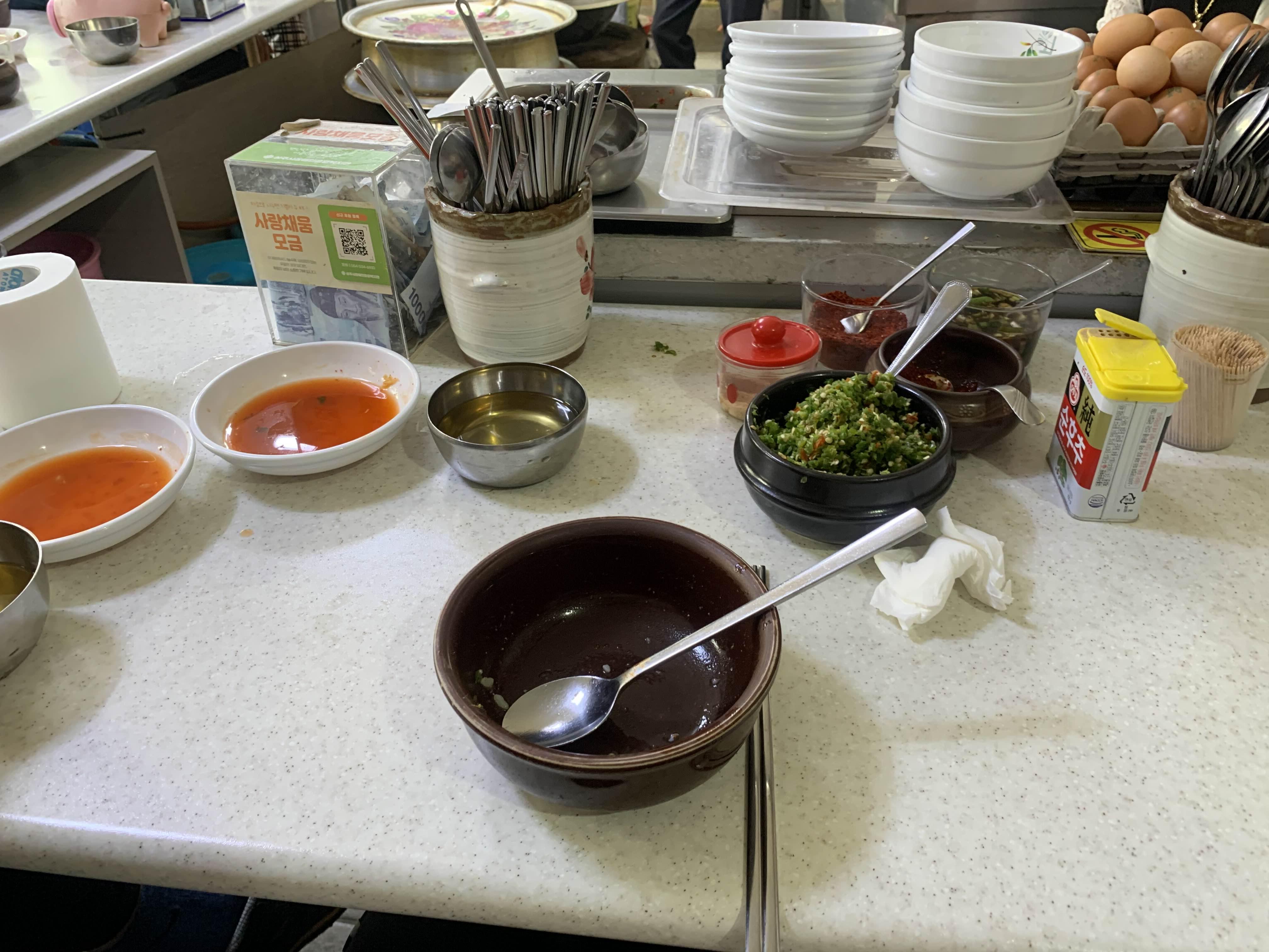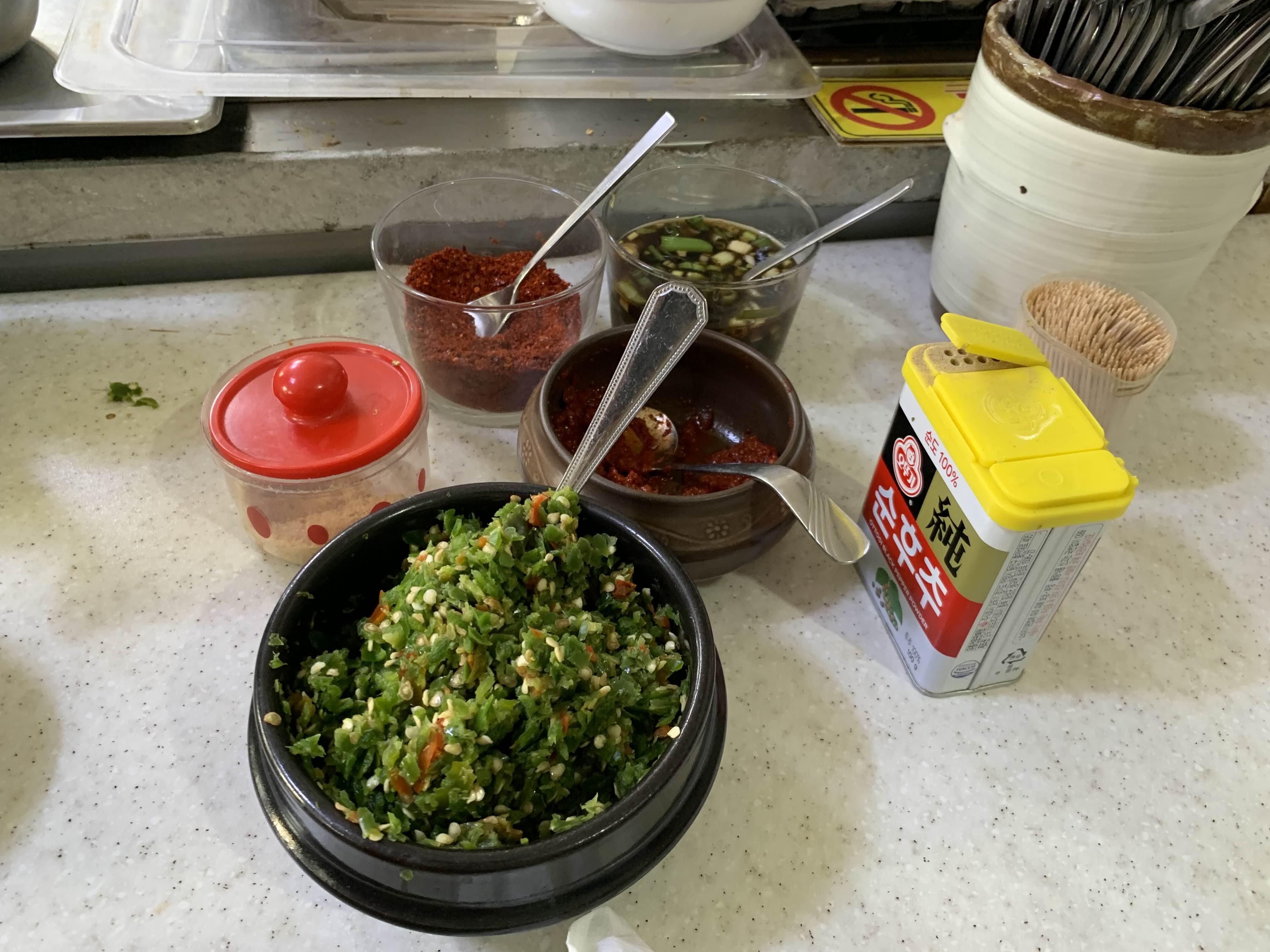 기본으로는 고춧가루 베이스로 넣어서 먹고, 마지막은 가장 소스를 넣어서 먹으면 깔끔하다.