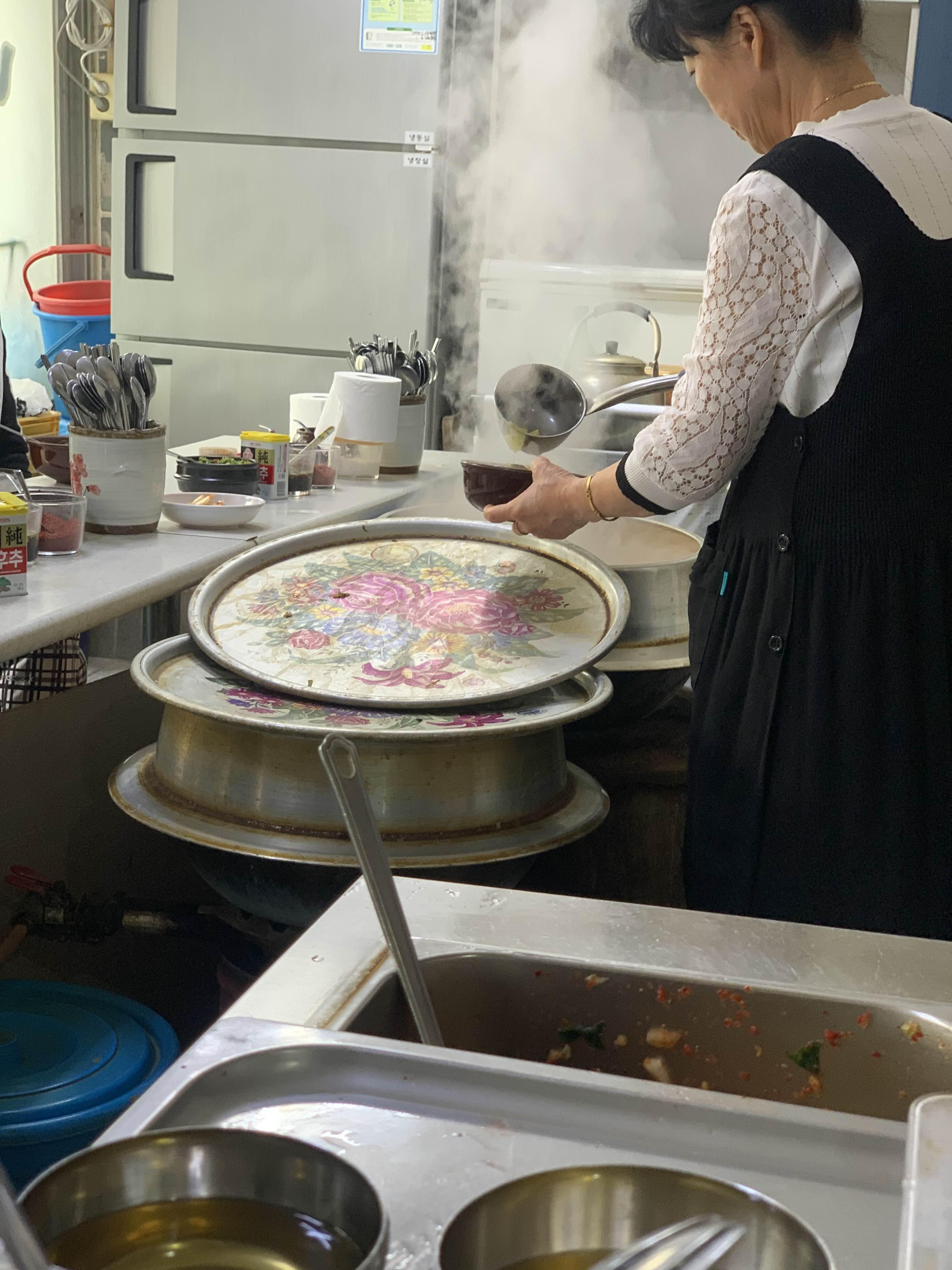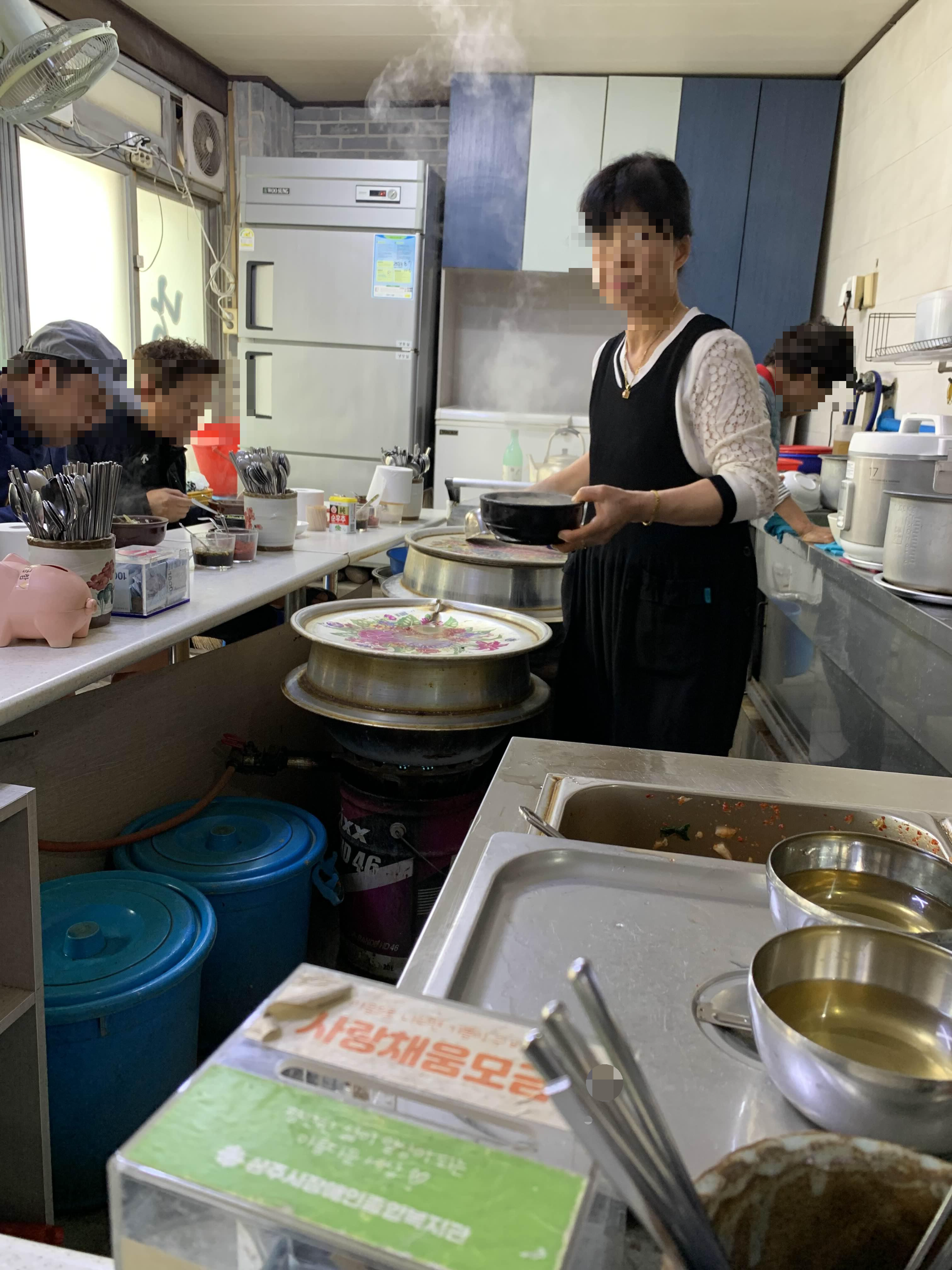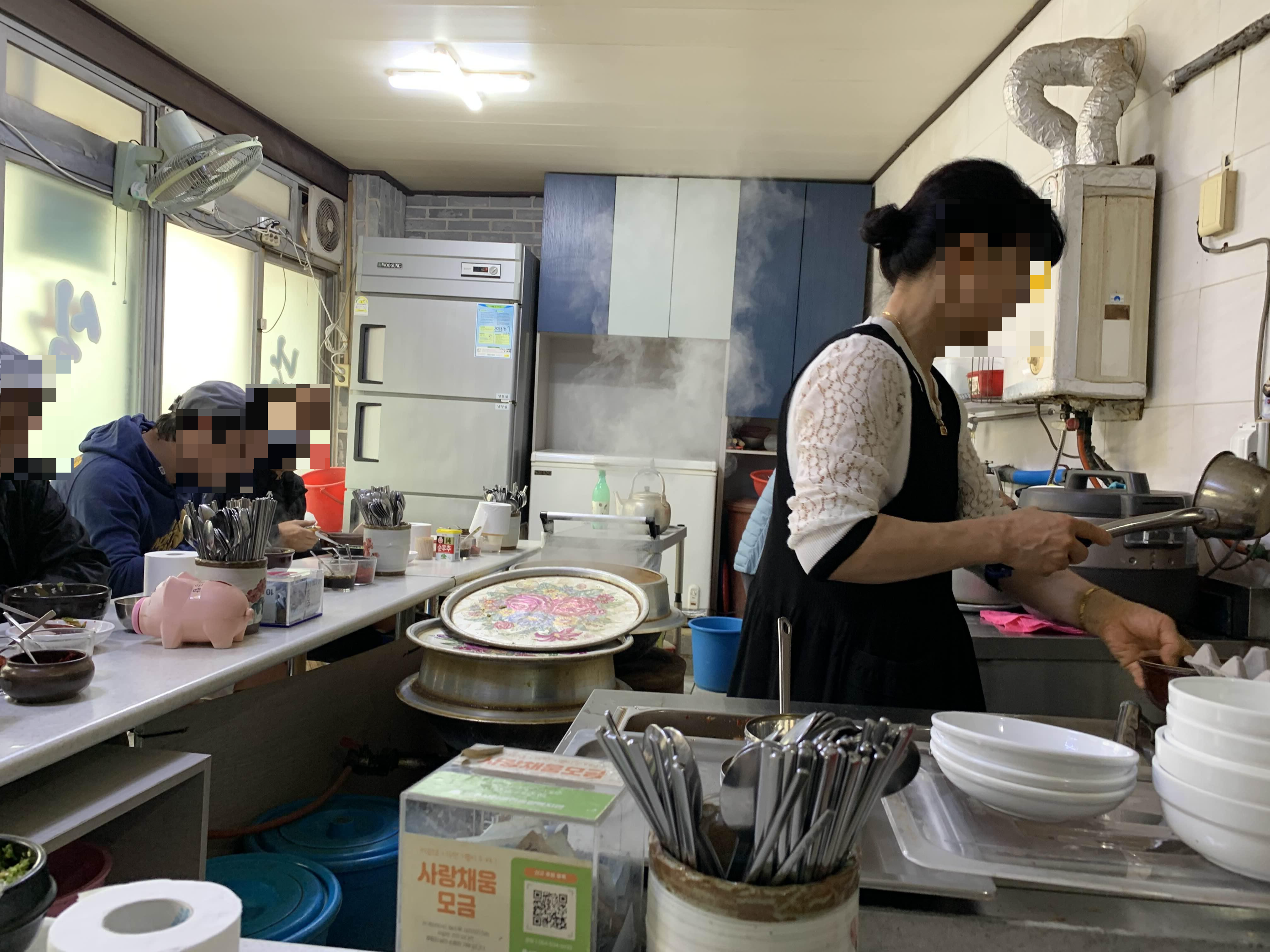 저 2개의 솥에서 해장국을 계속 끊이면서... 판매가 된다.