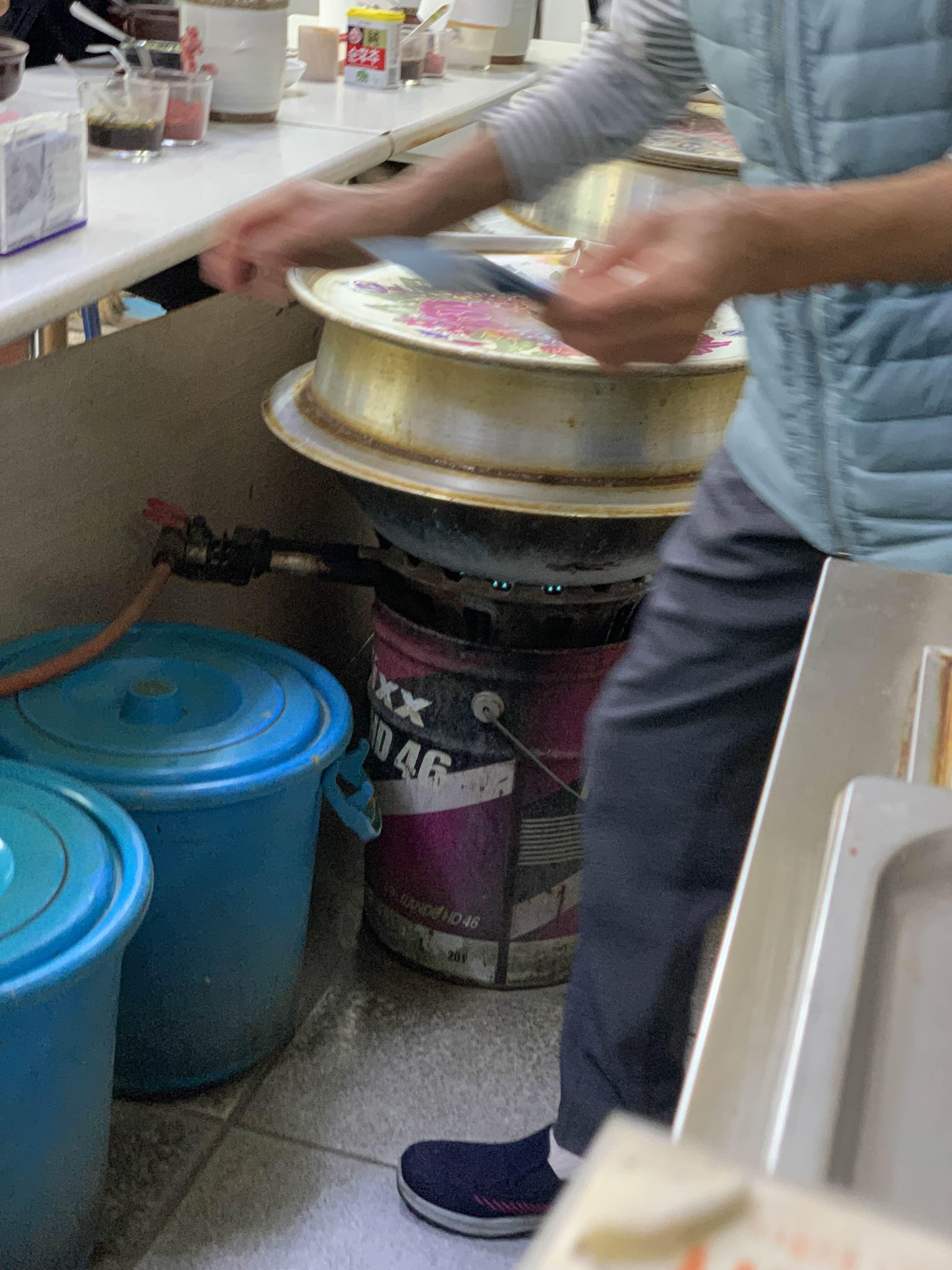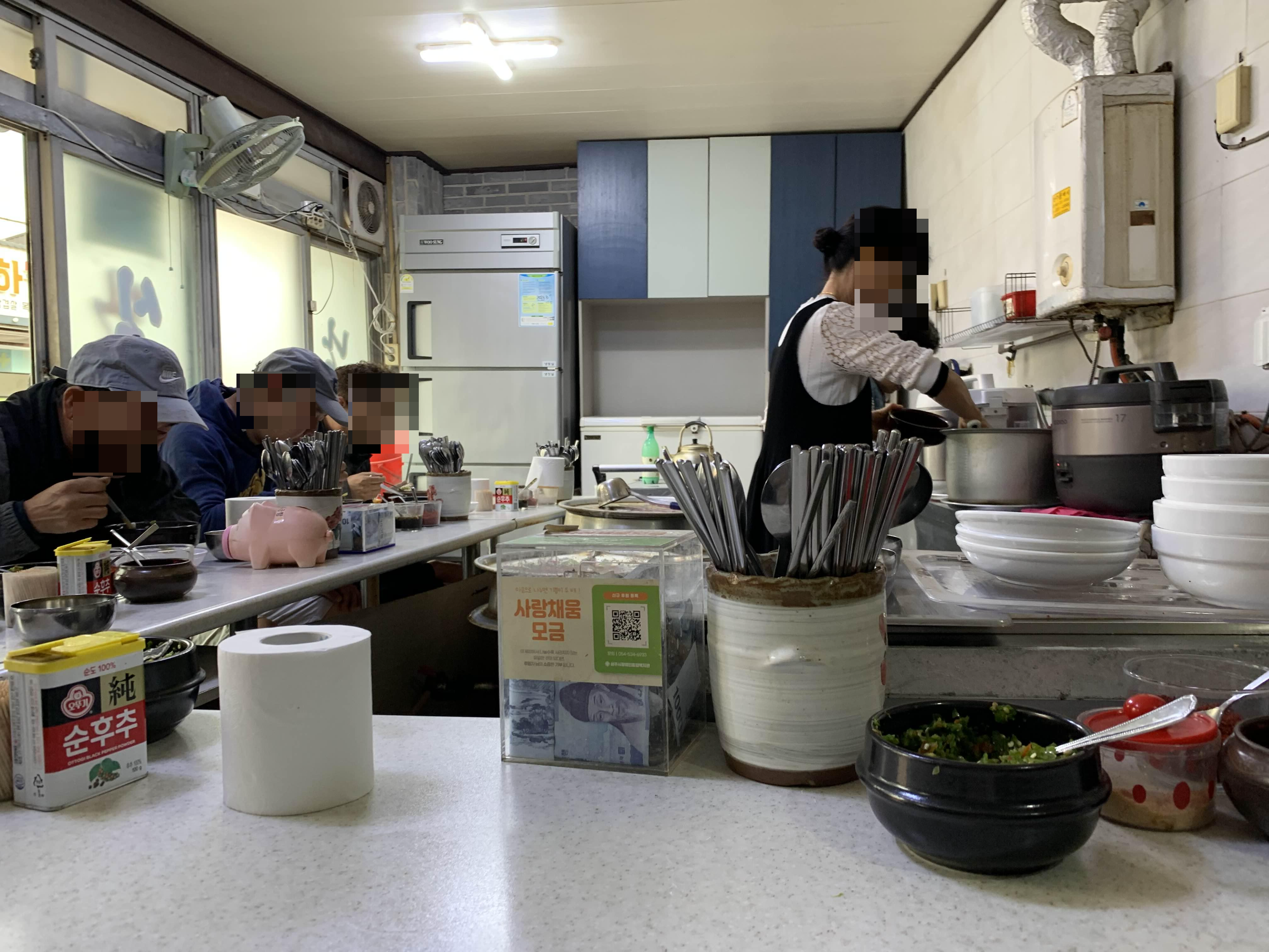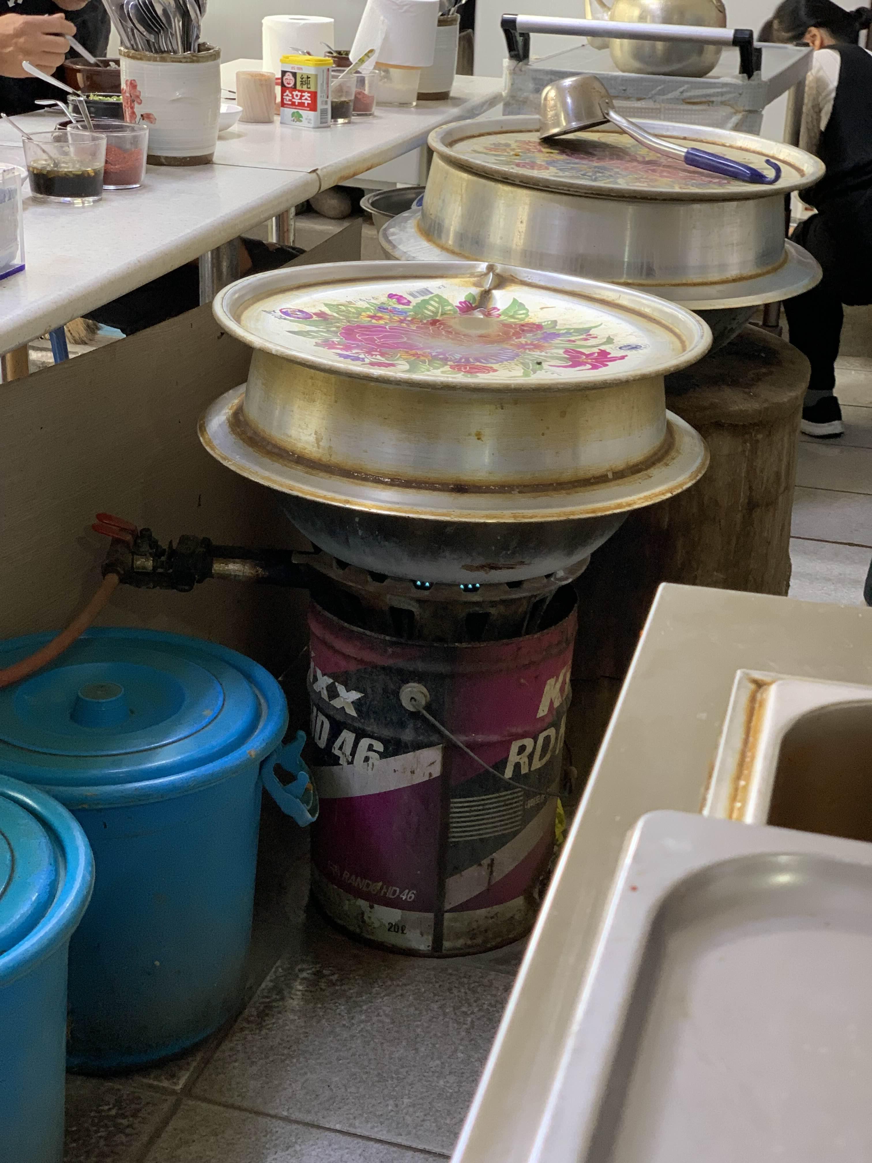 저 2개의 솥에서 해장국을 계속 끊이면서... 판매가 된다.
