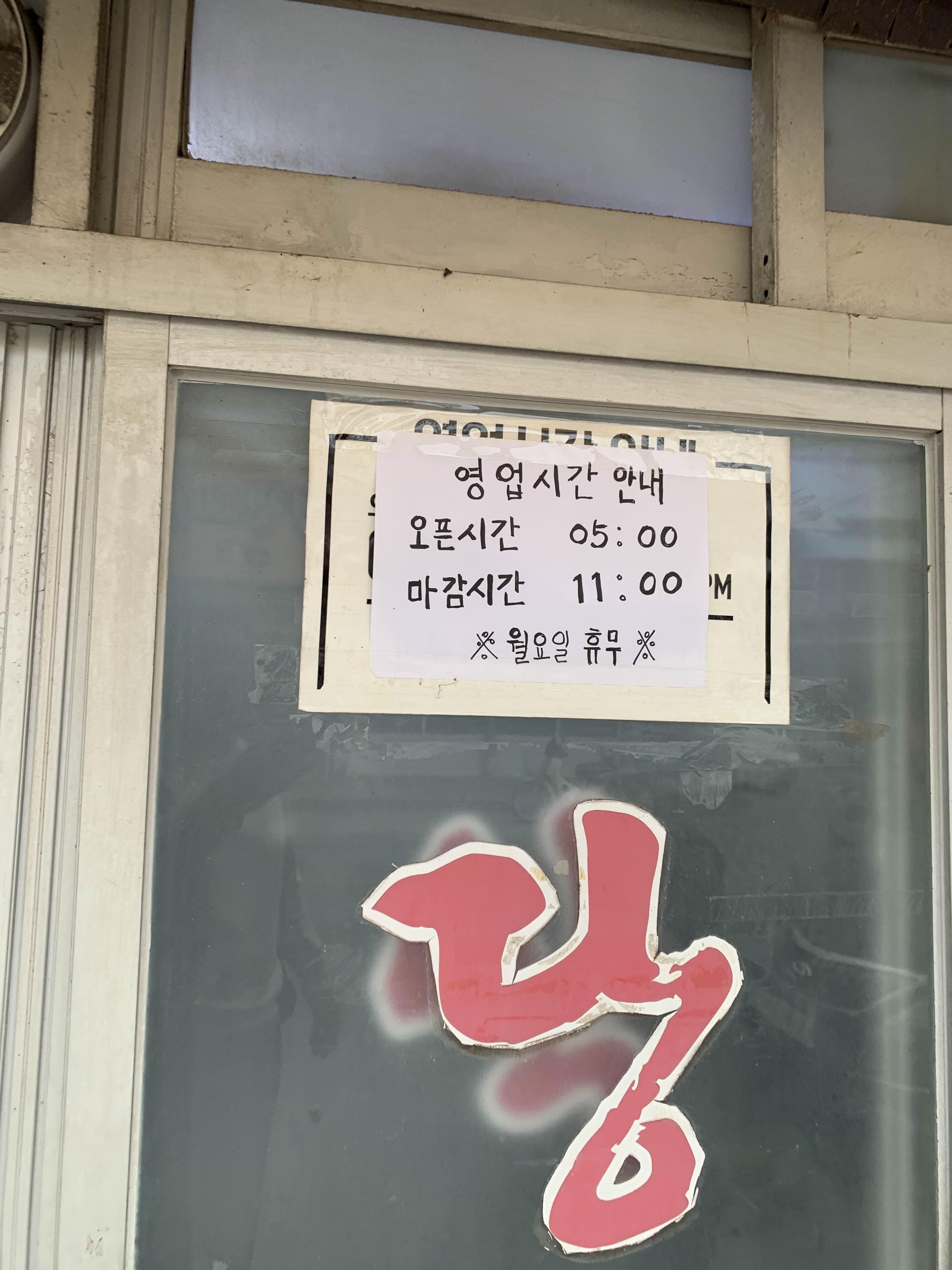 휴무는 월요인이고 새벽 5시에 오픈하여 오전 11시 마감이다.