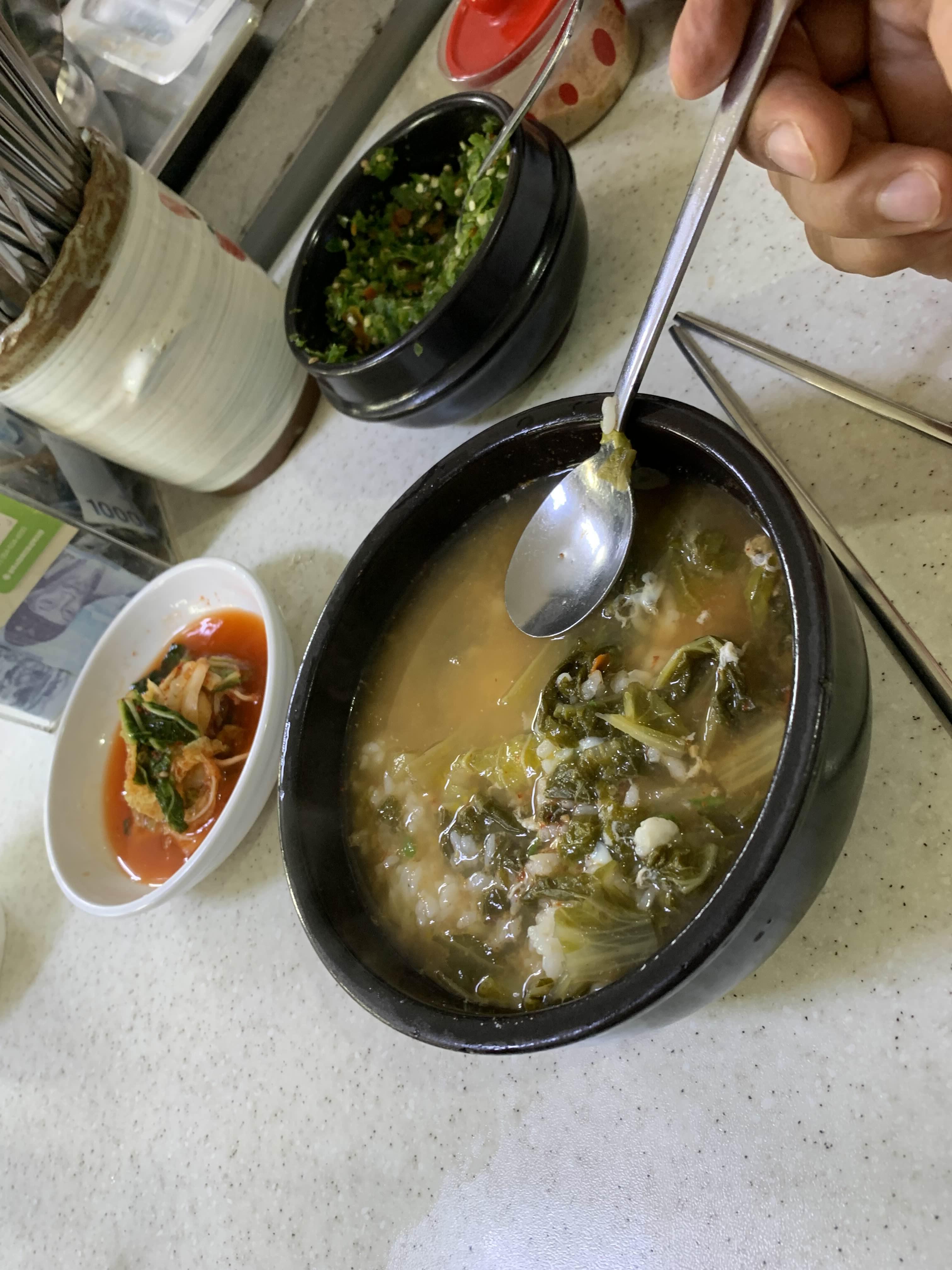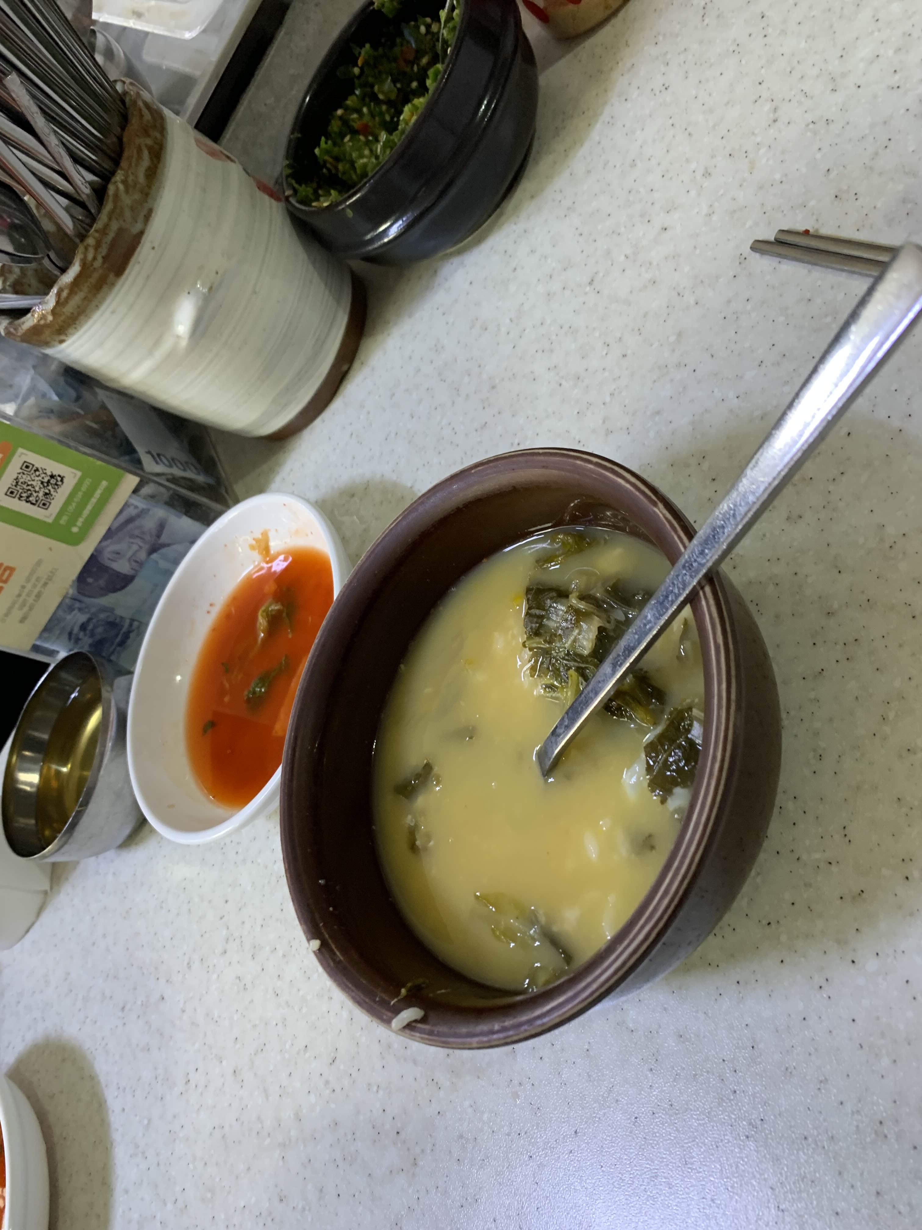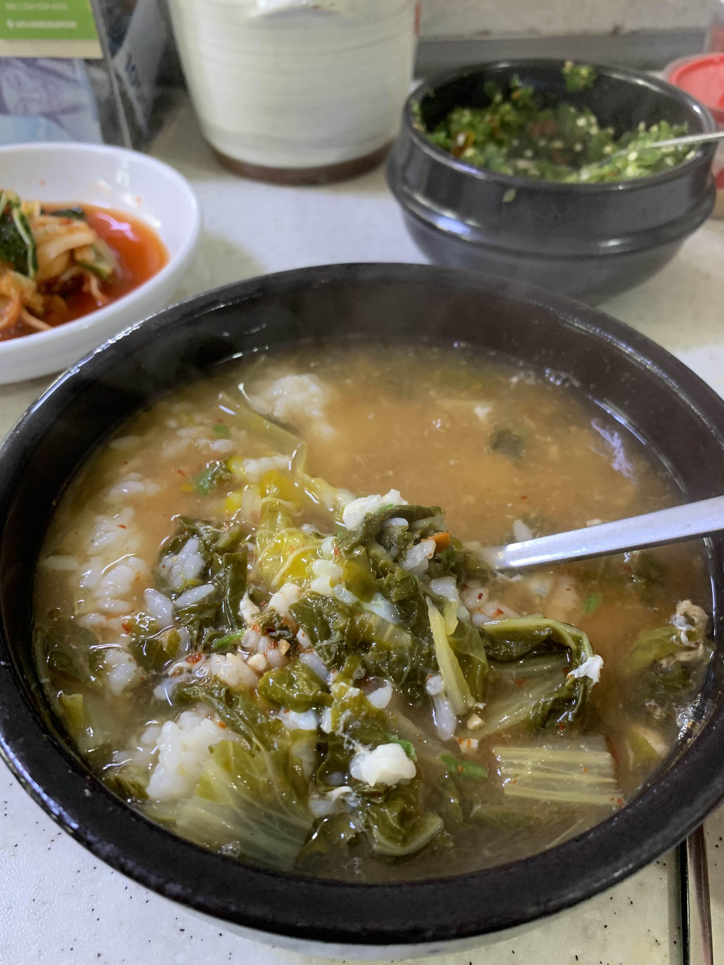내 거 해장국을 다 먹고 사진을 찍고 아이 거를 먹으려는데....