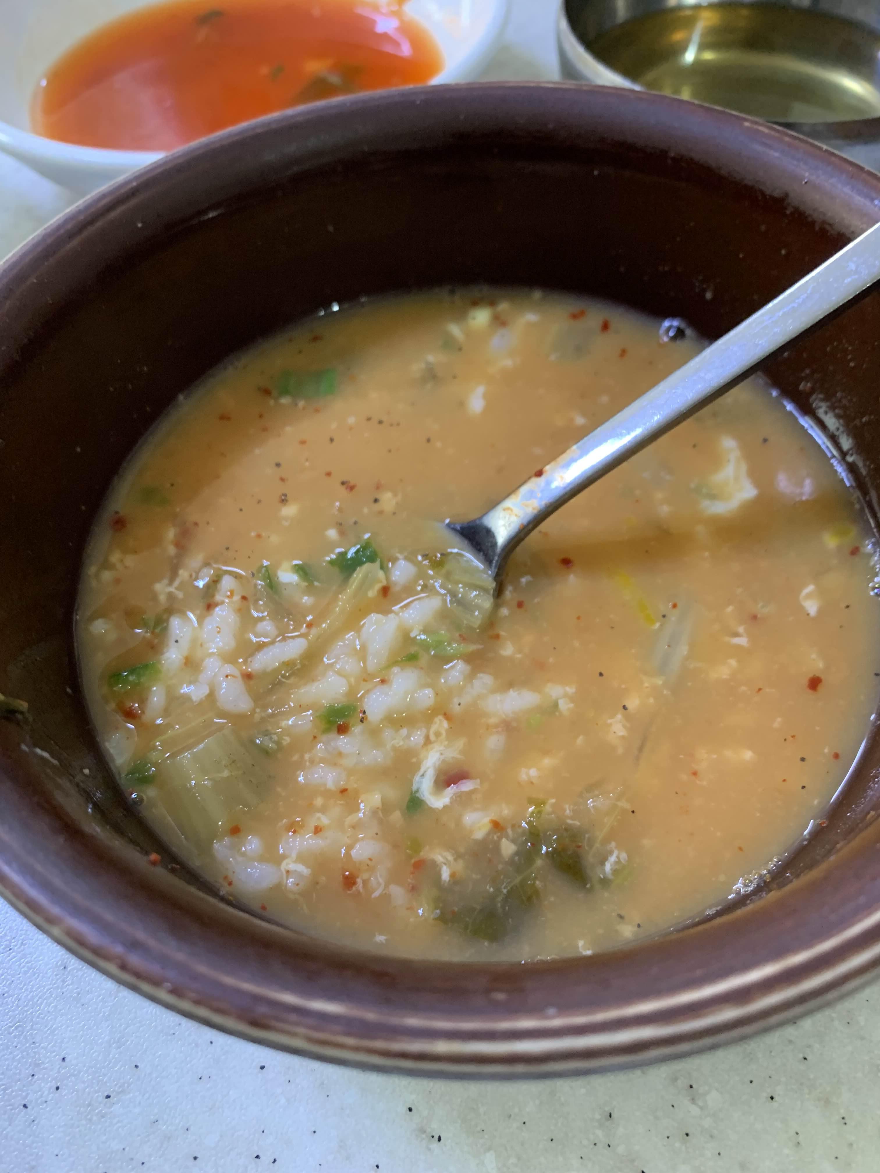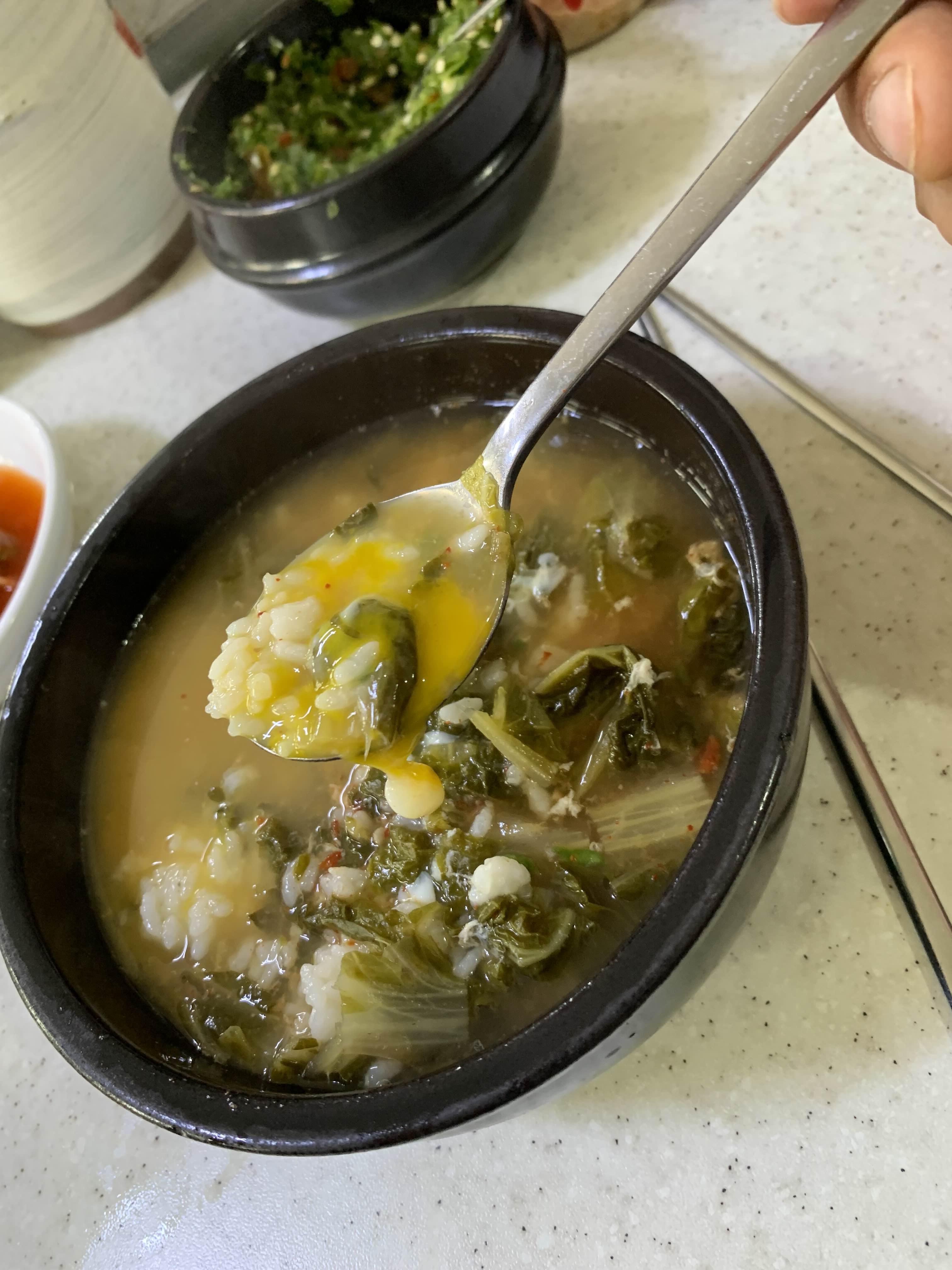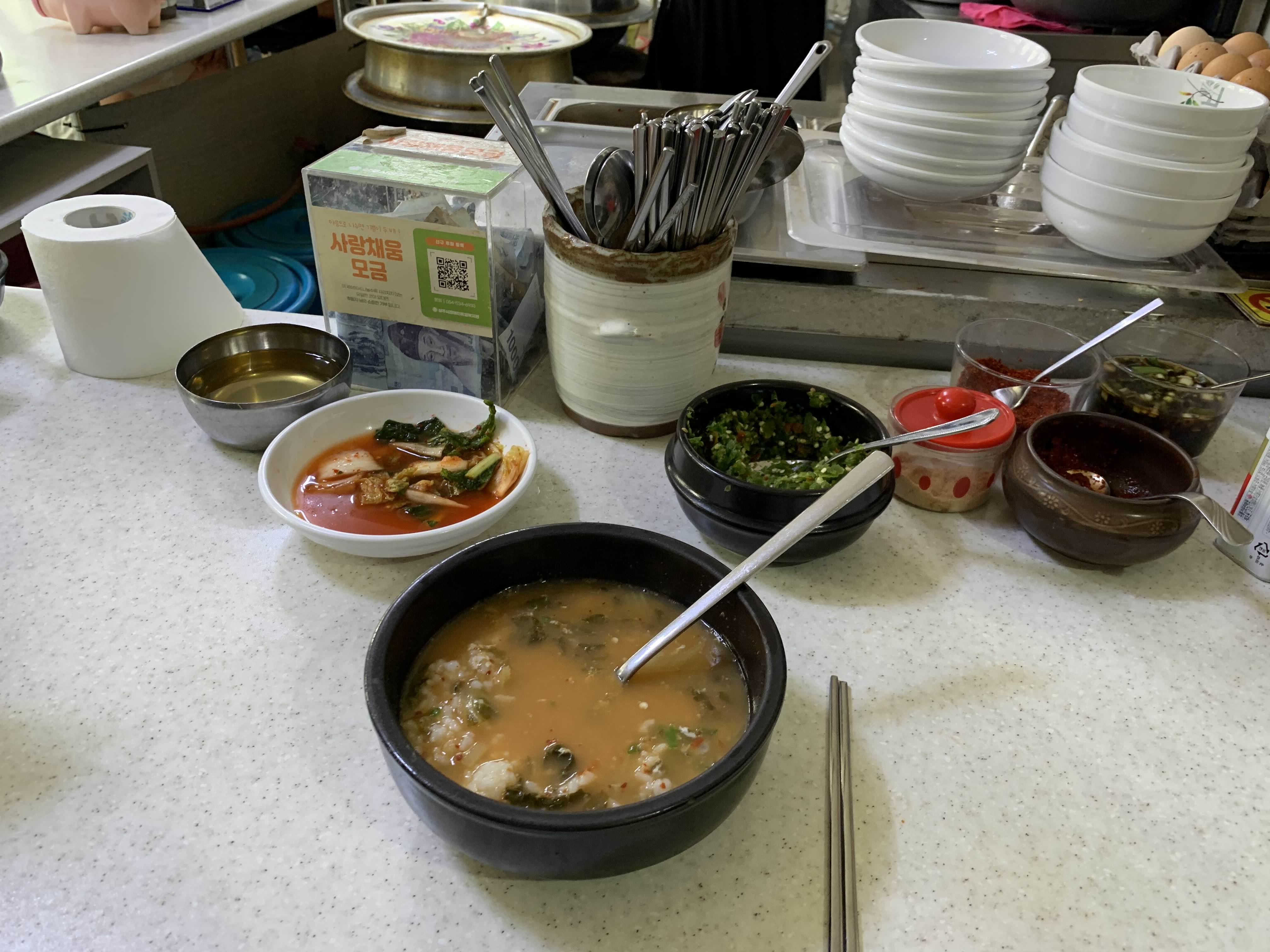 내 거 해장국을 다 먹고 사진을 찍고 아이 거를 먹으려는데....