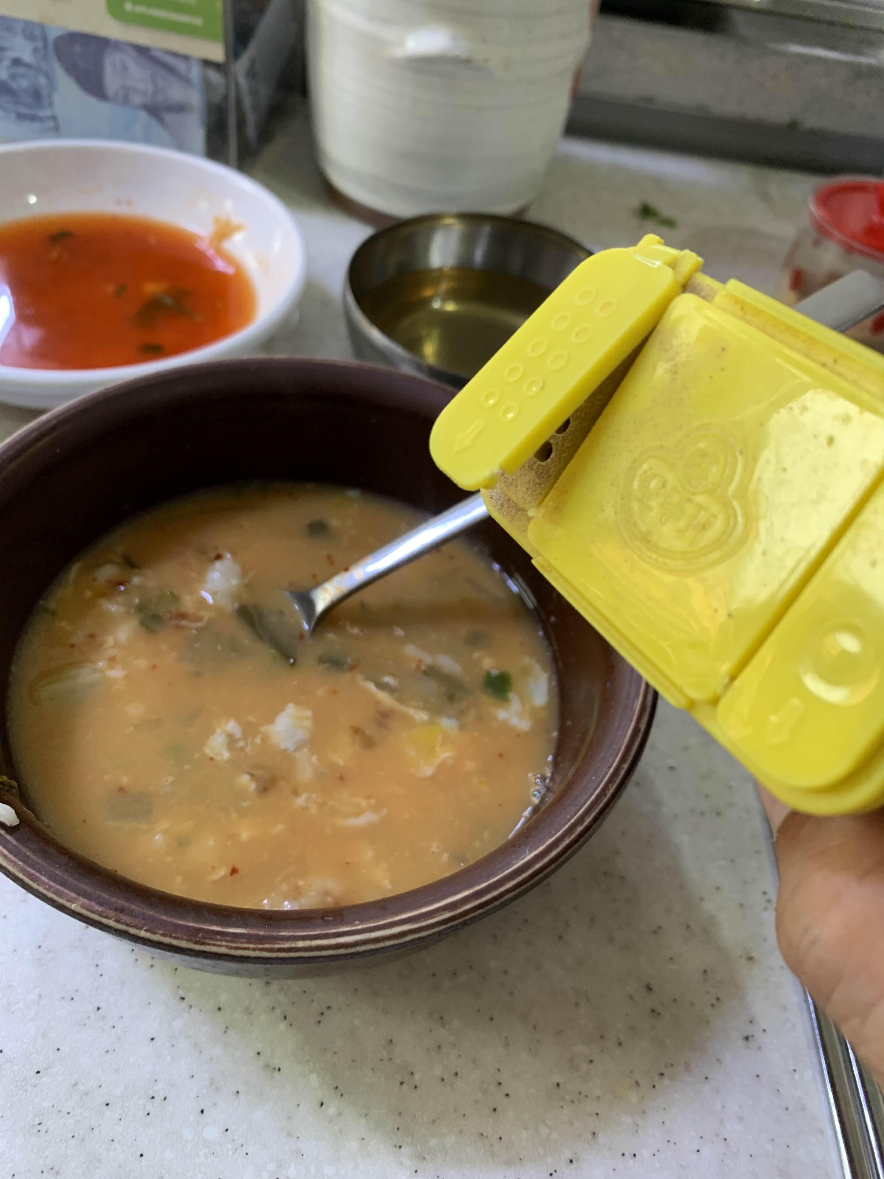 아이 해장국에는 후추를 조금 넣어서 맛보는데... 방금 전 먹었던 동일한 해장국이지만.... 소스가 약간만 바뀌어서 다른 국 느낌이 든다.