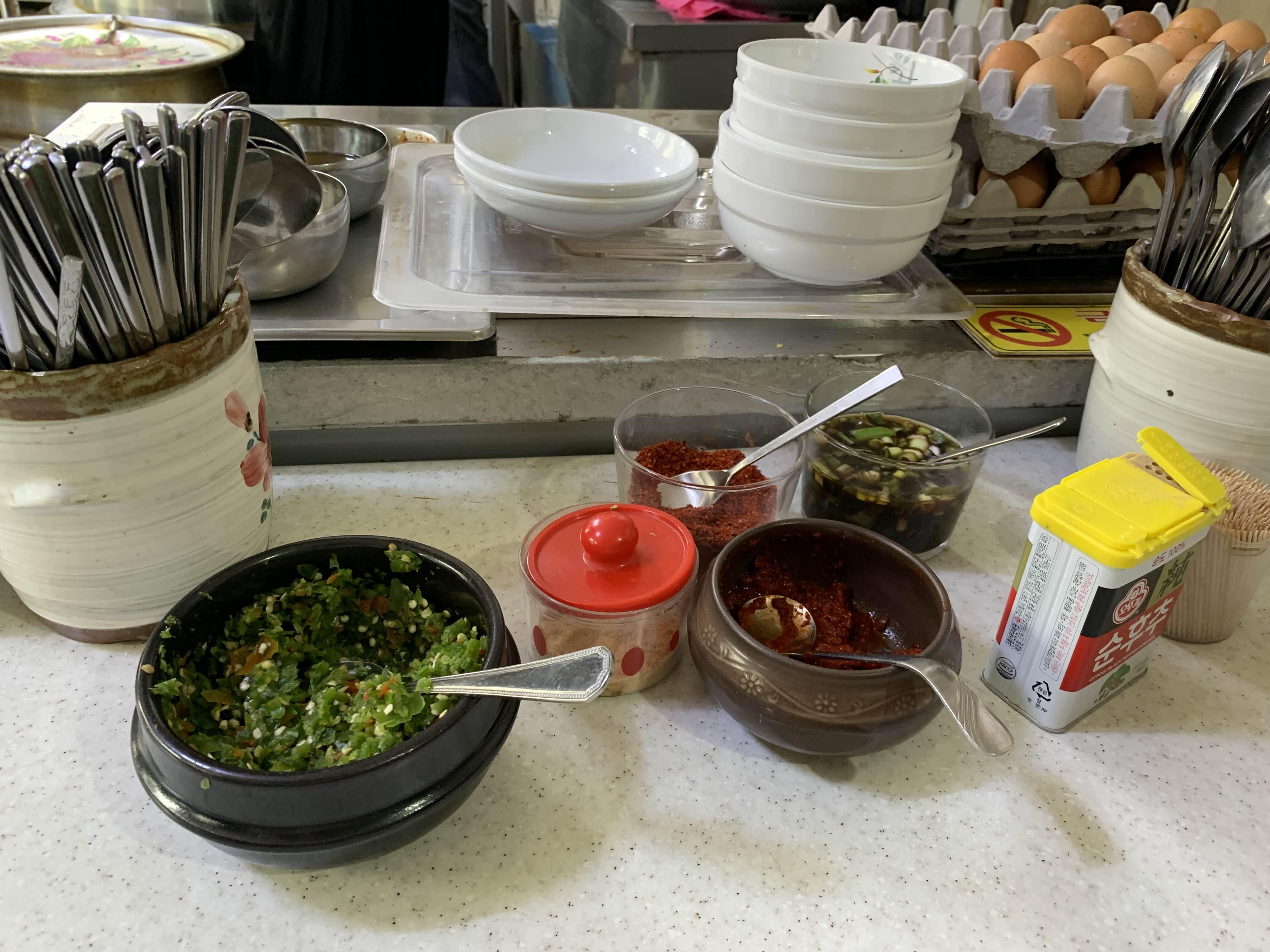 양념장이 4가지 정도가 있는데, 각 양념장을 넣어서 먹으면 맛이 살짝 식 변경된다.