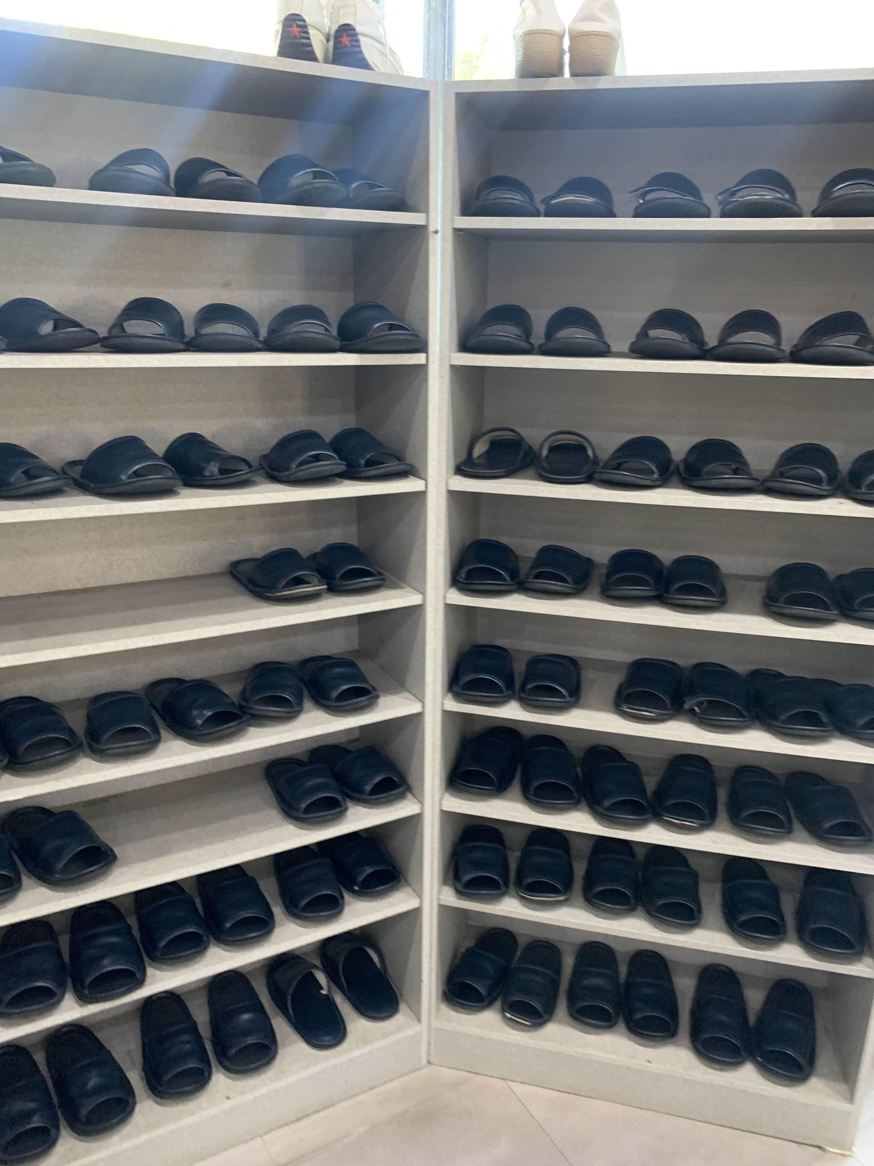 식당으로 들어가려면, 신발장에 있는 실내화로 갈아 신고 올라가야 하더군요.