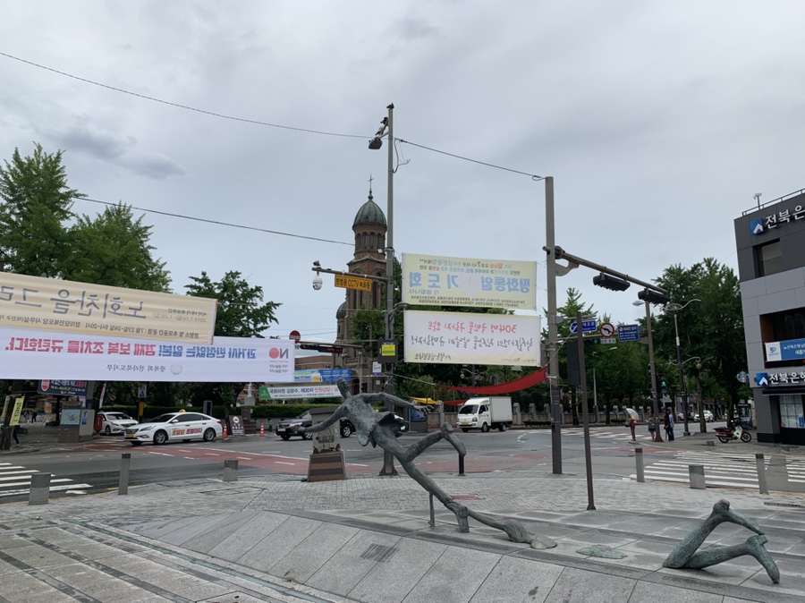 장수 고랭지 사과는 껍질을 먹어도 된다 해서 집에서 깨끗하게 씻어서 먹었더니 맛이 좋았네요. 사과 제철이 봄/가을이라 식감은(아삭아삭이 아닌 푸석함) 그렇게 좋지는 않았지만 단맛은 좋았습니다. 아이가 사과 즙을 잘 먹어서 가격을 알아보니 20봉에 2만 원이네요. 사과 철이 지나면 몇 개 주문해서 아이에게 줘야겠네요. 시식을 모두 마치고 한옥마을은 첫 관문? 전동성당에서 기념촬영? 자주 오는 곳이지만 전동성당에서 사진을 찍어 면 잘 나와서 한 컷^^ 장수군 홍보 부체와 함께!!