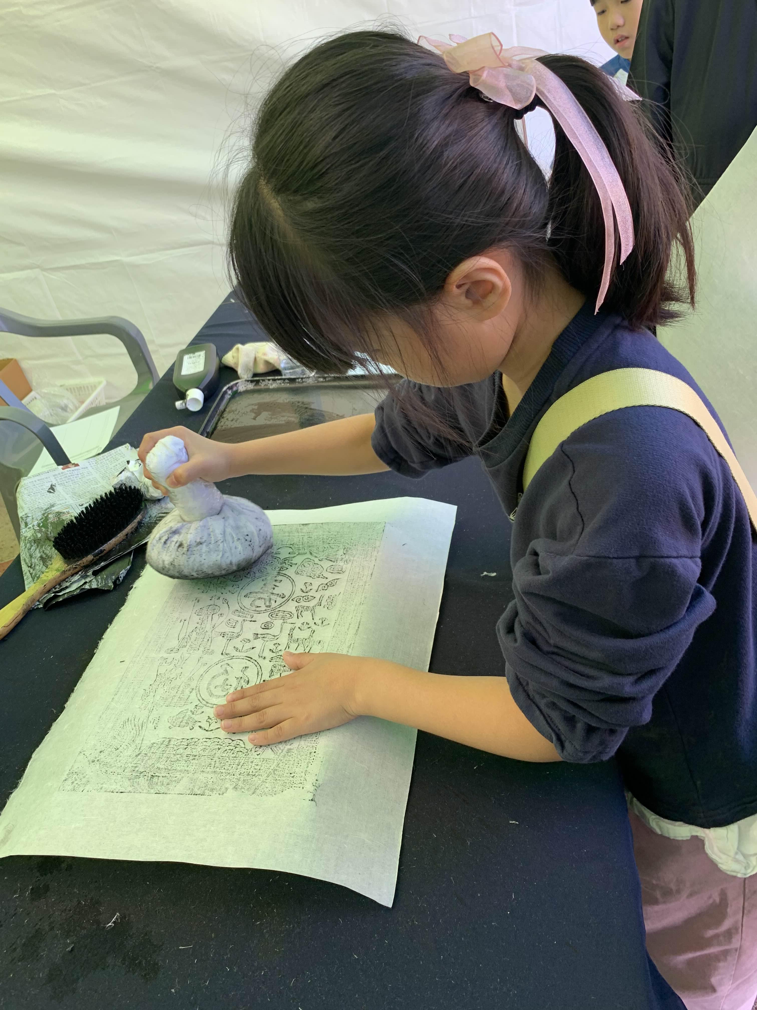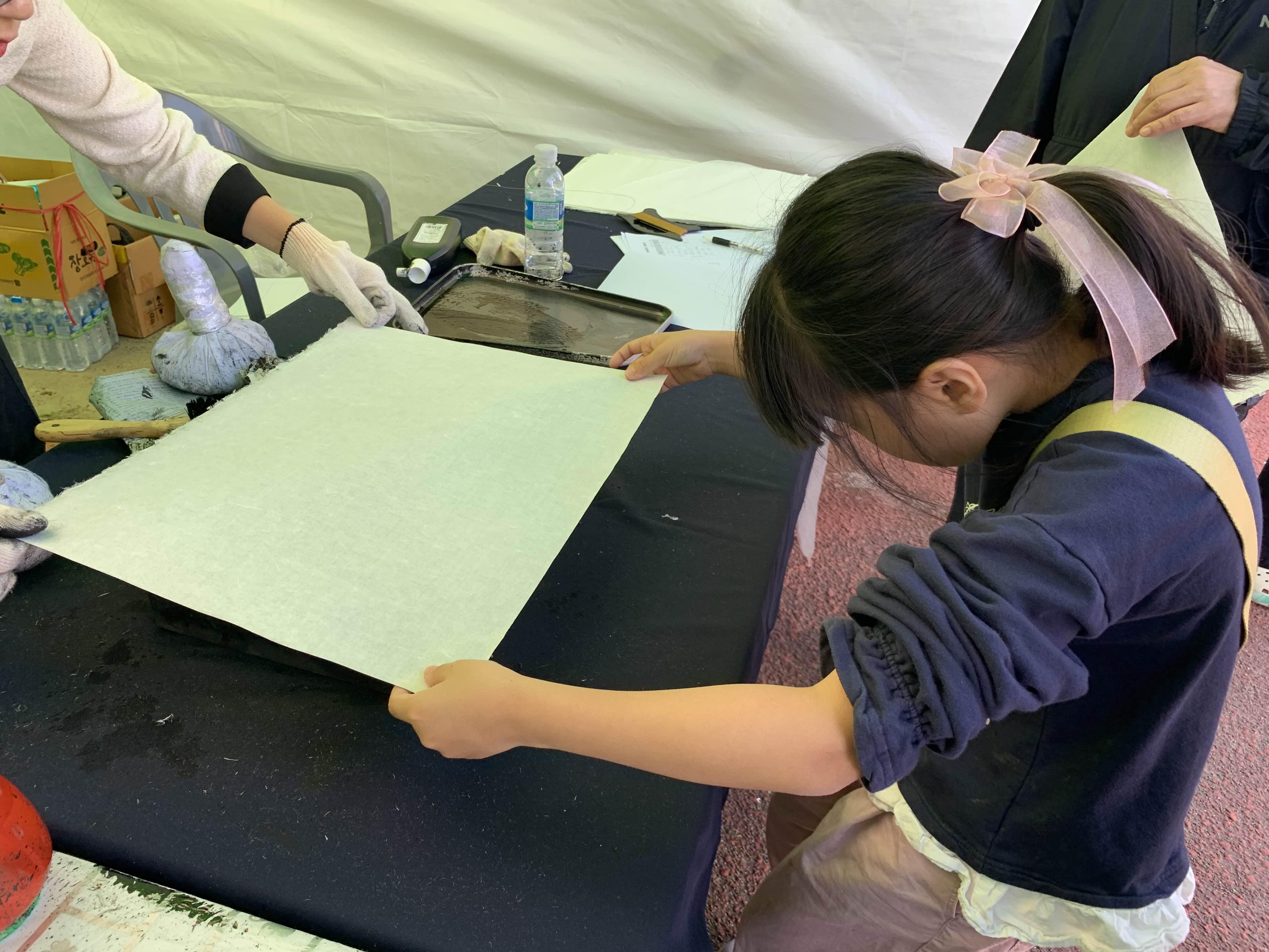 한지를 이용하여 탁본? 체험~ 빠르게 진행된다.