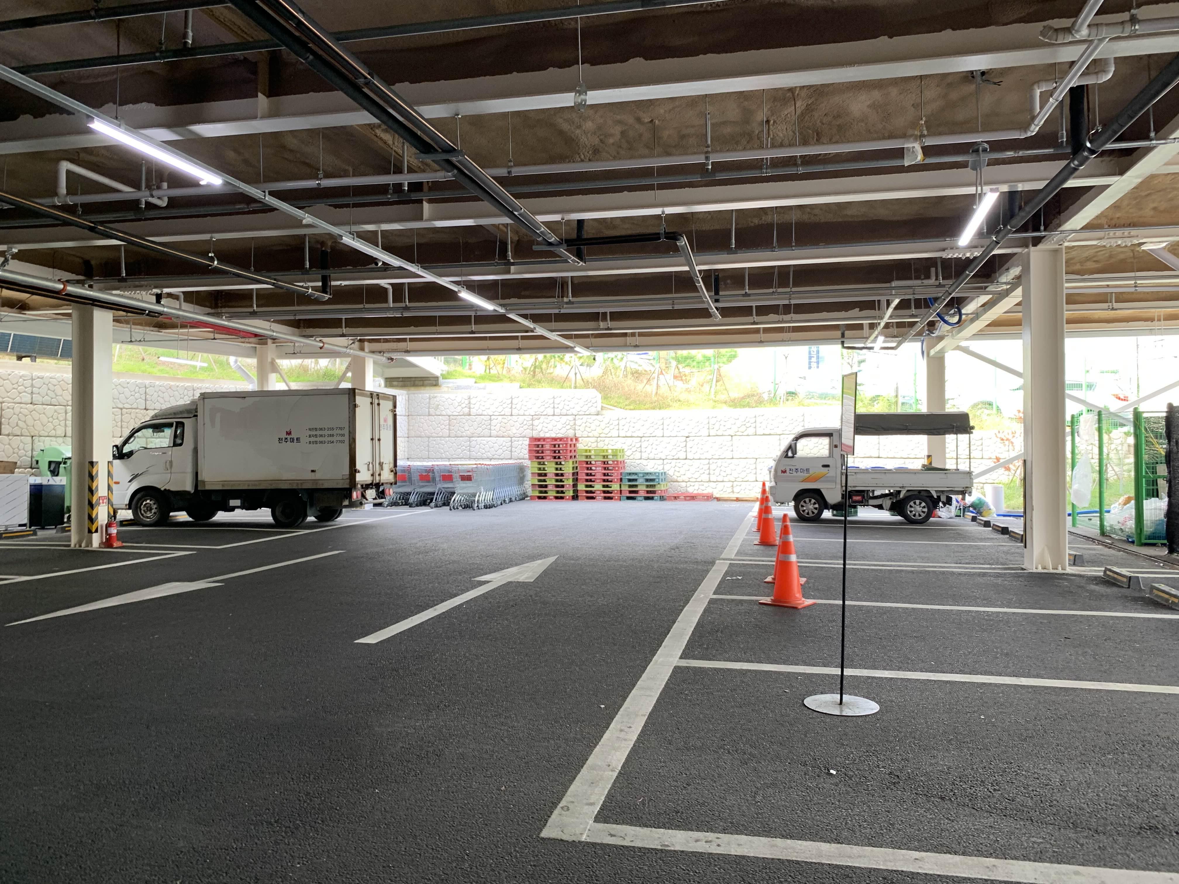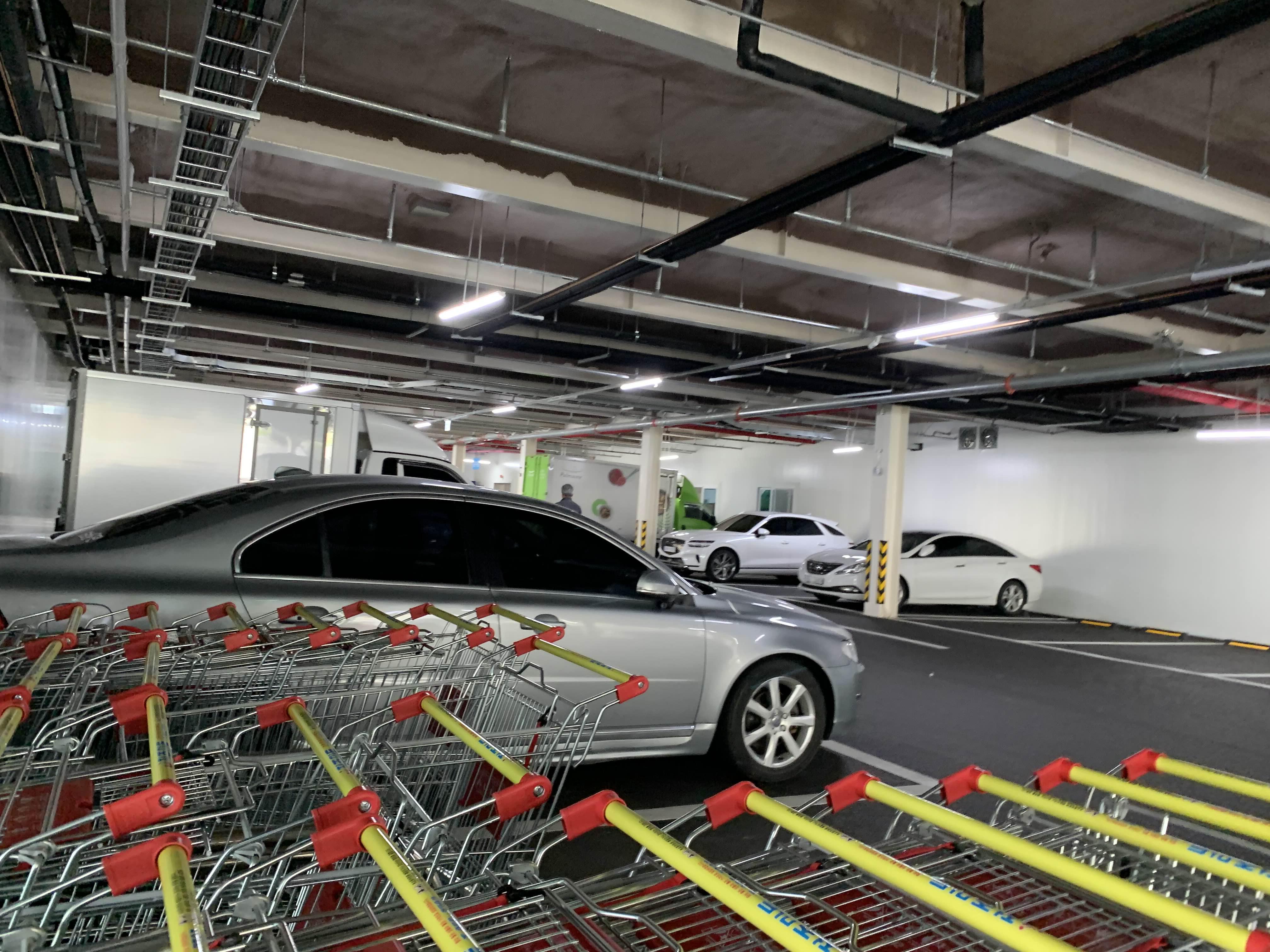 마트 1층은 차량 주차장으로... 자전거를 주차하고 2층 매장으로 올라간다.