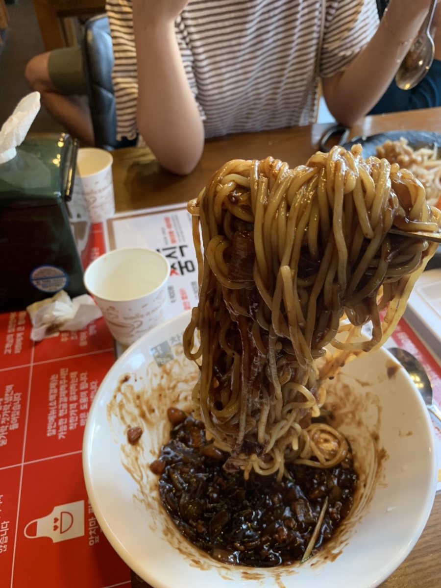 탕수육이 나오고 2,900원 짜장면이 나오네요. 짜장면 맛은 일반적인 짜장면이라... 가격이 저렴해서 한 번쯤 먹을만합니다. 좀 아쉬운 점은 양이 좀 적다는 게... 이 정도 양이면, 일반 짜장면의 1/2에서 2/3 정도의 양입니다. 짜장면 양을 좀 늘리고 가격을 올리는 게 나을 거 같네요. 일반 중식당에서 메인 음식을 먹고 나오는 짜장면 보다 약간 많은 양입니다.