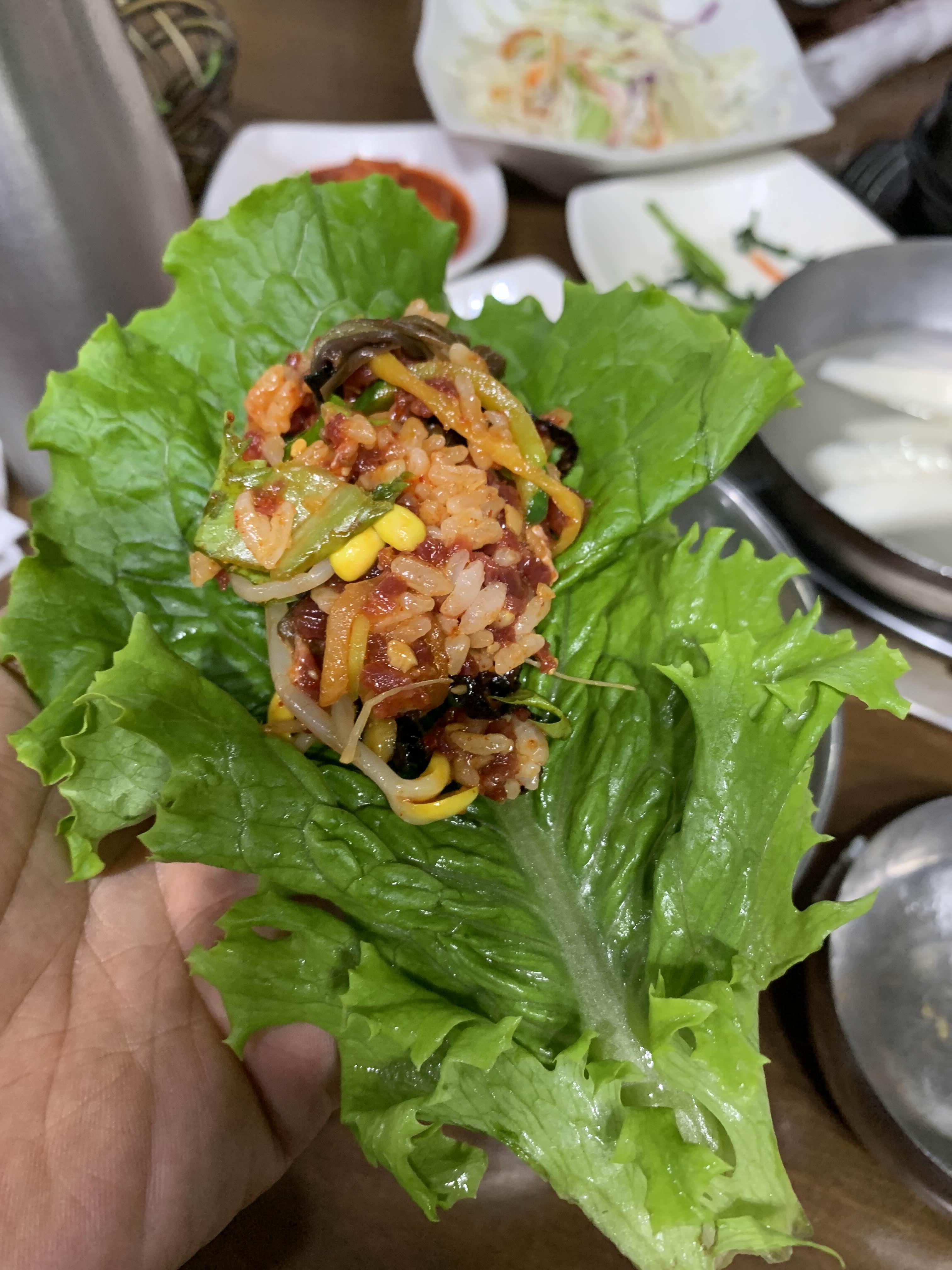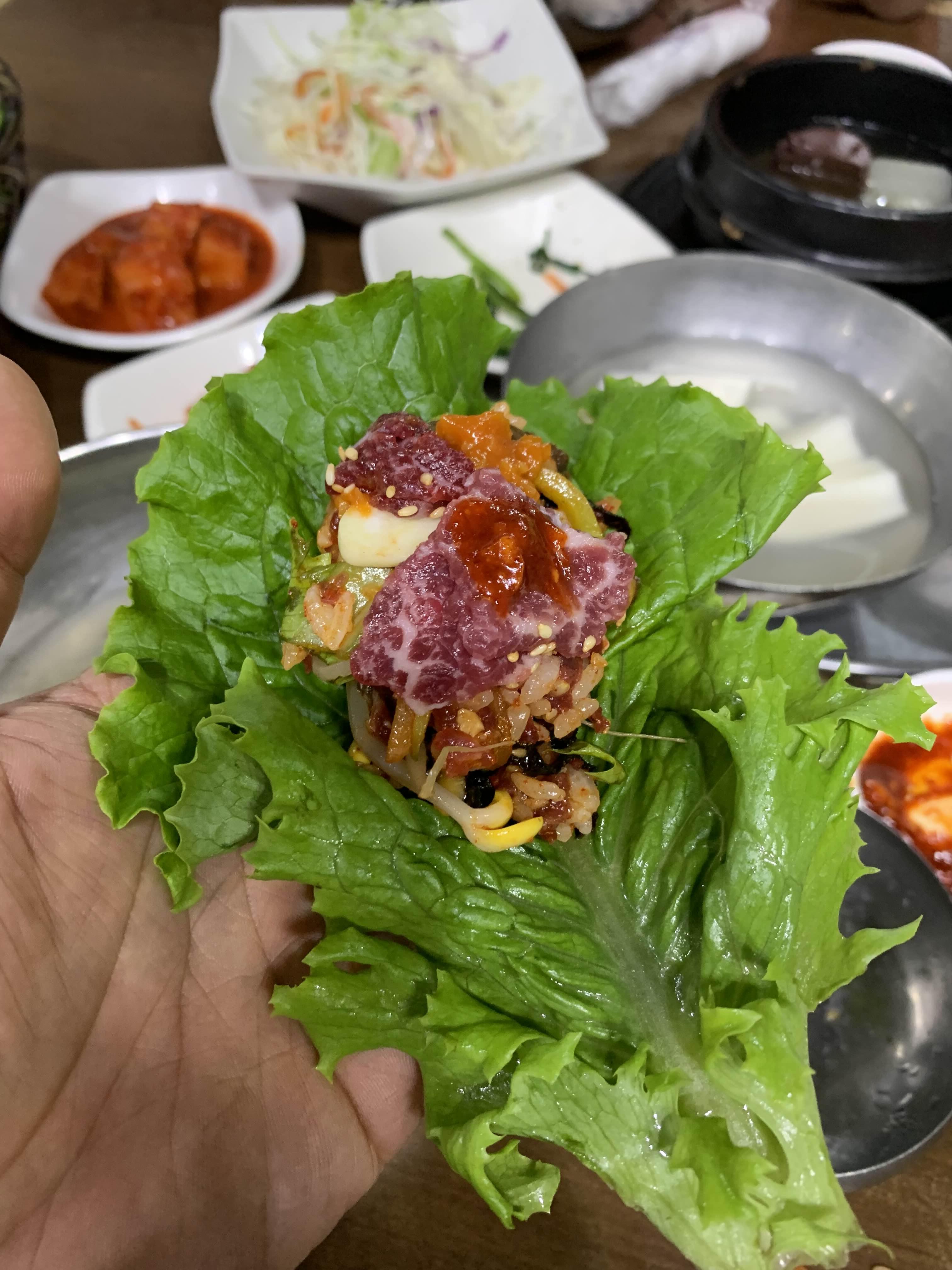 육회비빔밥에 생고기를 쌈 싸서 먹어도 좋음!!ㅎㅎ