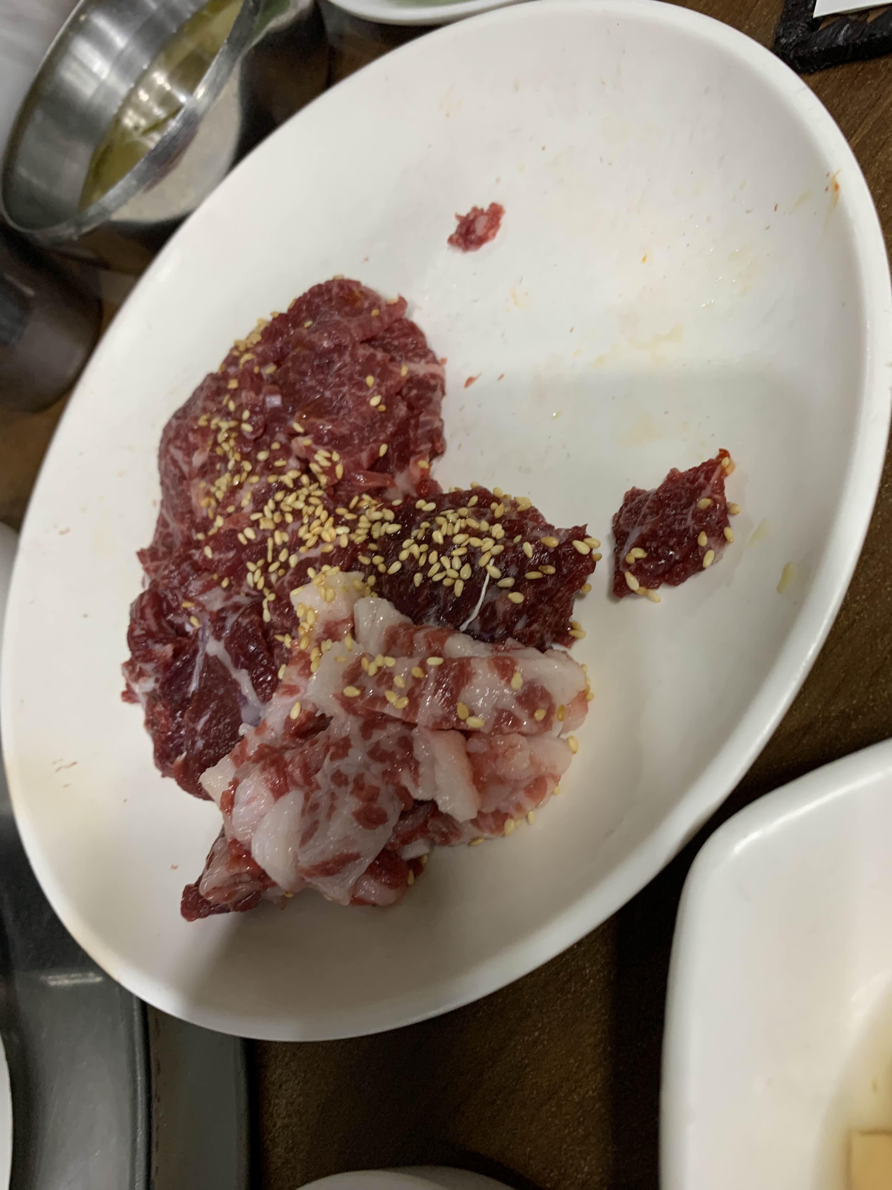 생고기가 먼저 나온다. 생고기는 반절로(250g) 주문!! 양이 상당히 많아 보인다. ㅎㅎ