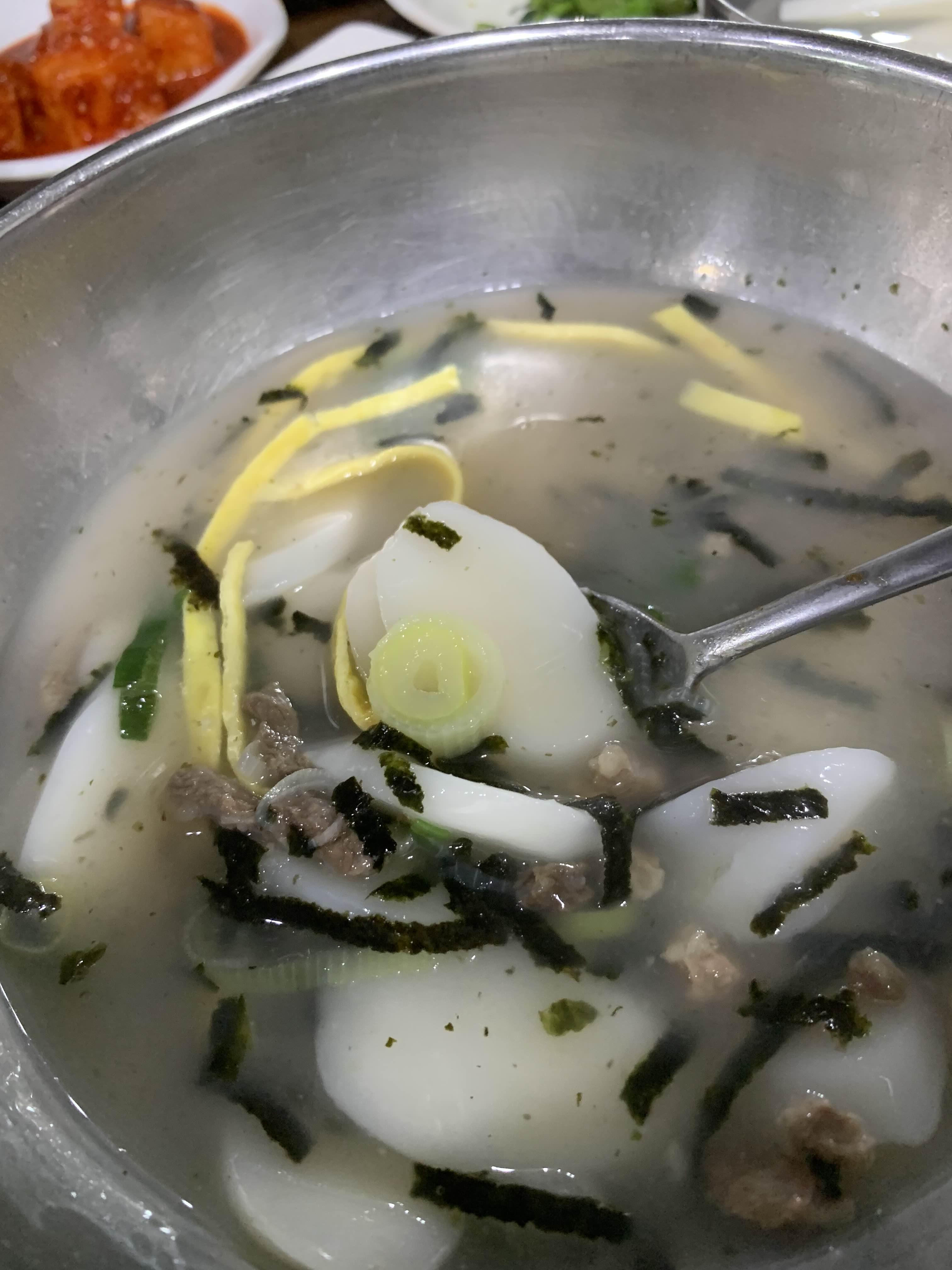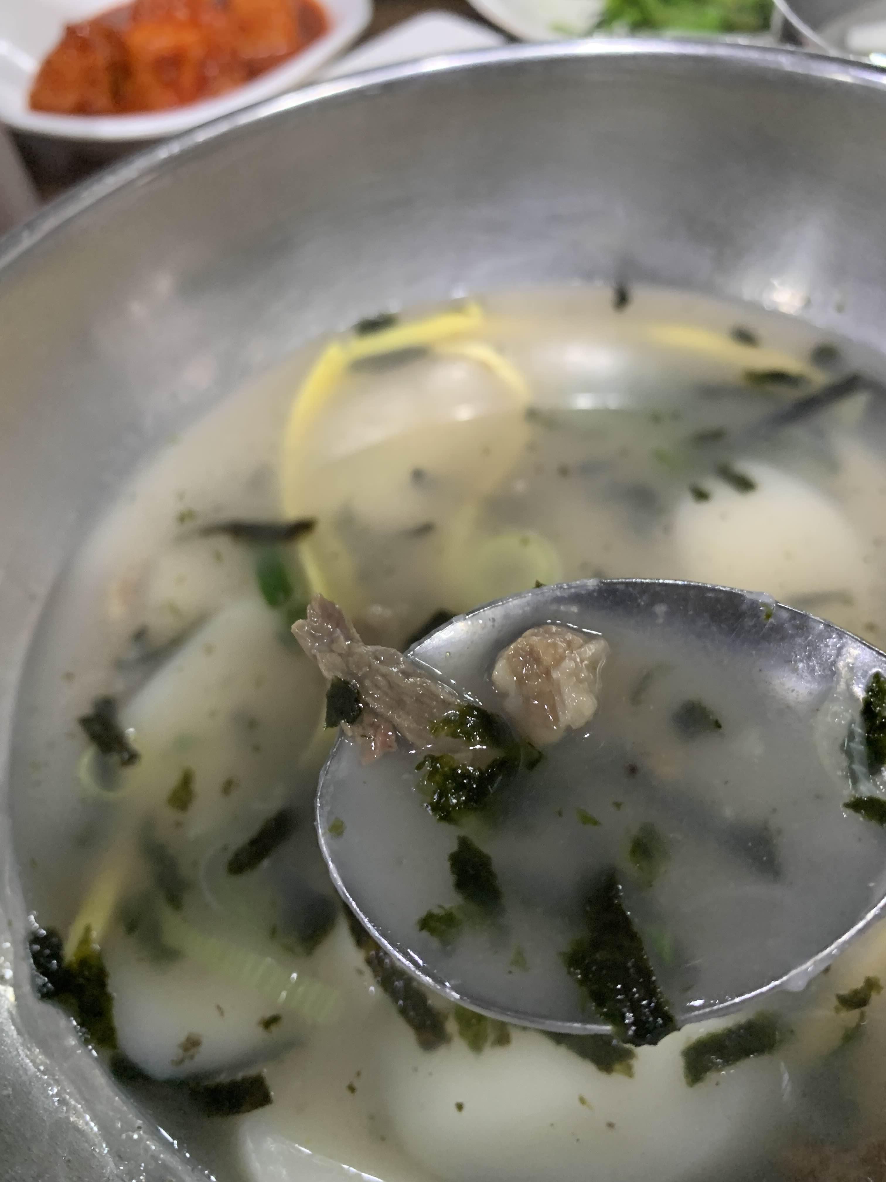 떡국에 한우가 튼실하게 많이 들어가 있다.