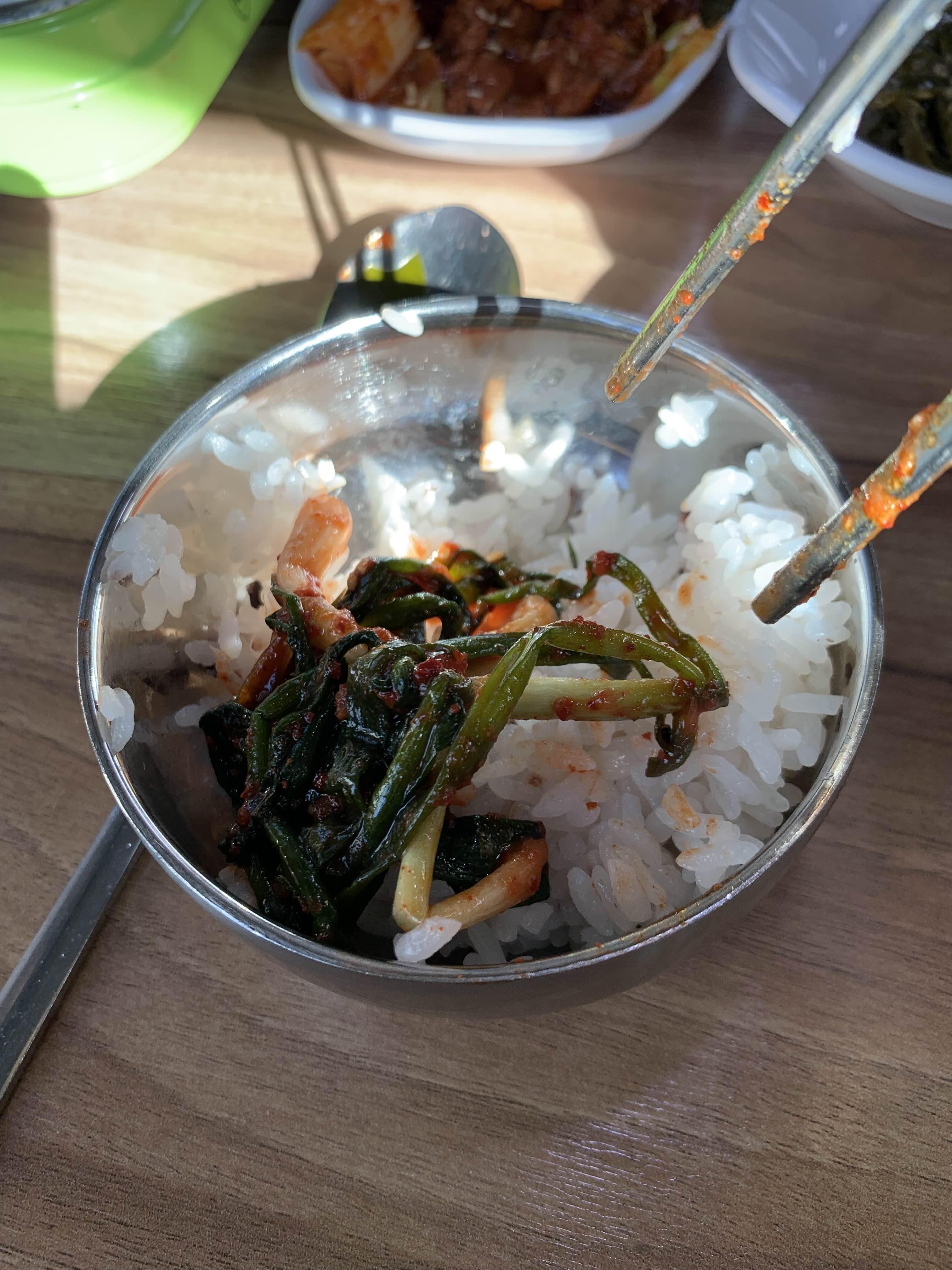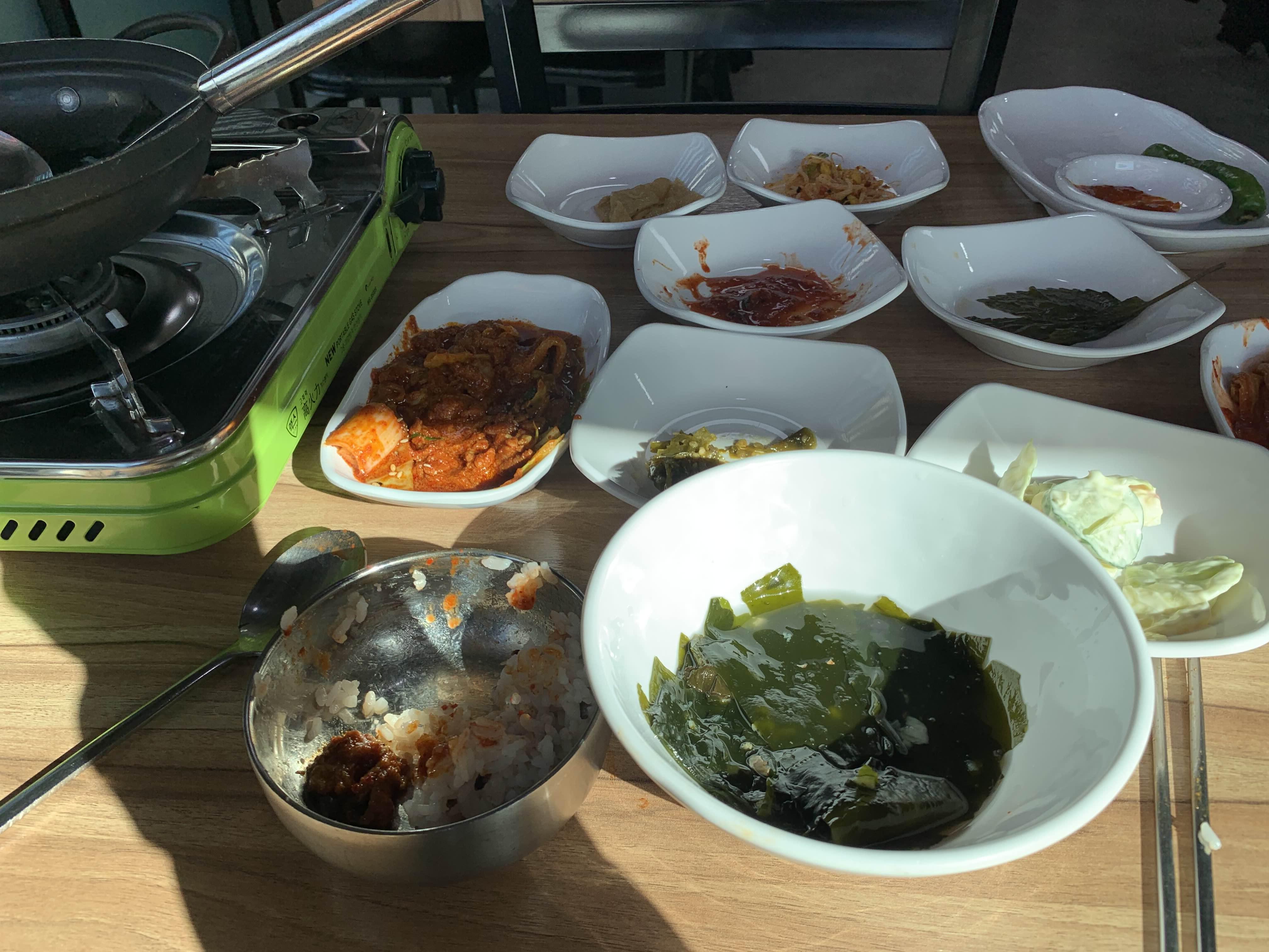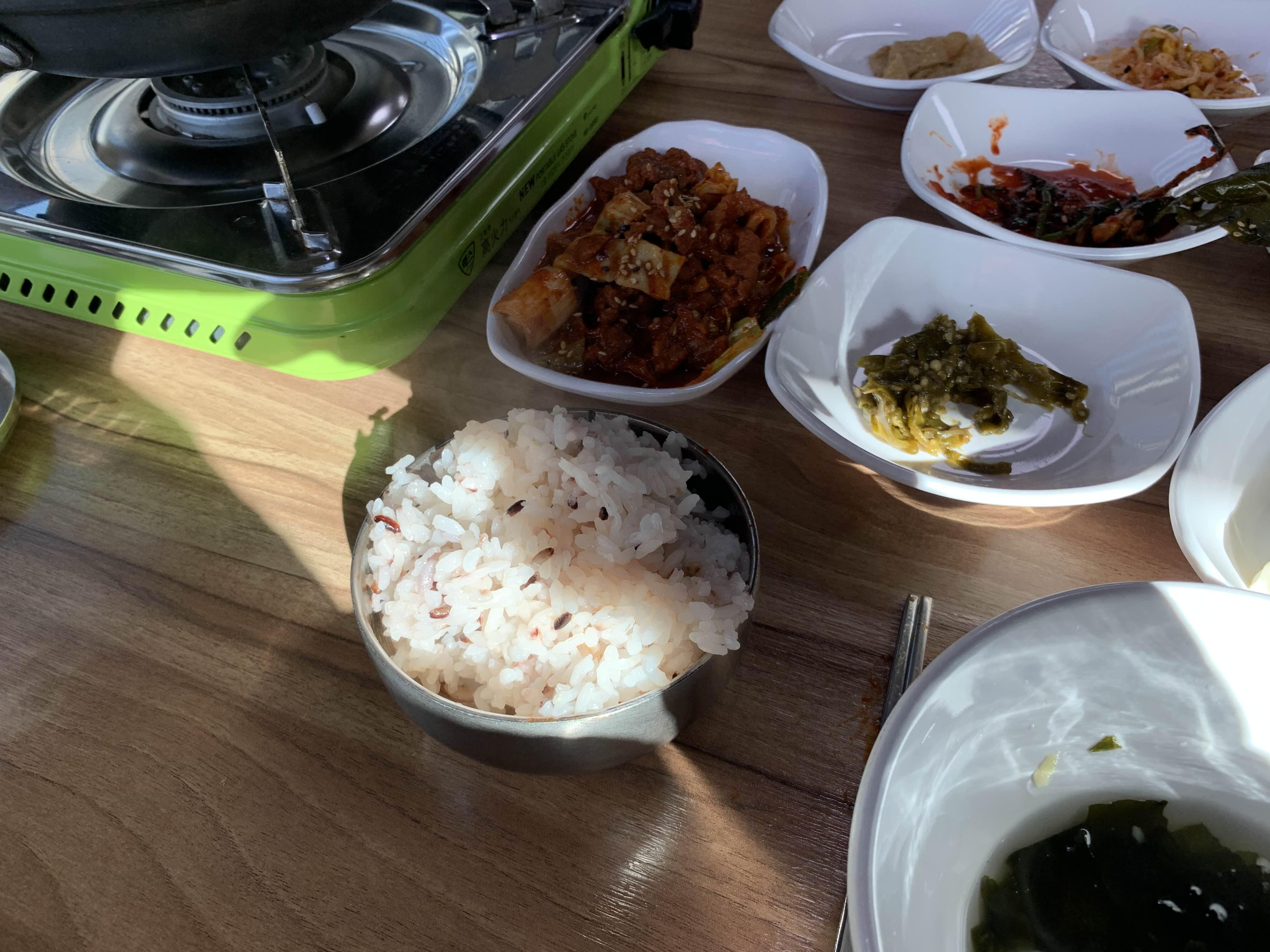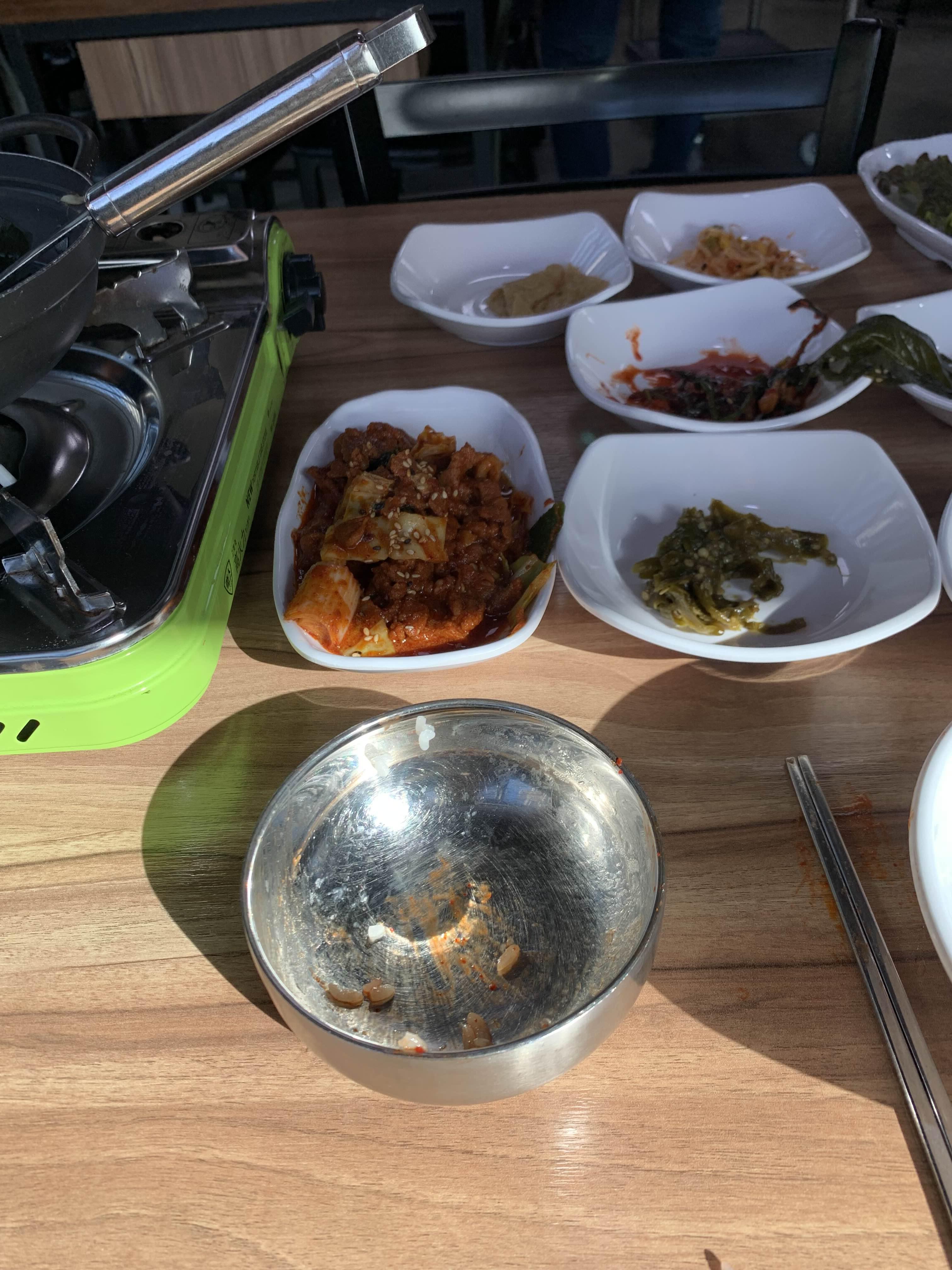반찬 몇 번 먹으니... 한 공기가 다 떨어졌다.