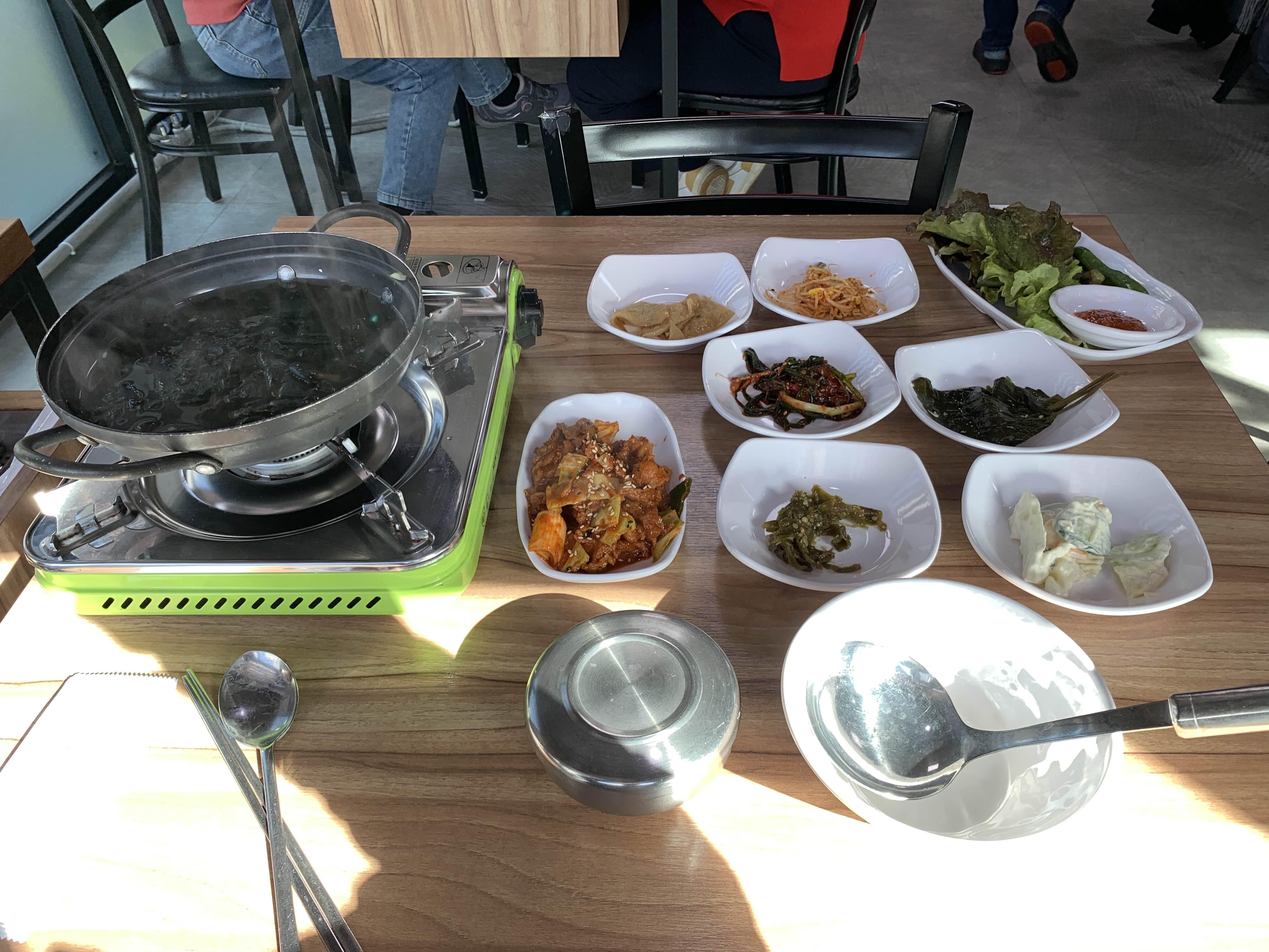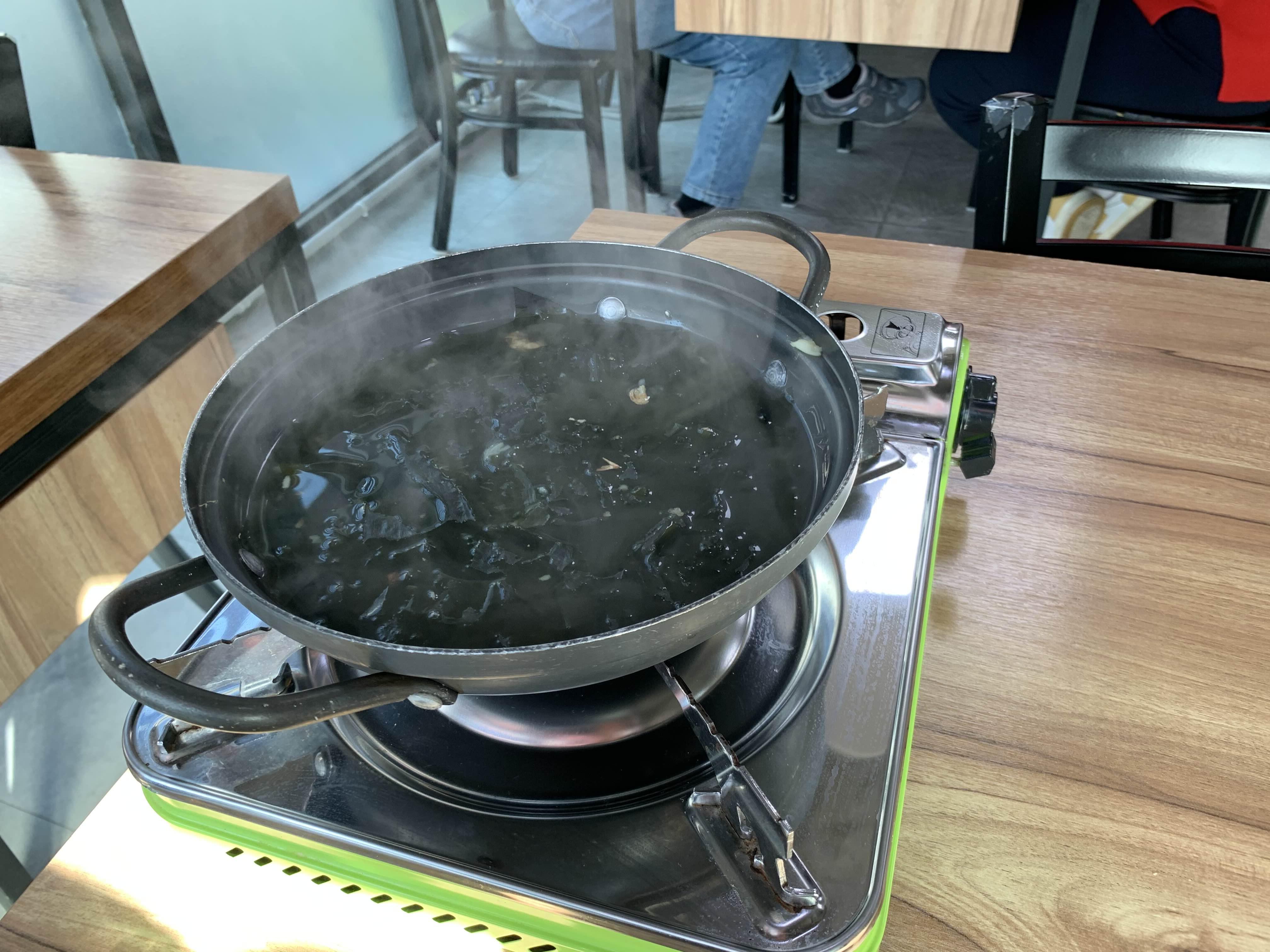 얼마 안 되어 국이 먼저 나오더군요. 혼자 방문해도, 국은 냄비에 나오는데... 비주얼이 먹음직스럽더군요.ㅎㅎ