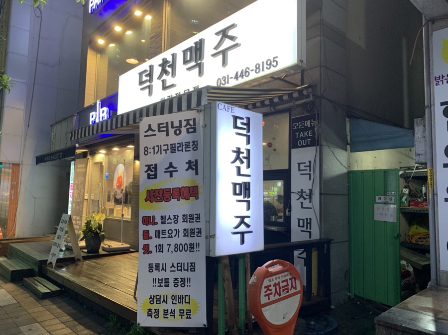 퇴근 후 가볍게 맥주 한 잔 마시려고 방문한 식당입니다. 덕천 맥주 근처 호 치킨을 자주 방문해서 호 치킨으로 들어가려는데, 만석;;; 그래서 근처 덕천 맥주에 들어갔네요. 덕천 맥주도 손님이 가득했는데, 한 테이블이 있어 들어가게 되었네요.