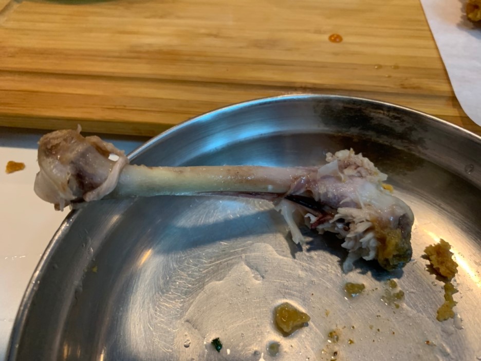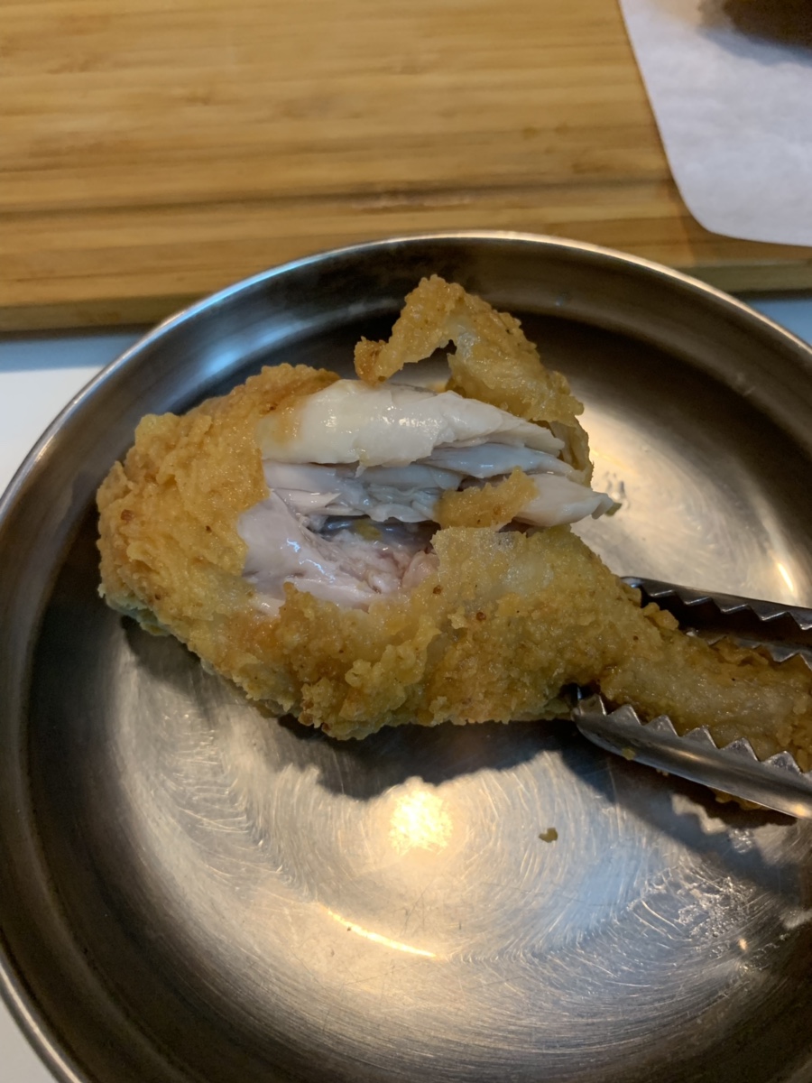 기다리던 치킨이 나왔네요. 튀김옷은 평범한 프라이드 튀김입니다. 여기에 양념소스를 살짝 찍어서 먹으면 맛이 괜찮더군요. 튀김옷보다는 닭고기 살이 부드러웠습니다. 그래서 닭 다리뼈를 봤더니, 검은색이 아닌 흰색이더군요. 닭고기를 냉동시키면 닭뼈가 검게 변하는데 여기는 냉동닭이 아니더군요. 닭의 연골 부분도 말랑말랑하더군요. 닭이 신선해서 기분 좋게 소스를 찍어서 냠냠!! 맛있게 다 먹었네요. 치킨을 먹고 있는데, 다른 테이블에서 국물떡볶이(5,000)와 팝 치킨(4,000원) 주문해서 드리는데... 맛있어 보이더군요. 다음 방문 시 국물떡볶이를 주문해야겠네요.