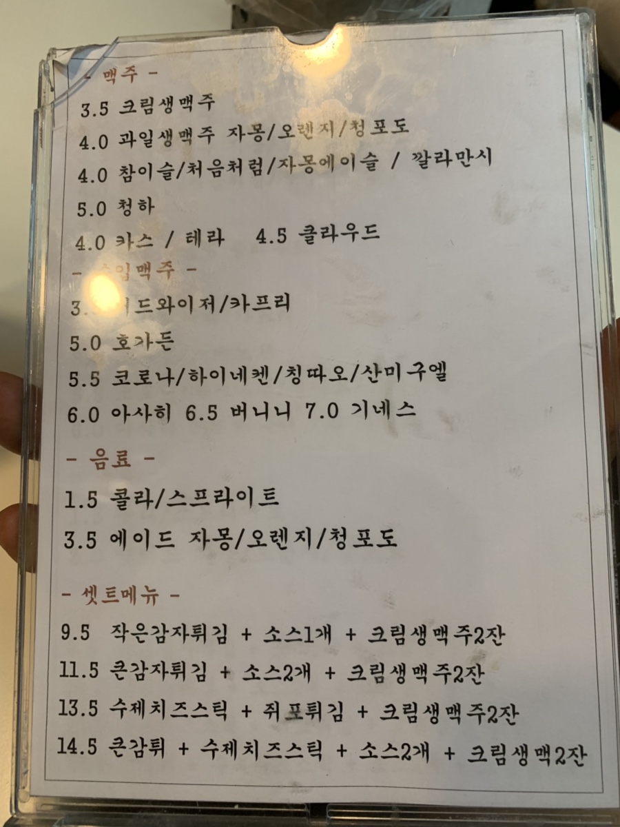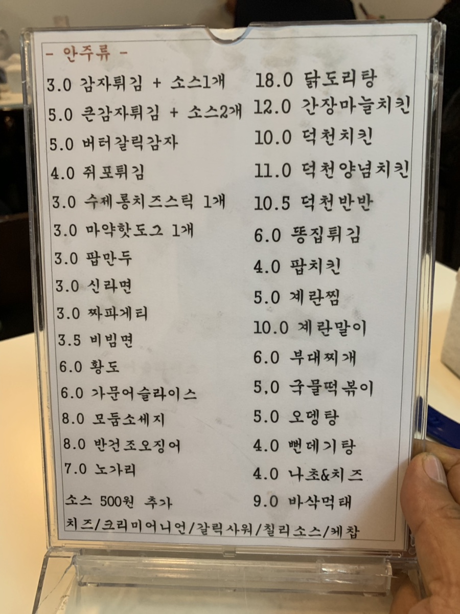 신선한 닭고기를 이용하여 저렴하게 판매하는 맥주집이네요. 다음 방문할 때 다른 테이블에서 주문하신 국물떡볶이나 닭볶음탕을 주문해봐야겠네요. 닭볶음탕도 맛있어 보이던데^^