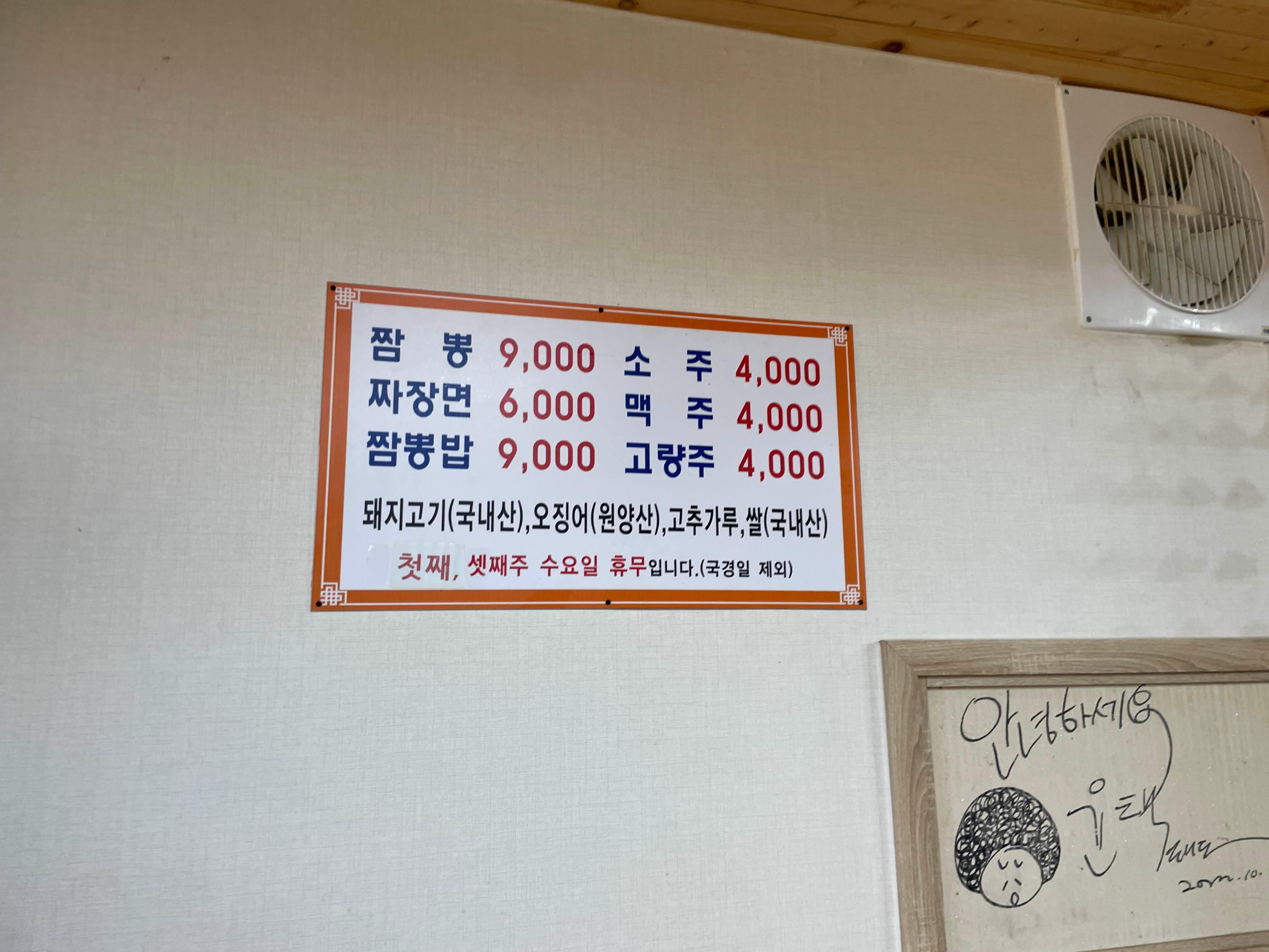 중식당 메뉴는 3가지 짬뽕밥/면 그리고 짜장면!