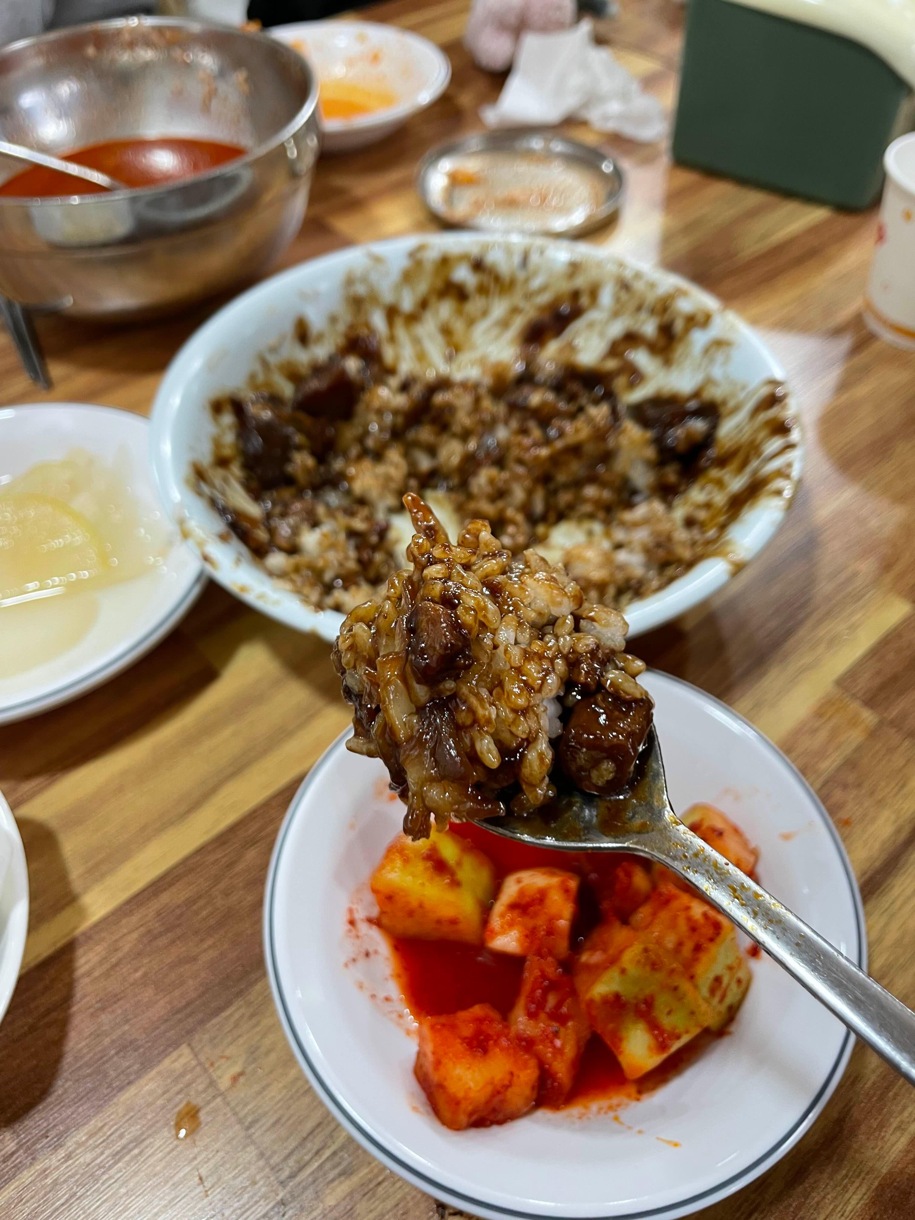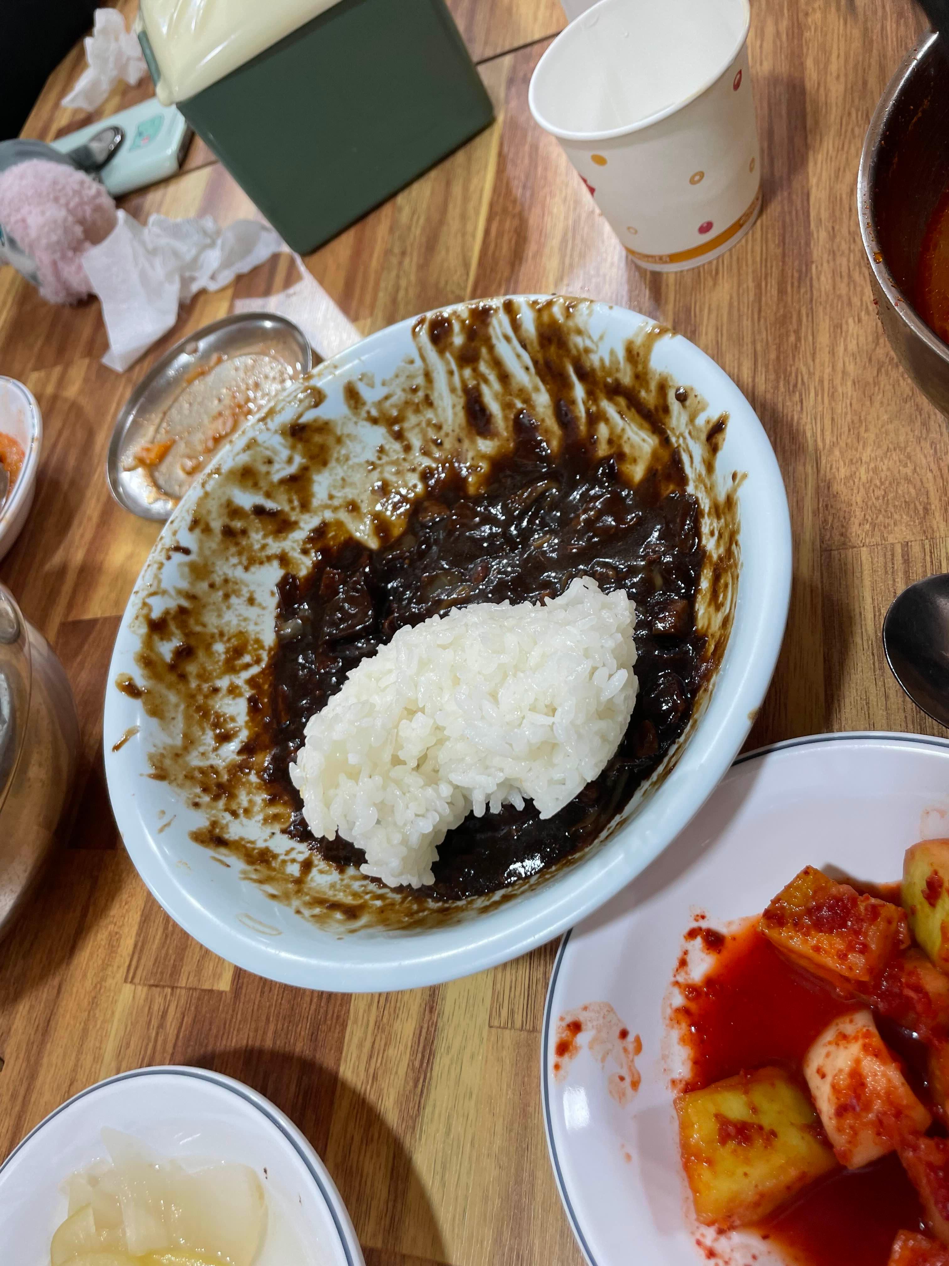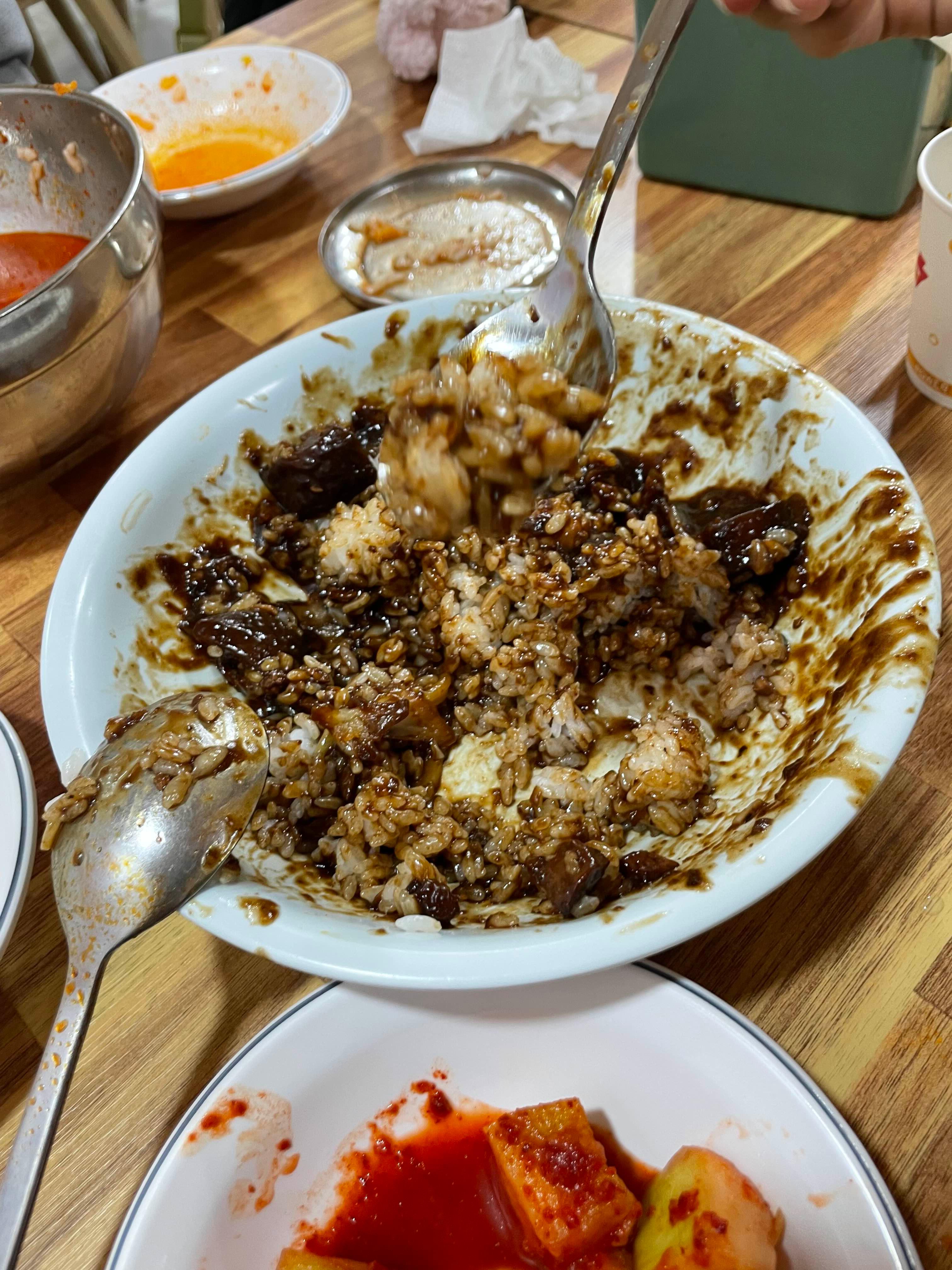 아이가 남긴 짜장면에 공깃밥 말아서....