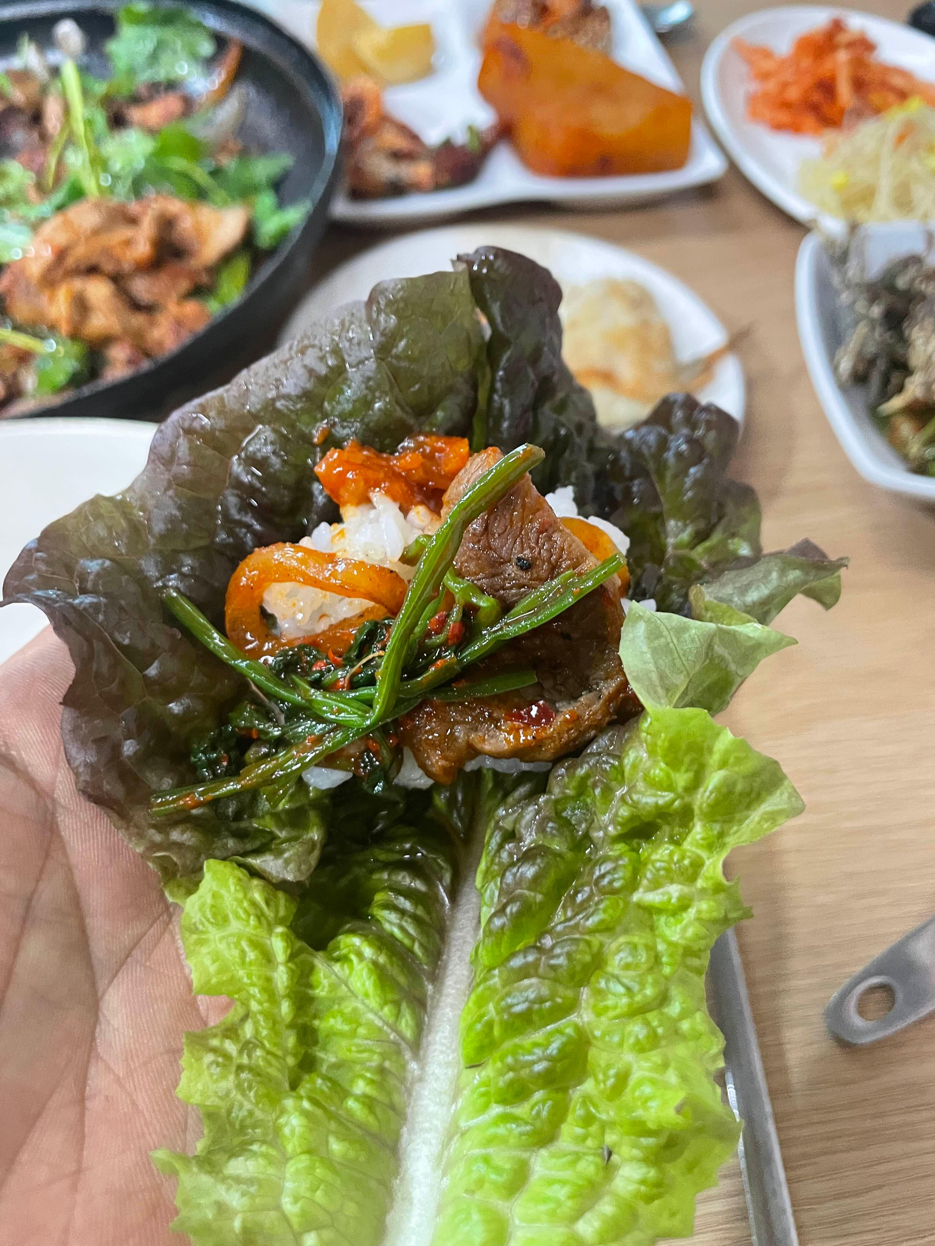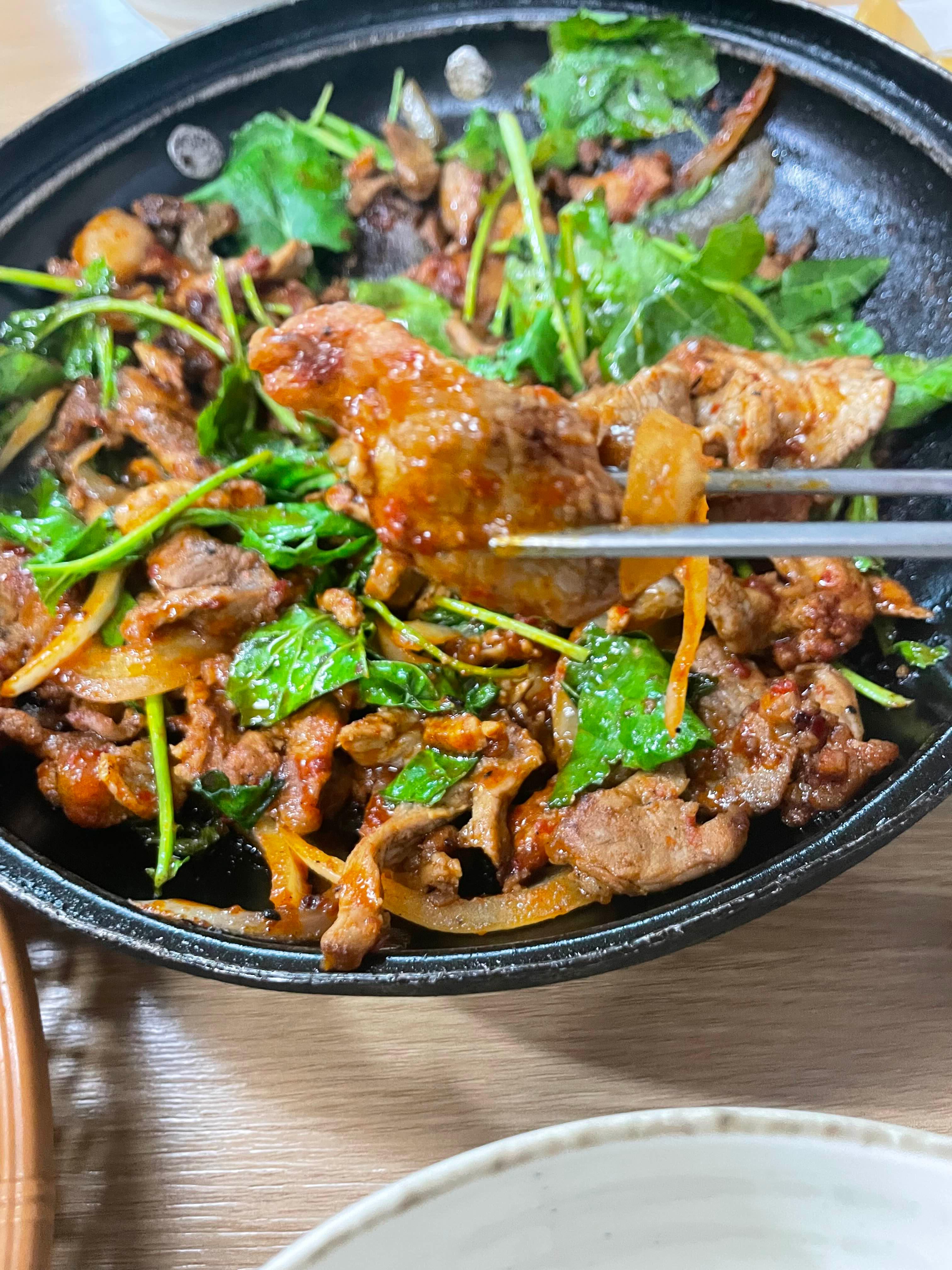 일단, 돼지고기 제육이 나오는데, 1인 만원이면... 그리 비싸게 느껴지지는 않더군요.