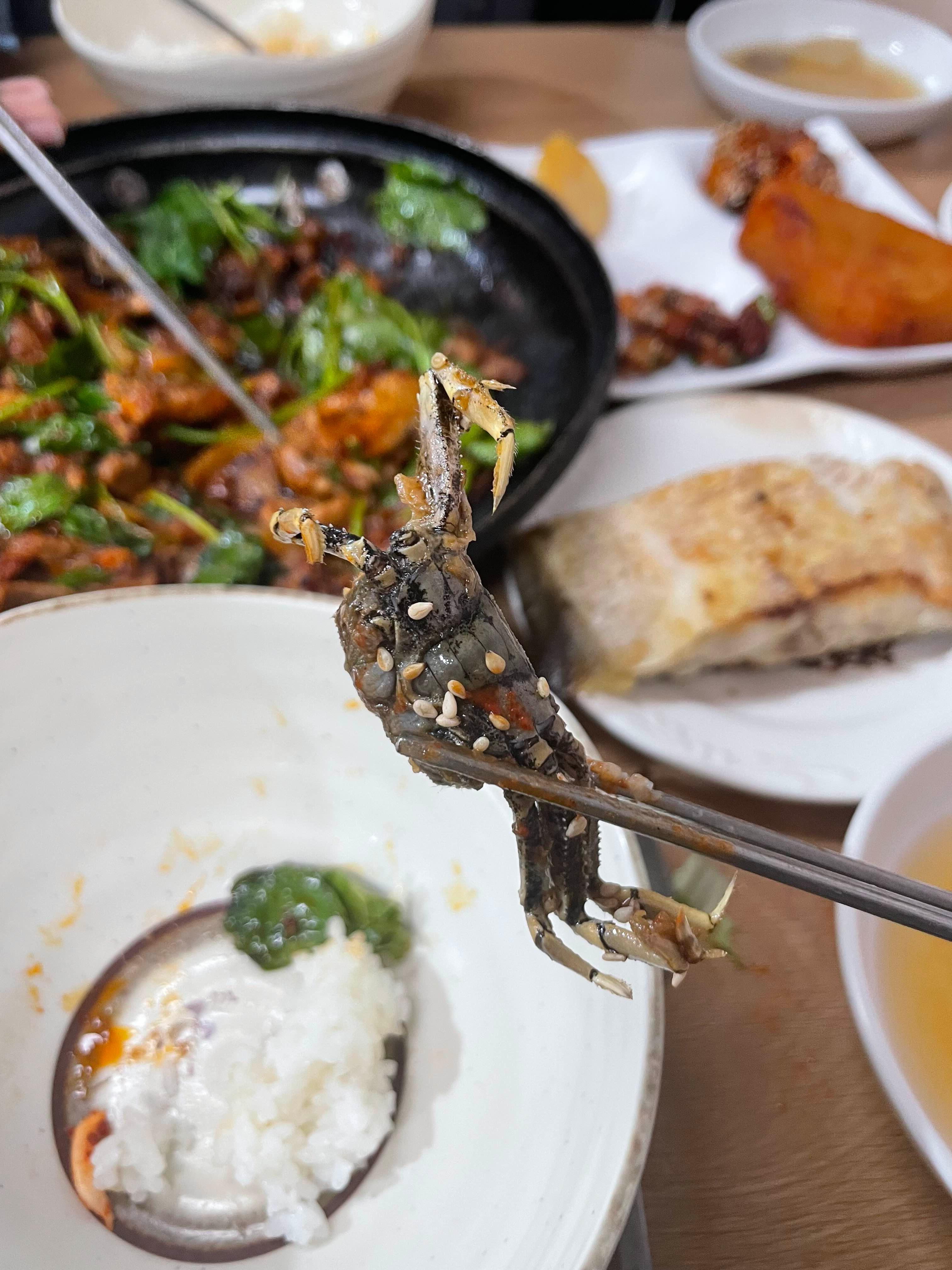 이 지역에서 맛볼 수 있는 칠게는 안 먹을 수가 없겠죠. 그리고 미나리김치도 상당히 맛이 좋았음!ㅎㅎ