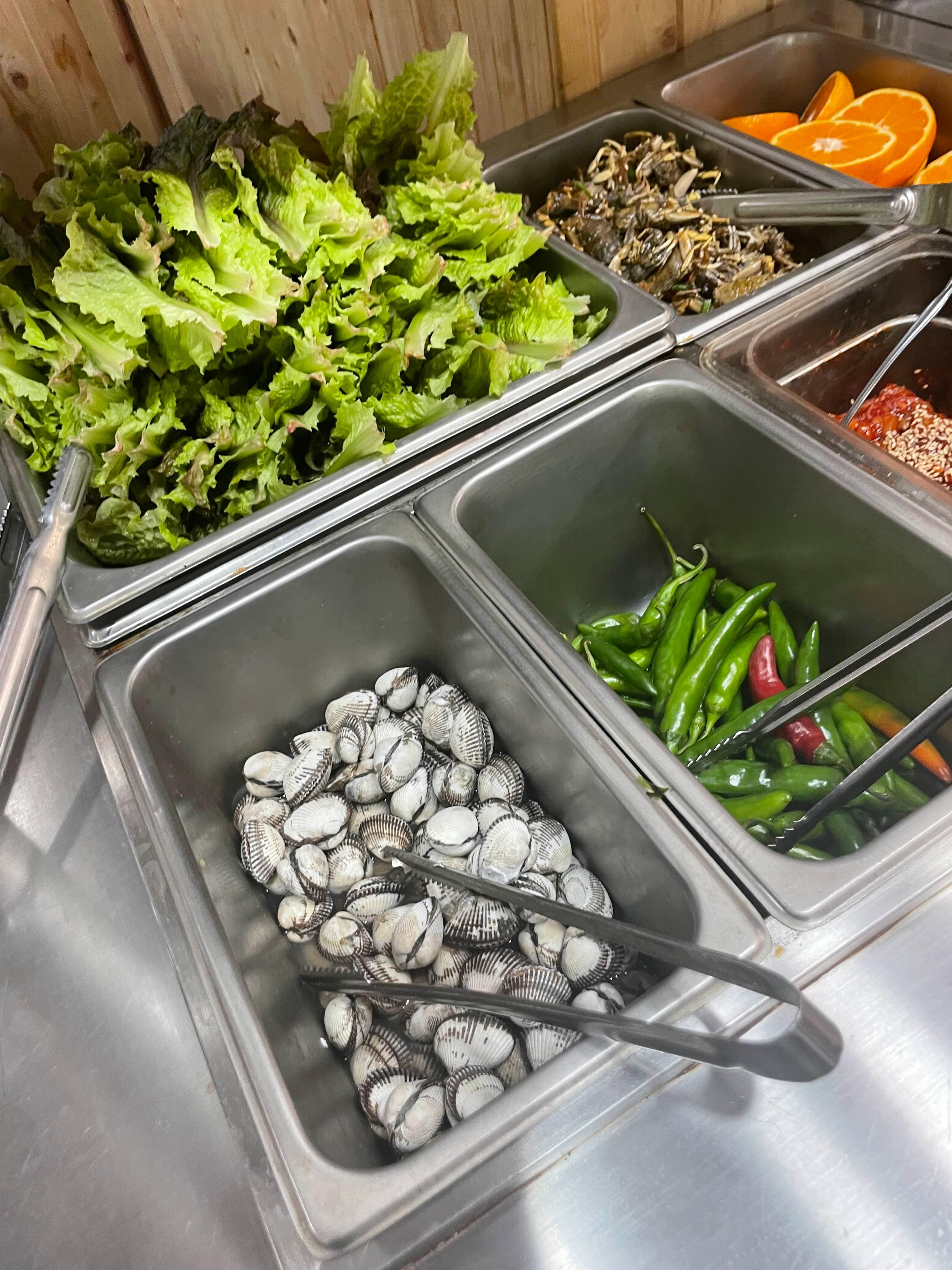 추가 반찬을 가져다 먹는데... 칠게가 있다.