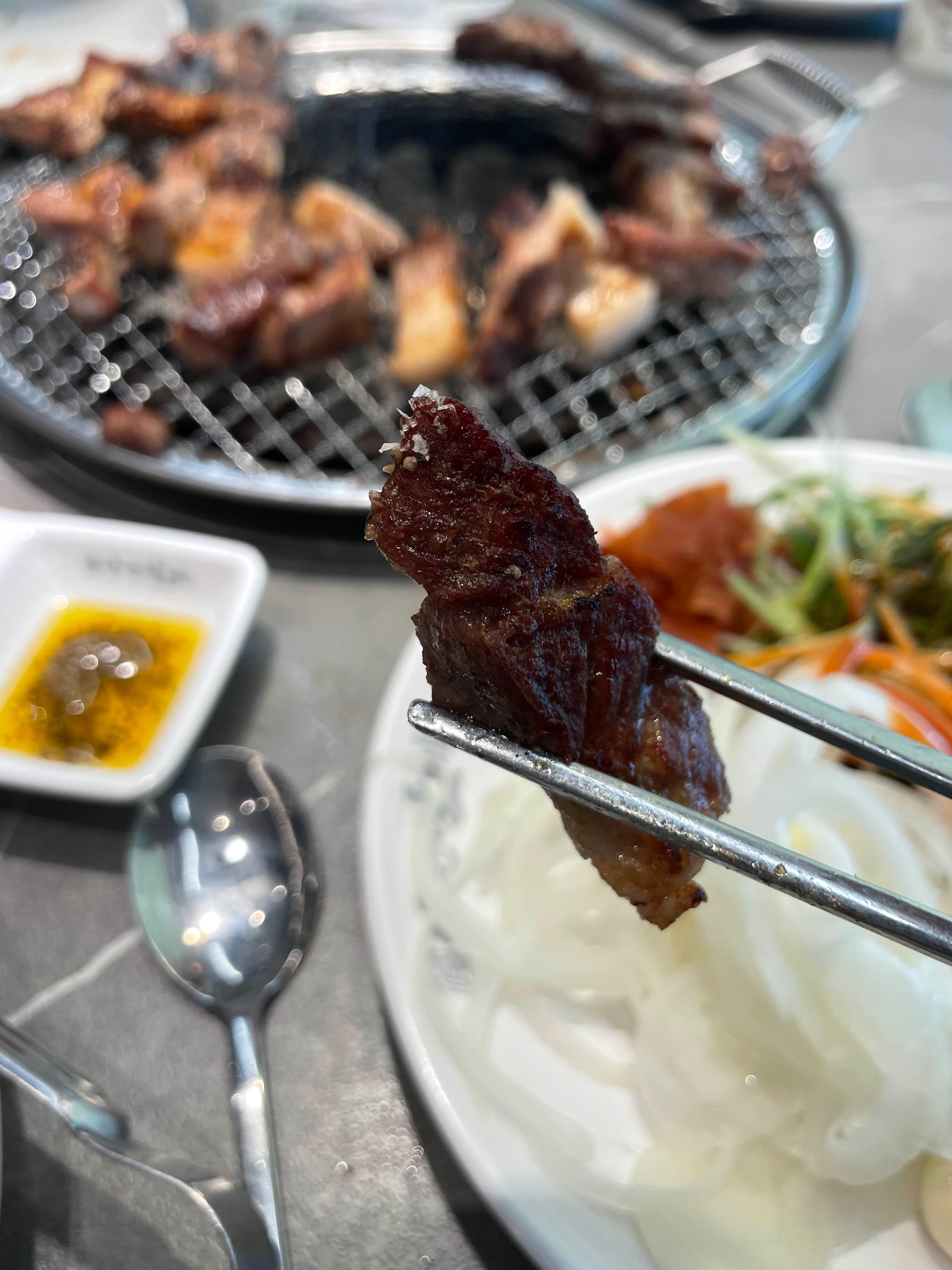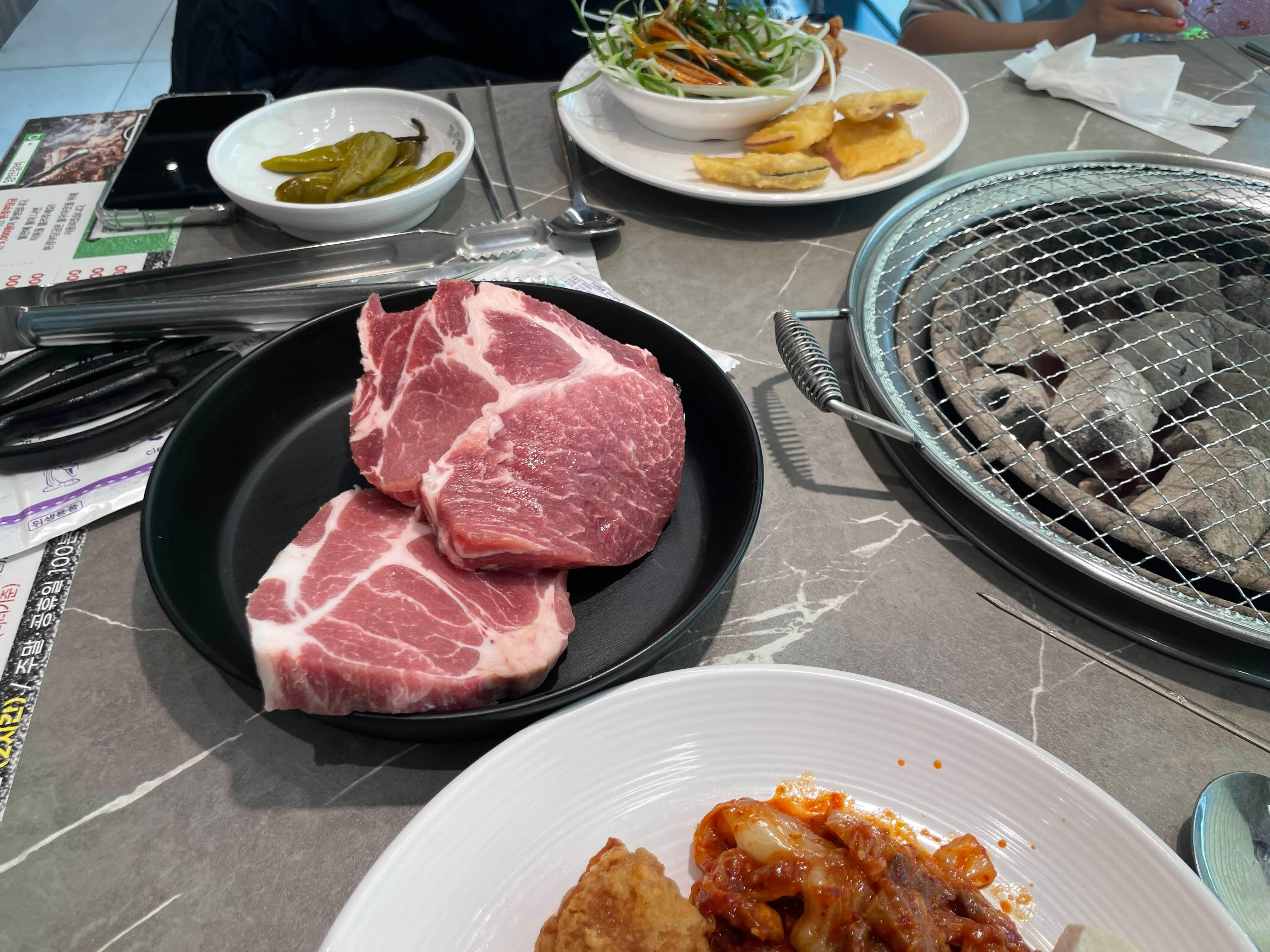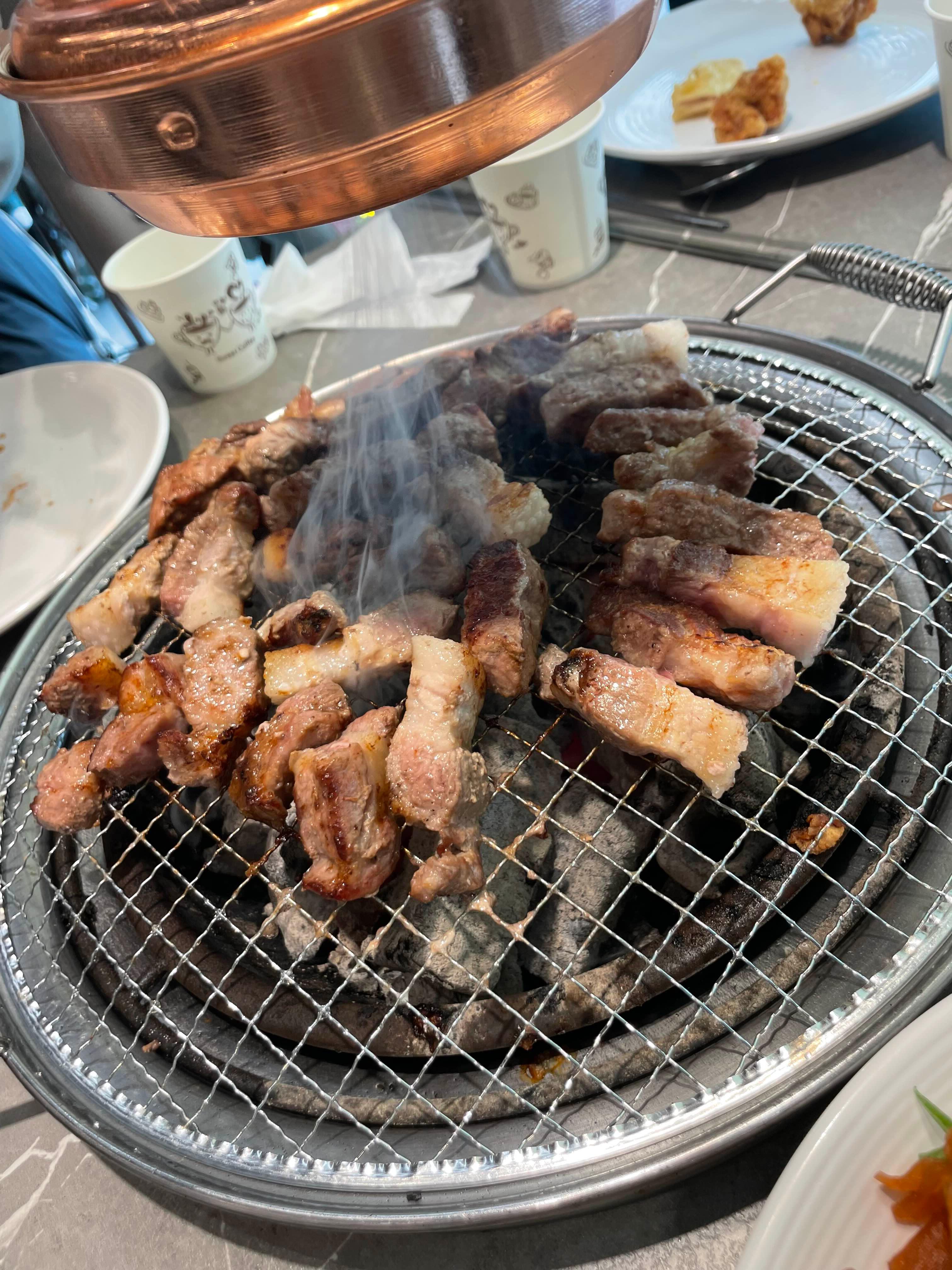 음... 불판이 삼겹 굽는 불판이 아니라서.... 굽기가 조금 어렵더군요. 초벌이 필요하기는 하겠음.ㅎㅎ