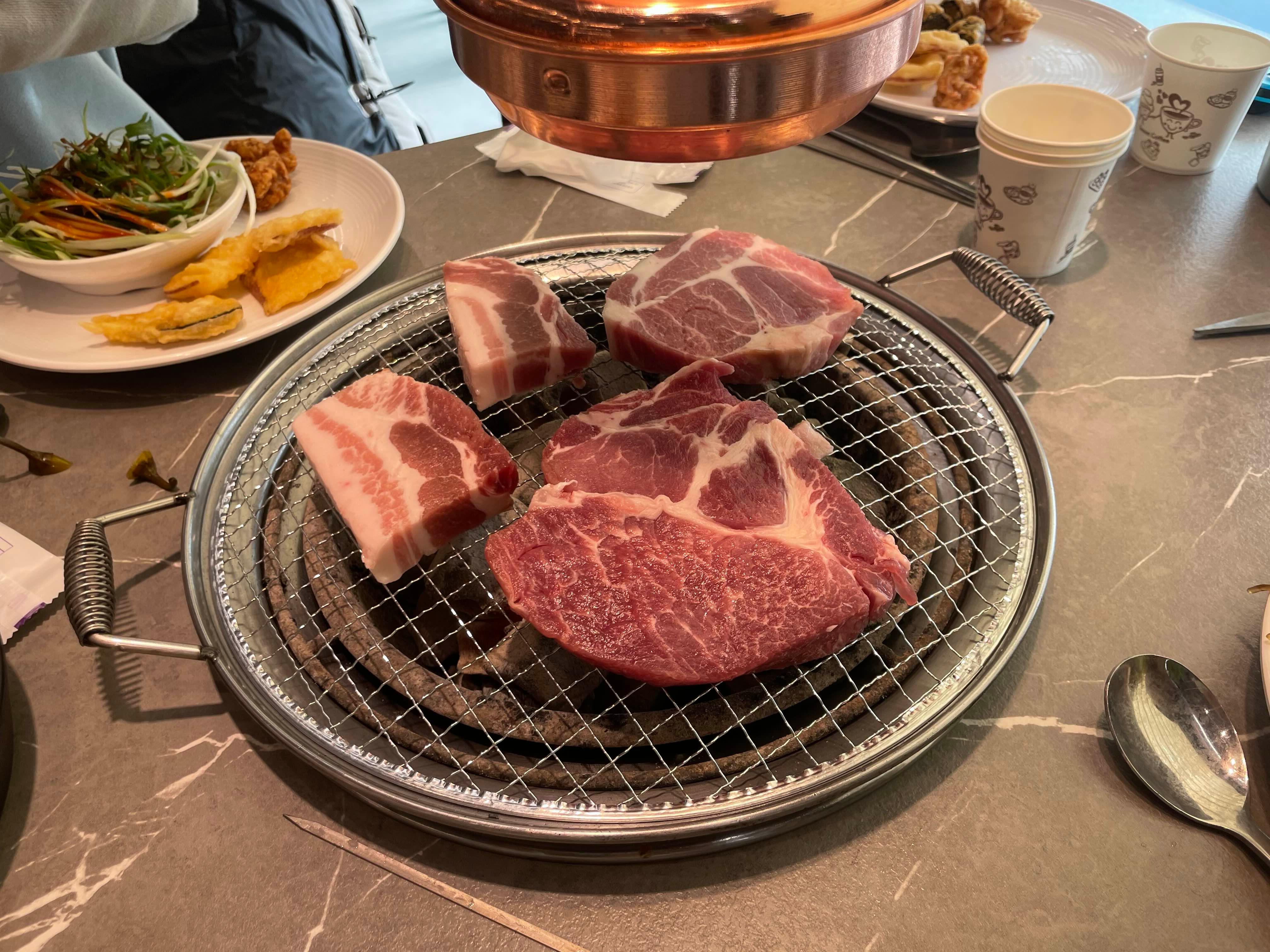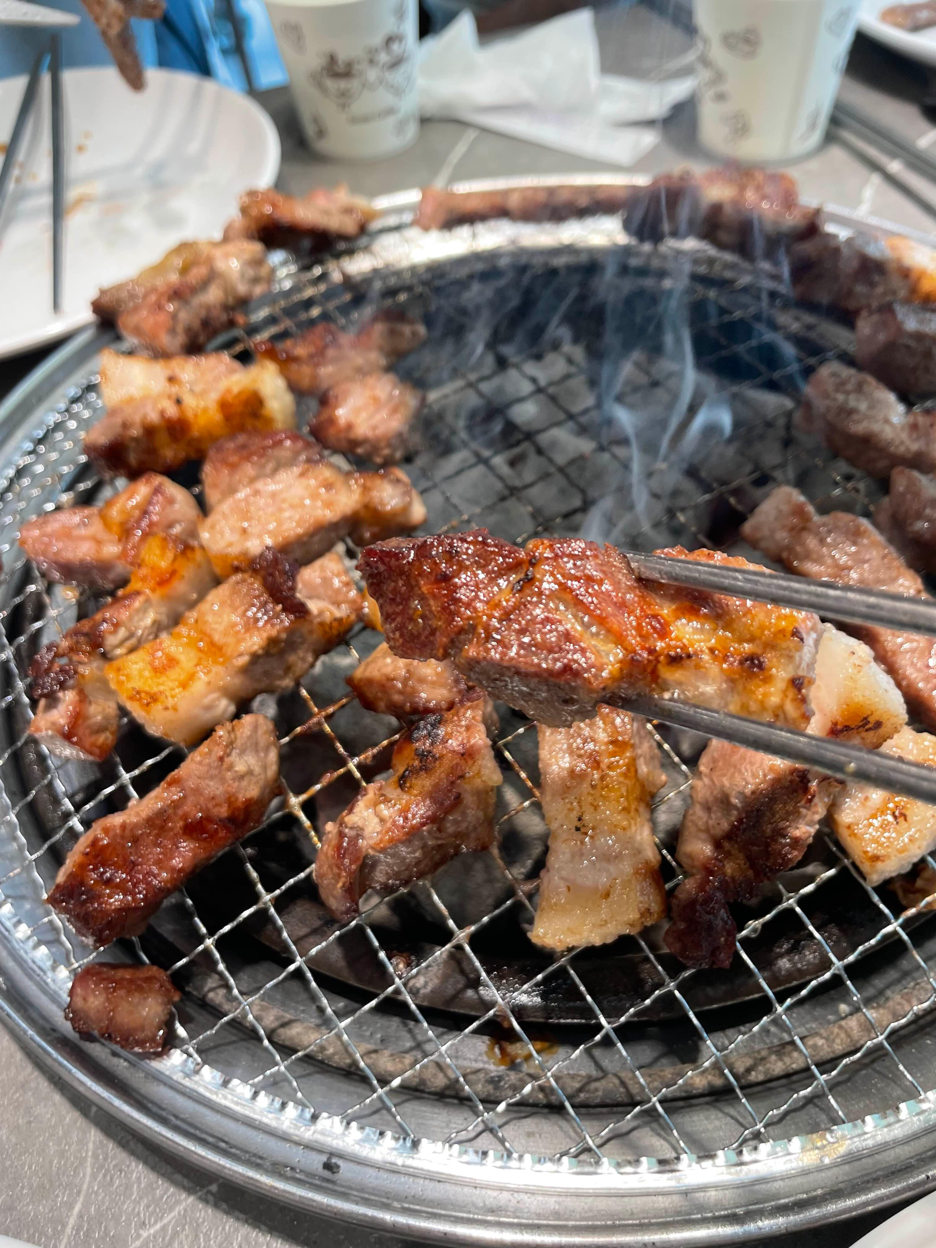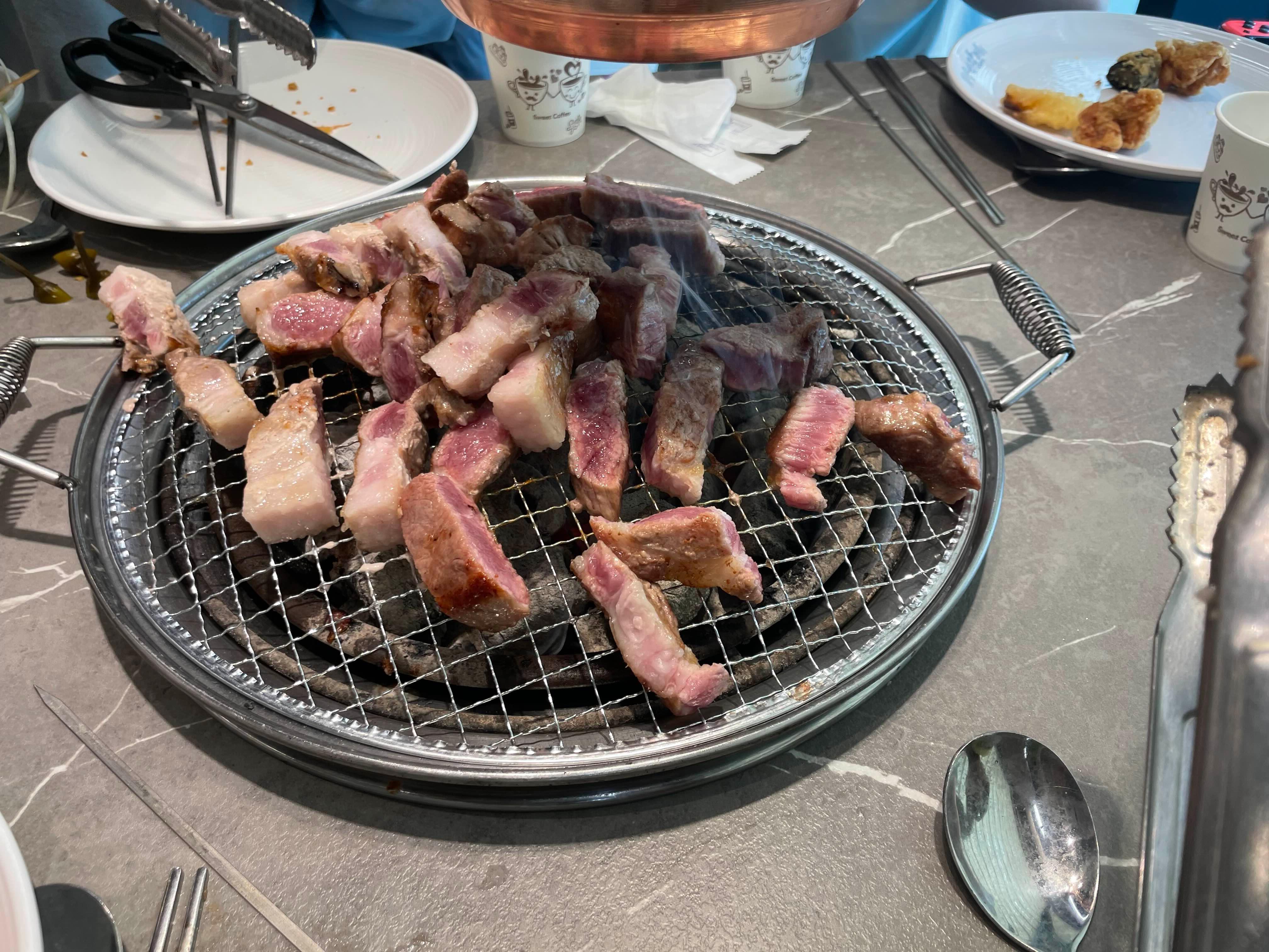음... 불판이 삼겹 굽는 불판이 아니라서.... 굽기가 조금 어렵더군요. 초벌이 필요하기는 하겠음.ㅎㅎ
