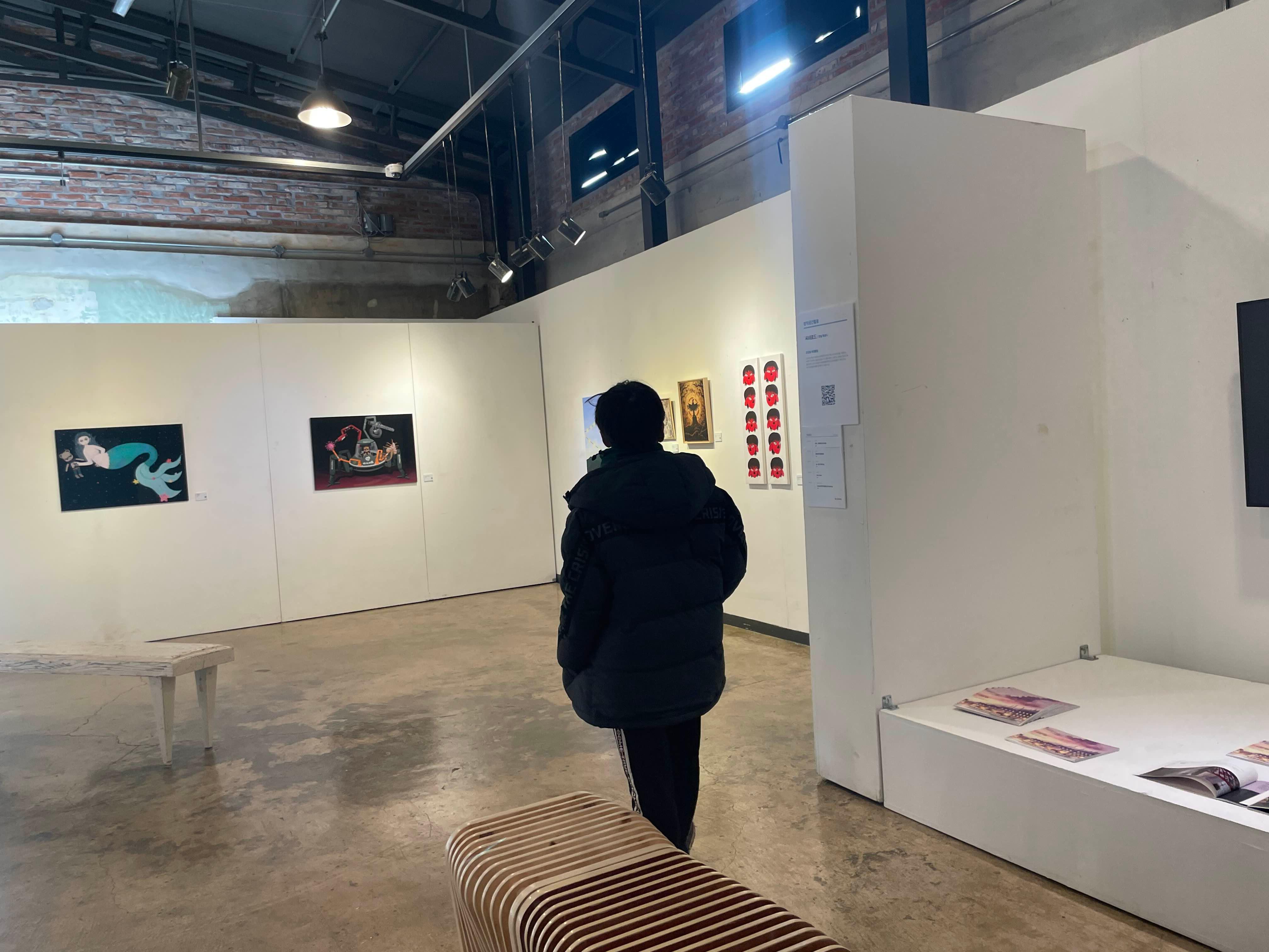 예술작품을 하나씩 둘러본다.
