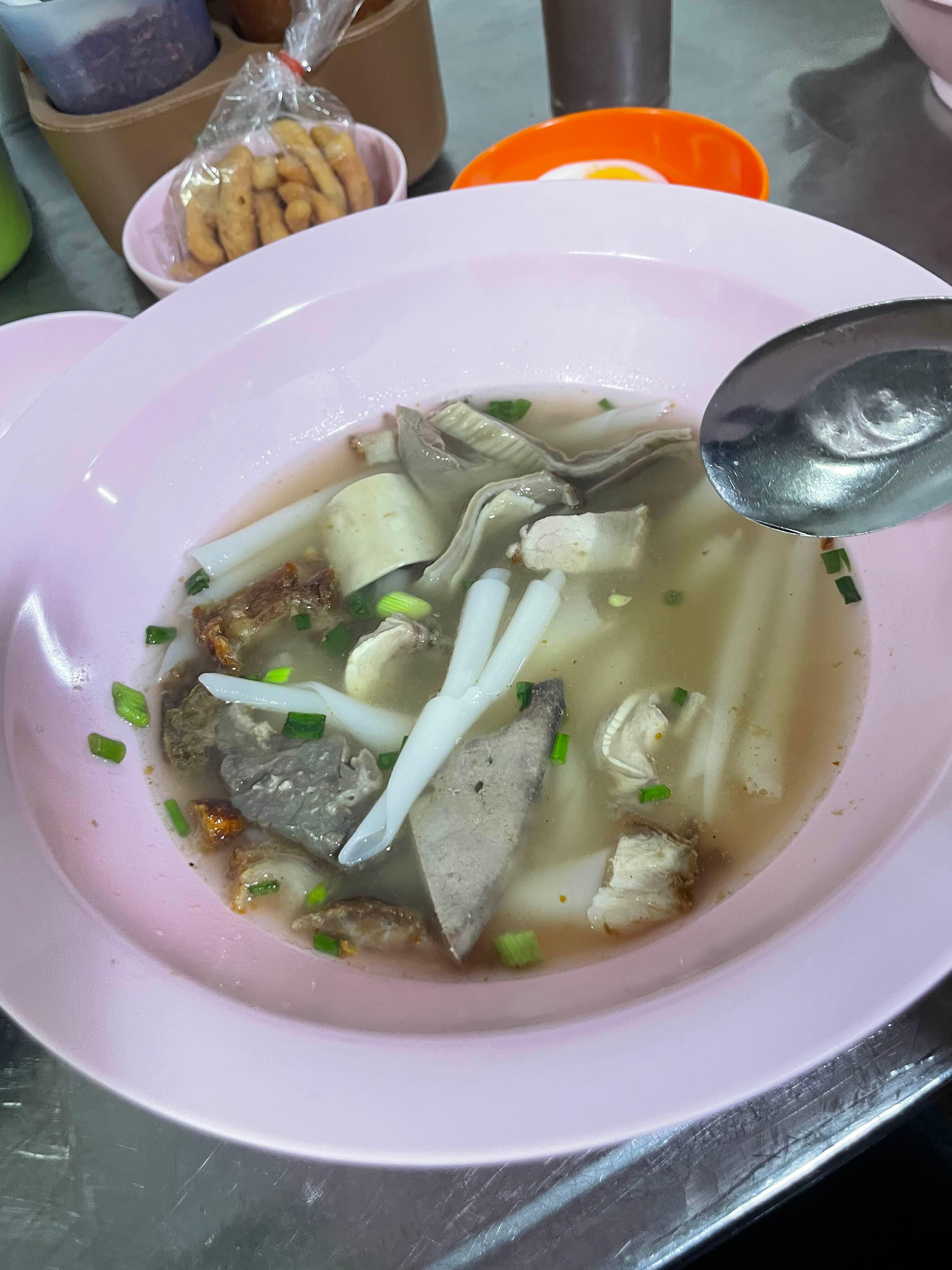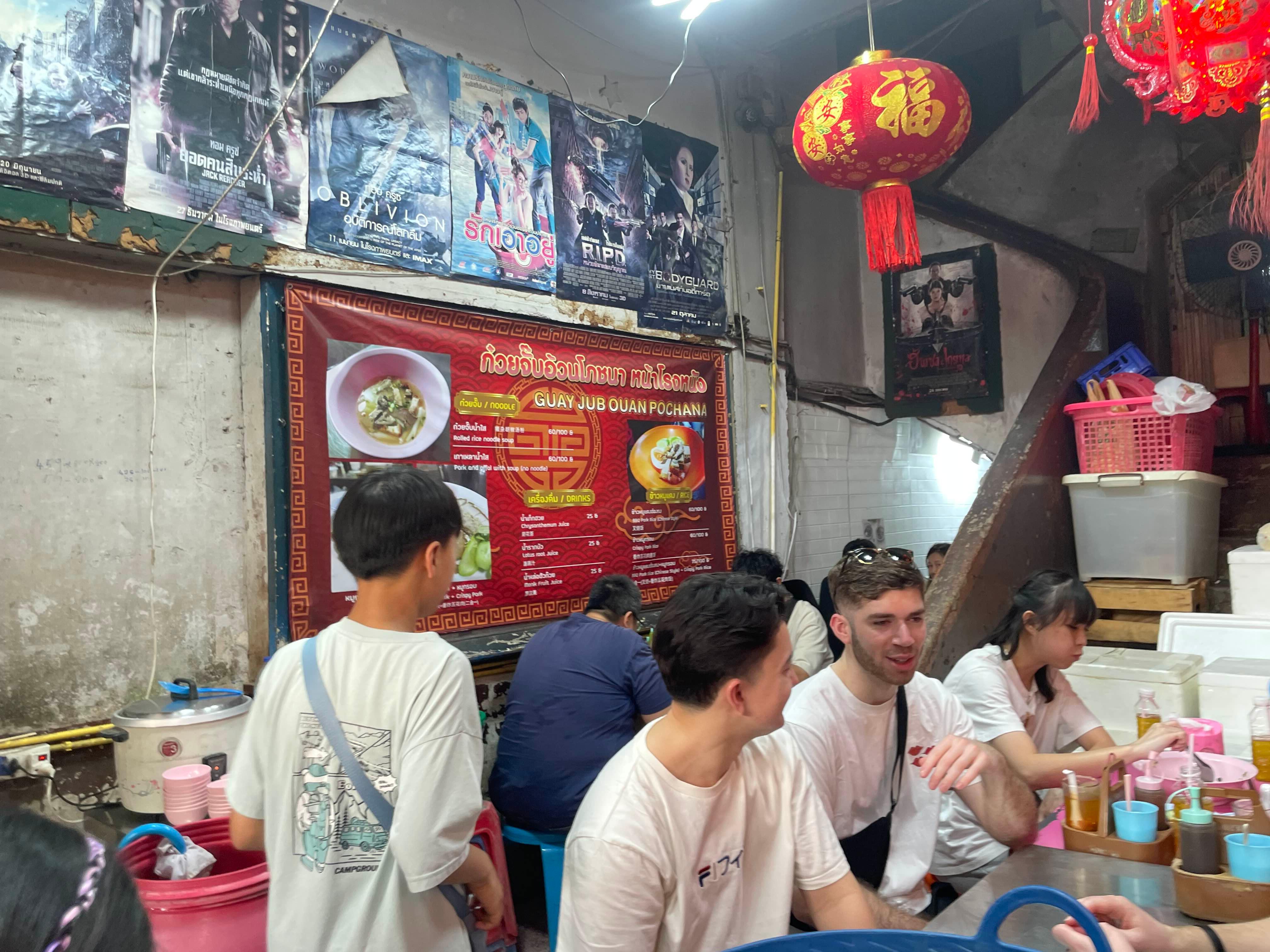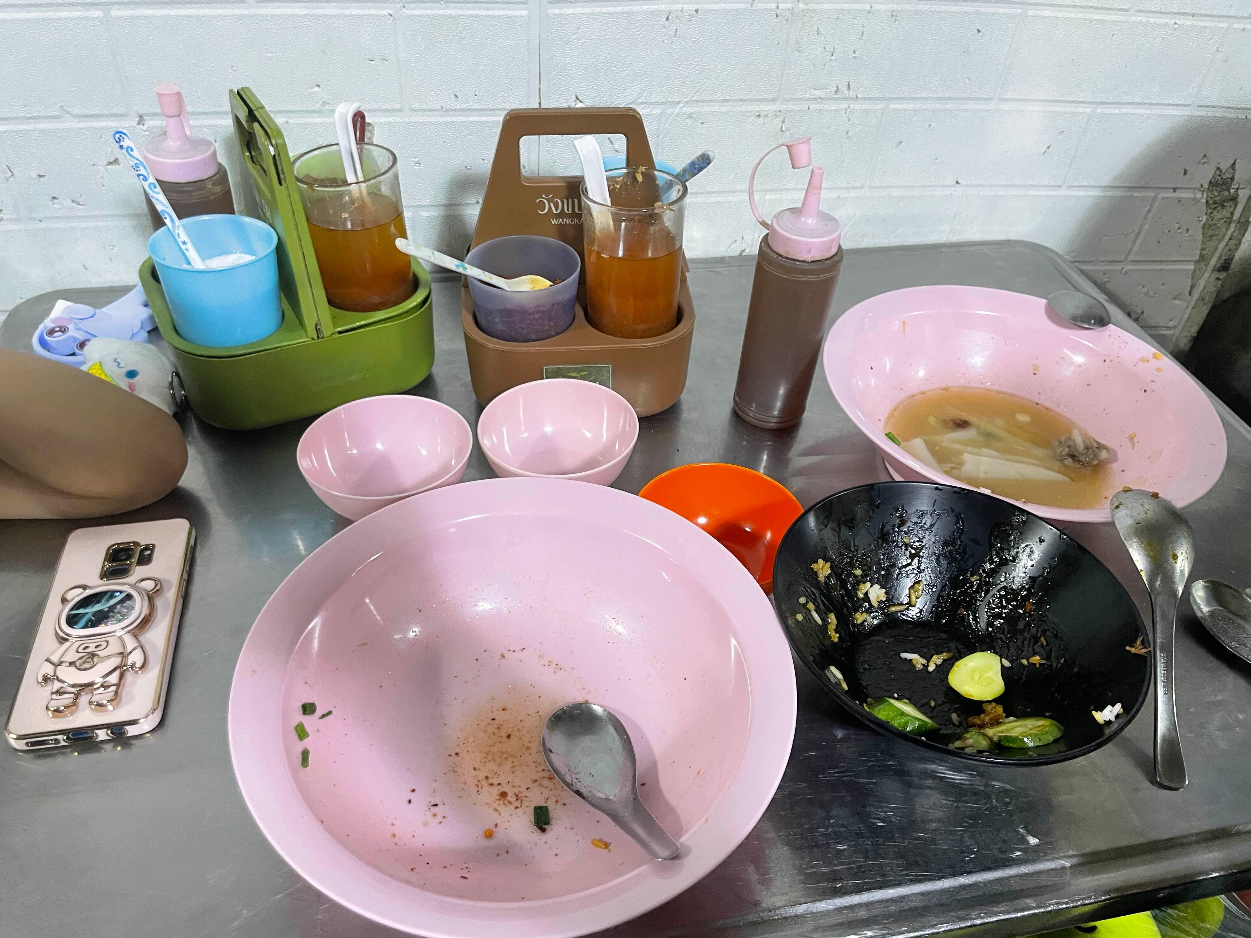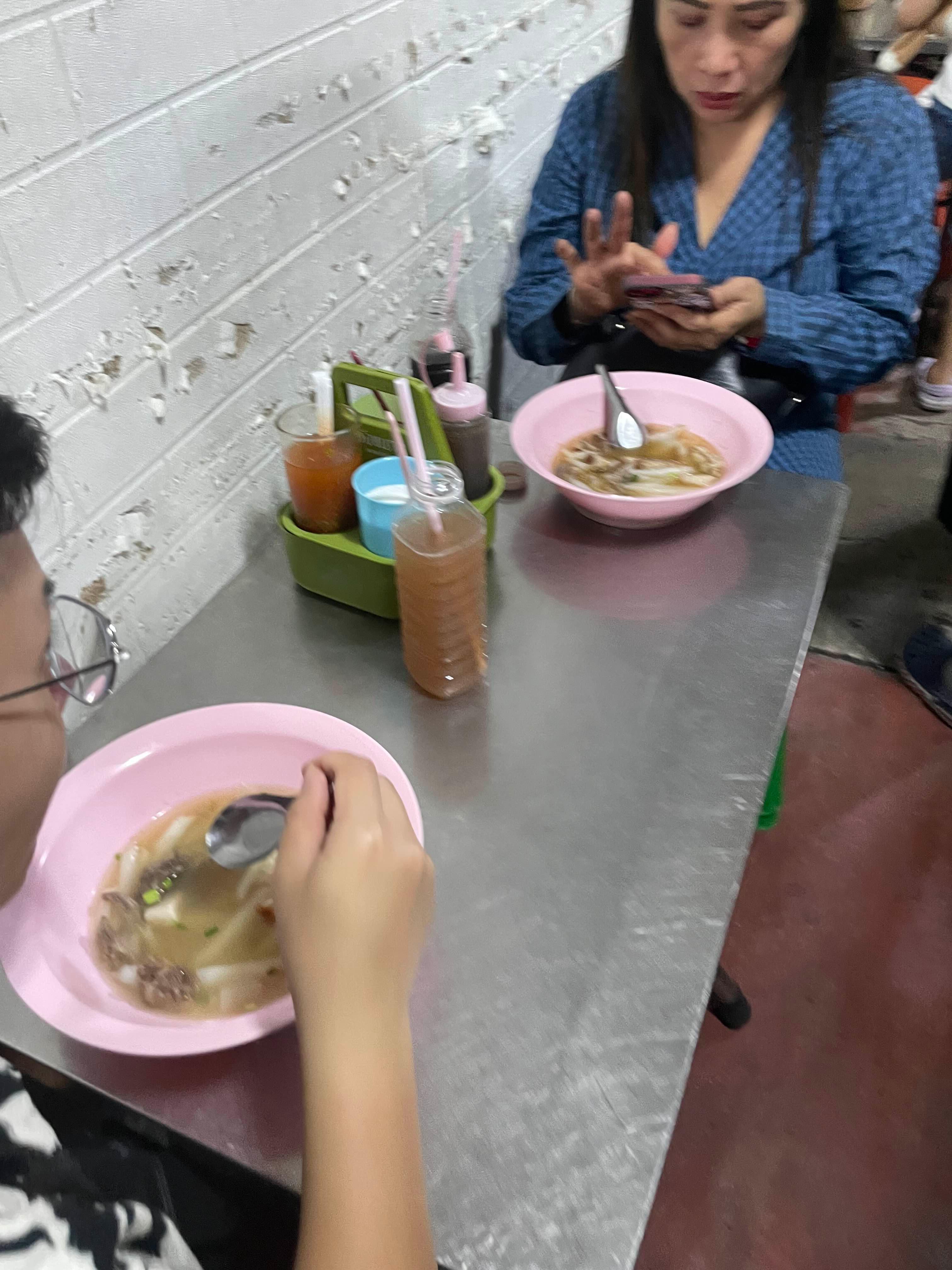 식당에 들어가며, 다른 테이블 메뉴를 스캔하는데, 대부분 꾸웨이잡 남사이를 주문!.